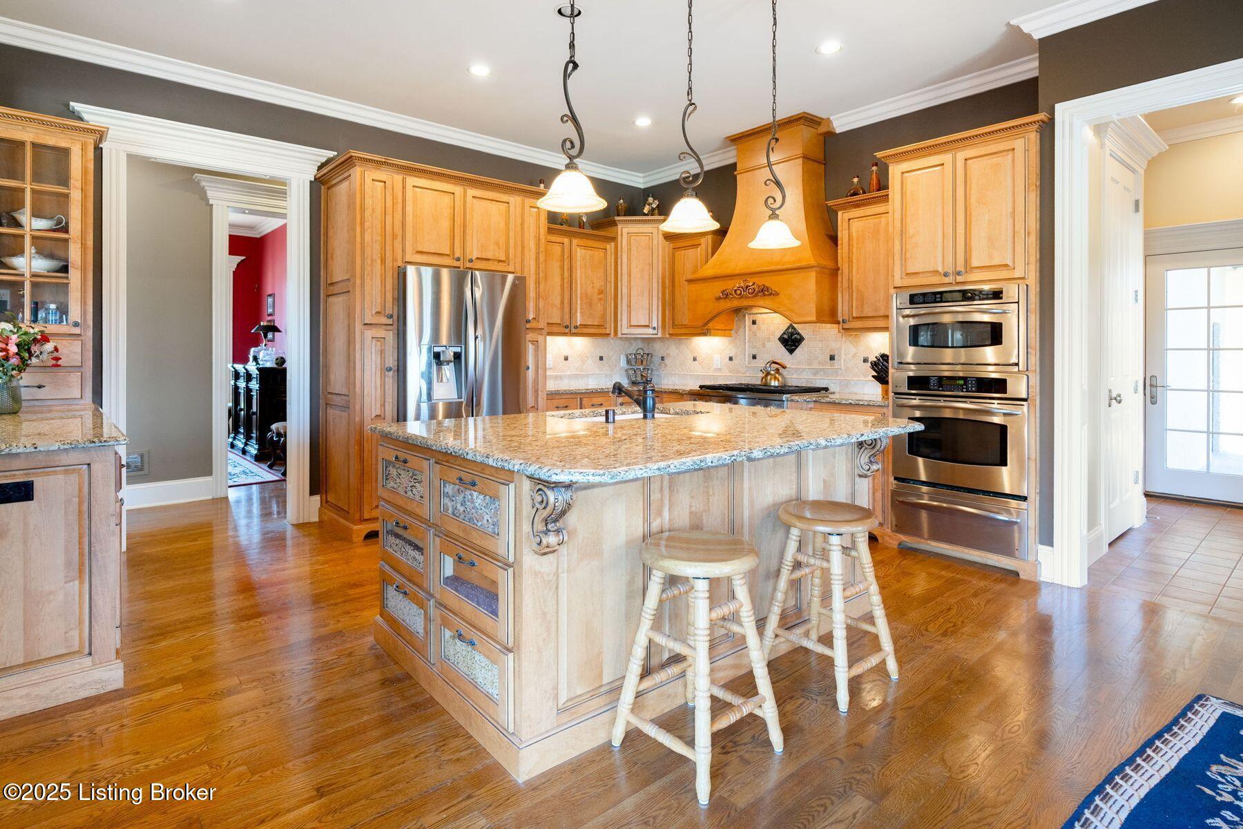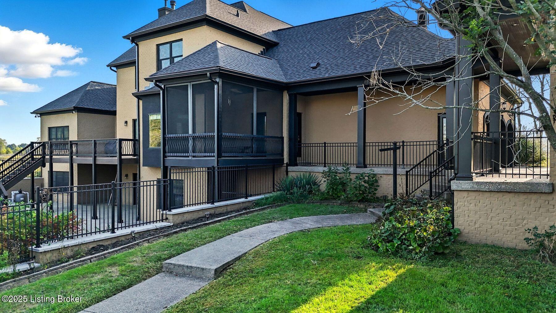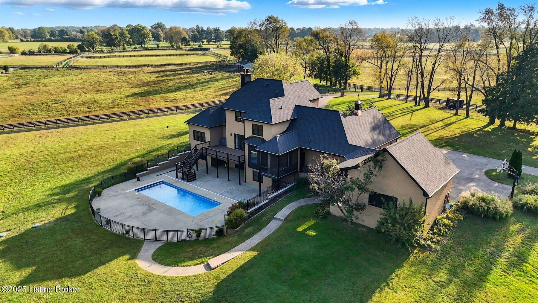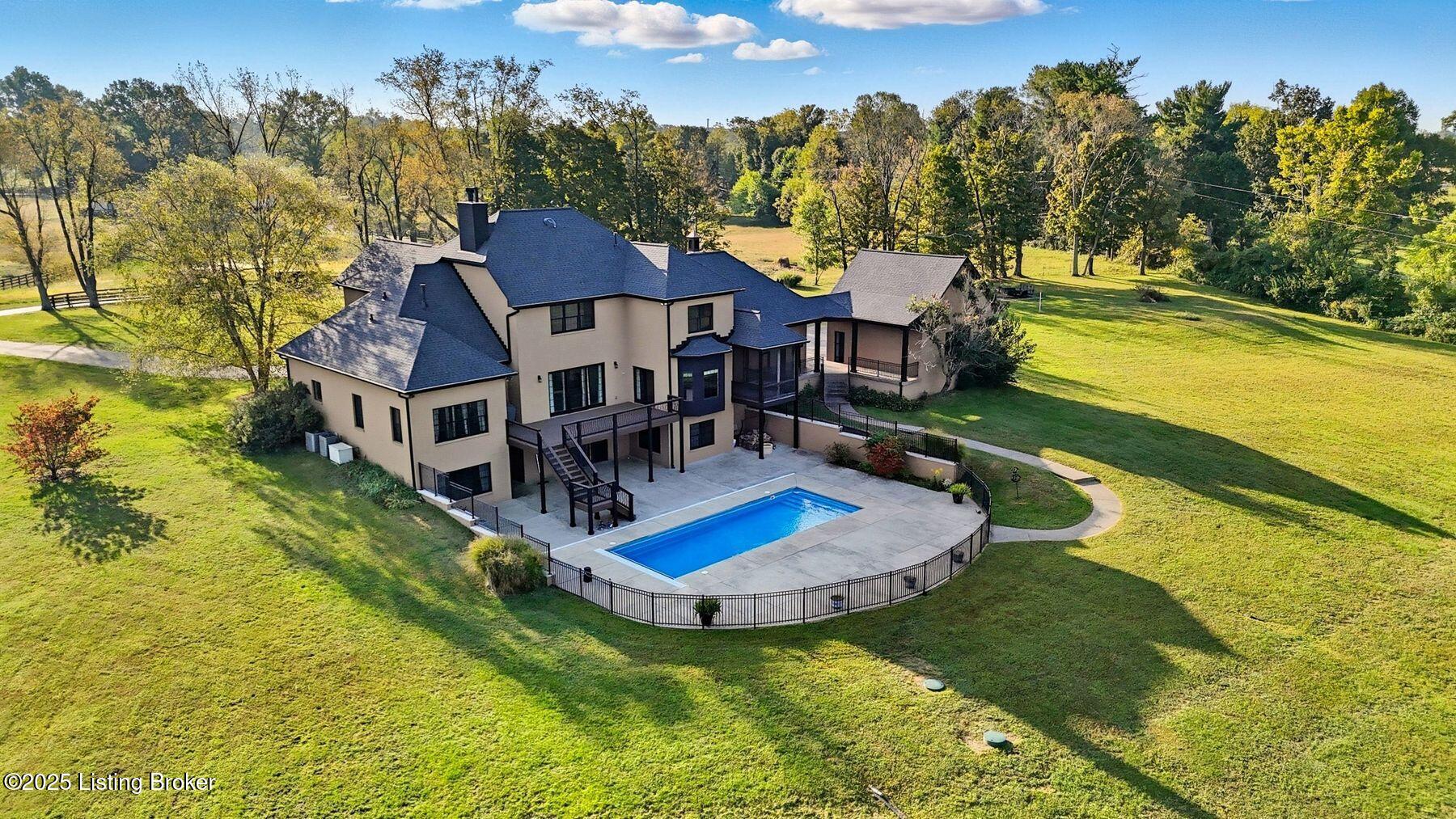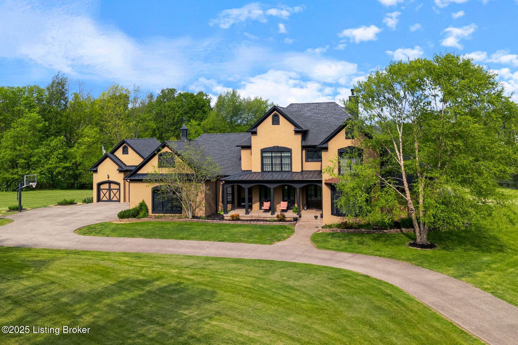 Nestled on 6.8 picturesque acres in prestigious Oldham County, this exceptional estate offers the perfect blend of luxury and tranquility. Originally built in 2008, the home boasts over 6,300 square feet of thoughtfully designed living space, featuring a spacious first-floor primary suite, exquisite woodwork, and timeless craftsmanship throughout. Recent updates ensure peace of mind and fresh appeal, including a brand-new roof, new gutters, newly painted exterior and pillars, updated screens throughout (including the screened-in porch), a new pool drain, and a pool cover that is only a year old. Upstairs, you'll find four generously sized secondary bedrooms and three full bathrooms, offering ample space and privacy for family and guests. The finished walkout basement provides an incredible entertaining space, complete with a bar area, media room, and an additional bedroomperfect for overnight visitors or multigenerational living. Step outside to the newly refreshed exterior and pool deck to take in serene views of the property's acreage and surrounding horse farms, creating a private retreat-like setting. With an inviting open layout ideal for entertaining and a five-car garage, this property is as functional as it is beautiful. Located in the highly sought-after North Oldham County school district, this is a rare and coveted offering in today's competitive market. Schedule your showing today.