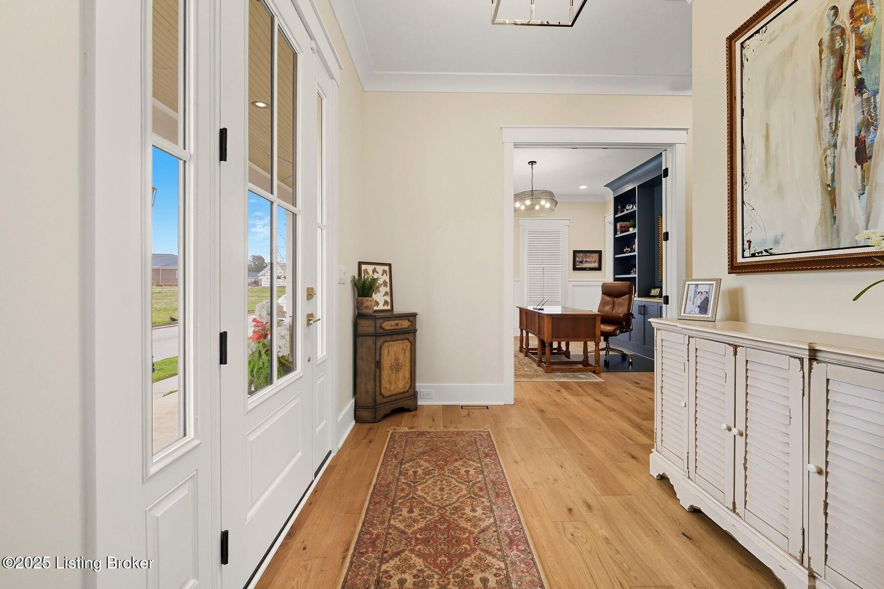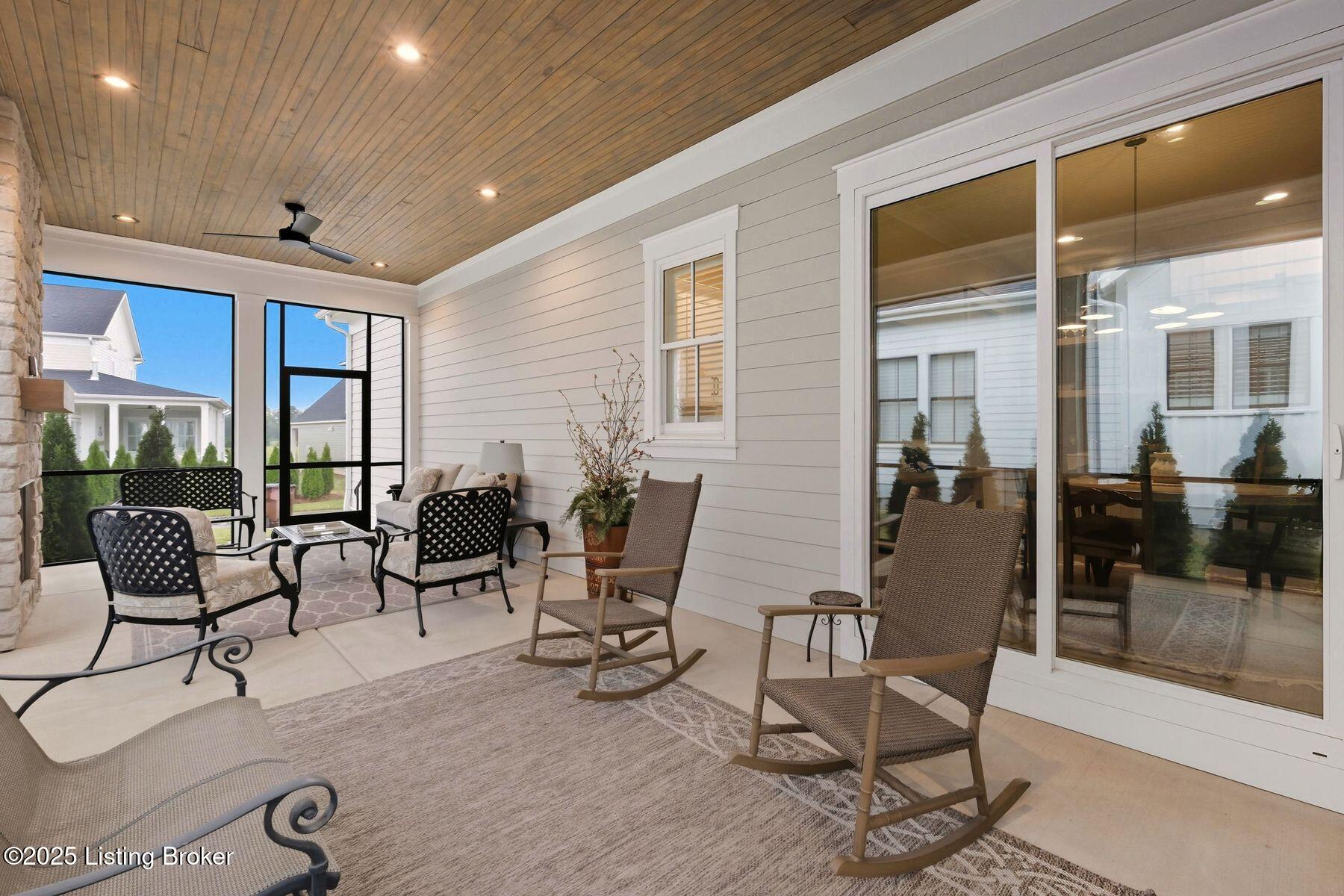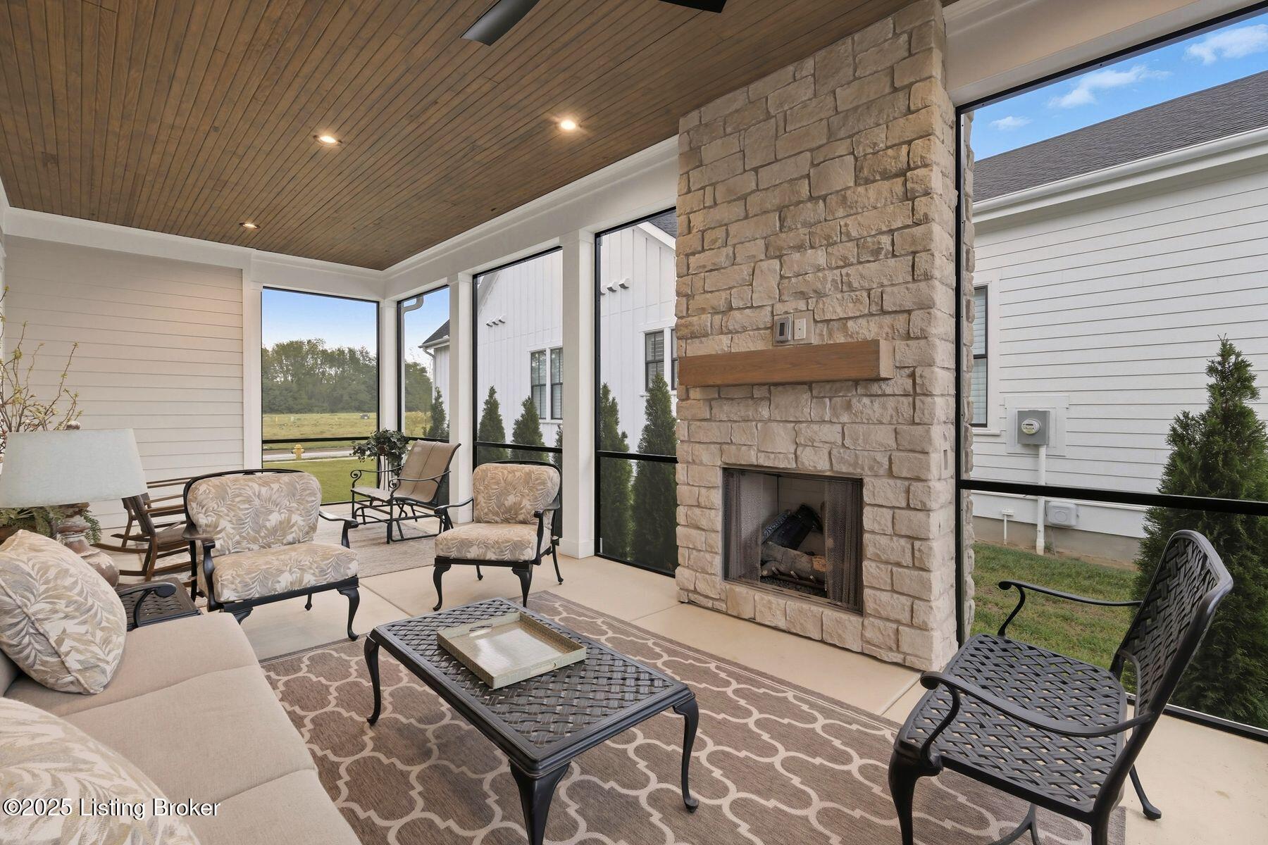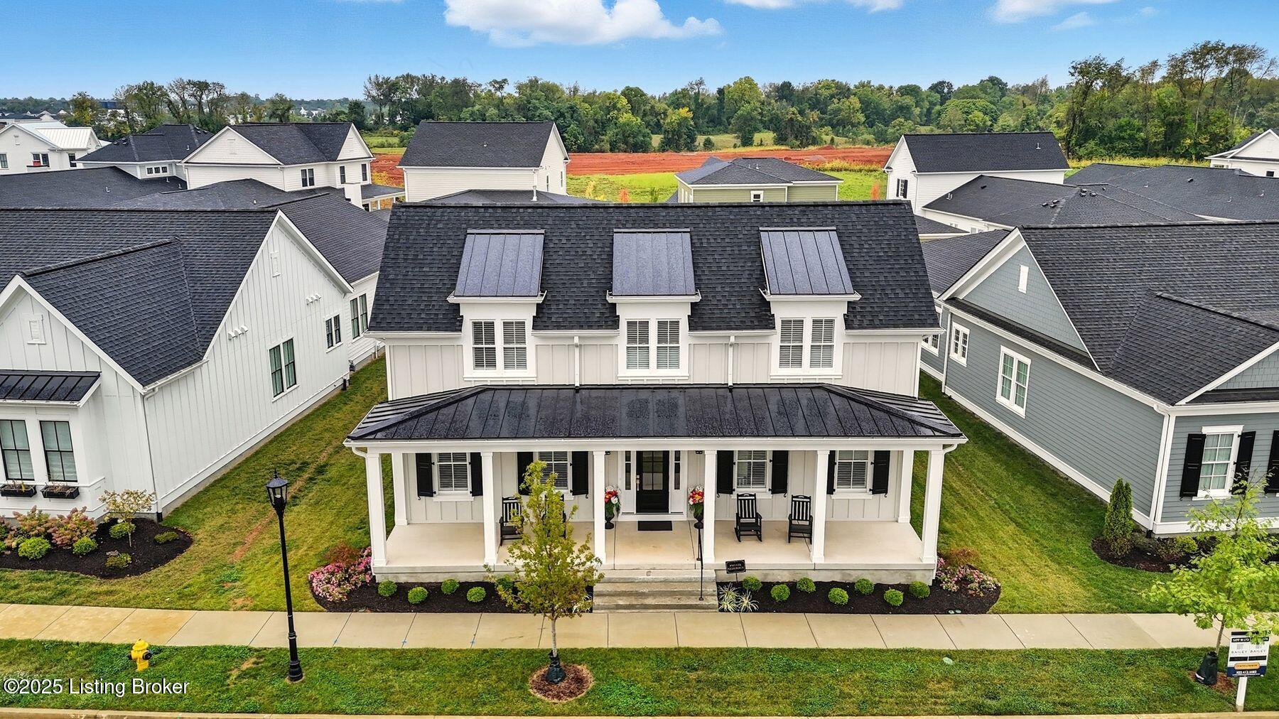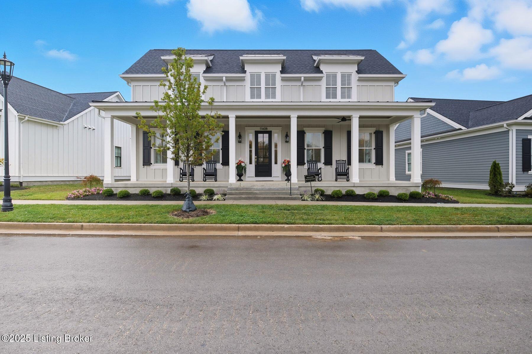 Introducing this thoughtfully crafted residence in the coveted Hamlet section of Norton Commons. A charming front porch framed by fresh landscaping sets a welcoming tone before stepping inside. The foyer introduces light-filled, purposeful spaces. To one side, a private sitting room with a full bath offers an ideal retreat for guests, while the opposite side features a handsome home office with floor-to-ceiling built-ins and a custom credenza--perfect for working or studying from home. A stylish powder room is tucked nearby for convenience. At the heart of the home, the gourmet kitchen boasts a large island, stainless steel appliances, and a spacious walk-in pantry. Flowing seamlessly into the dining area and gathering room, this open layout is designed for effortless entertaining. Extend gatherings outdoors to the screened-in porch with fireplace, creating a cozy haven for year-round enjoyment. The first-floor primary suite provides a luxurious retreat, complete with dual vanities, a generous walk-in closet, and spa like finishes. Conveniently connected, the laundry room offers direct access to the expansive three-car garage. Upstairs, two additional bedrooms and a full bath are joined by a landing highlighted with built-in bookshelvesand an inviting nook for reading or relaxation. The unfinished basement with egress window and full bath rough-in provides endless opportunities for future living space. Modern comfort is elevated with a geothermal system, ensuring both efficiency and sustainability. Blending elegance, comfort, and function in every detail, this home is ready to welcome its next owner. Schedule your private showing today.