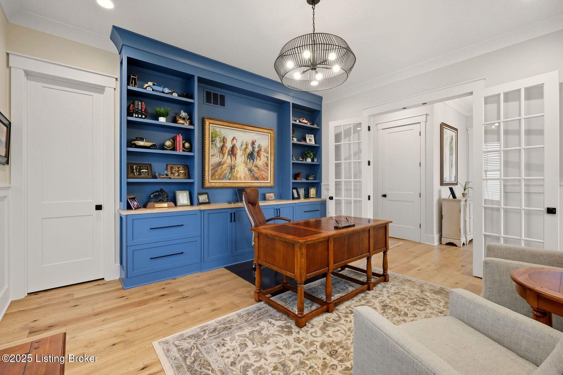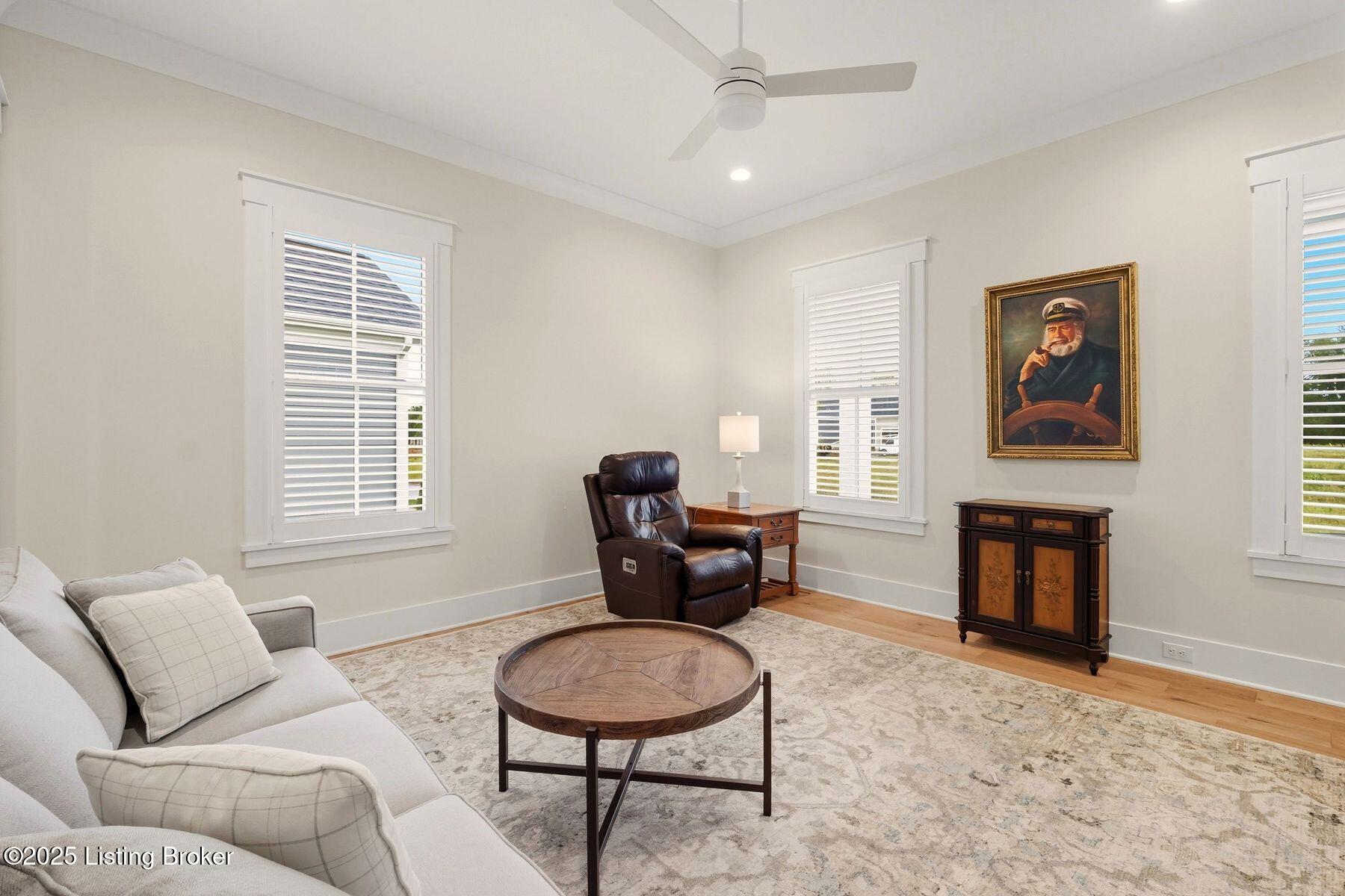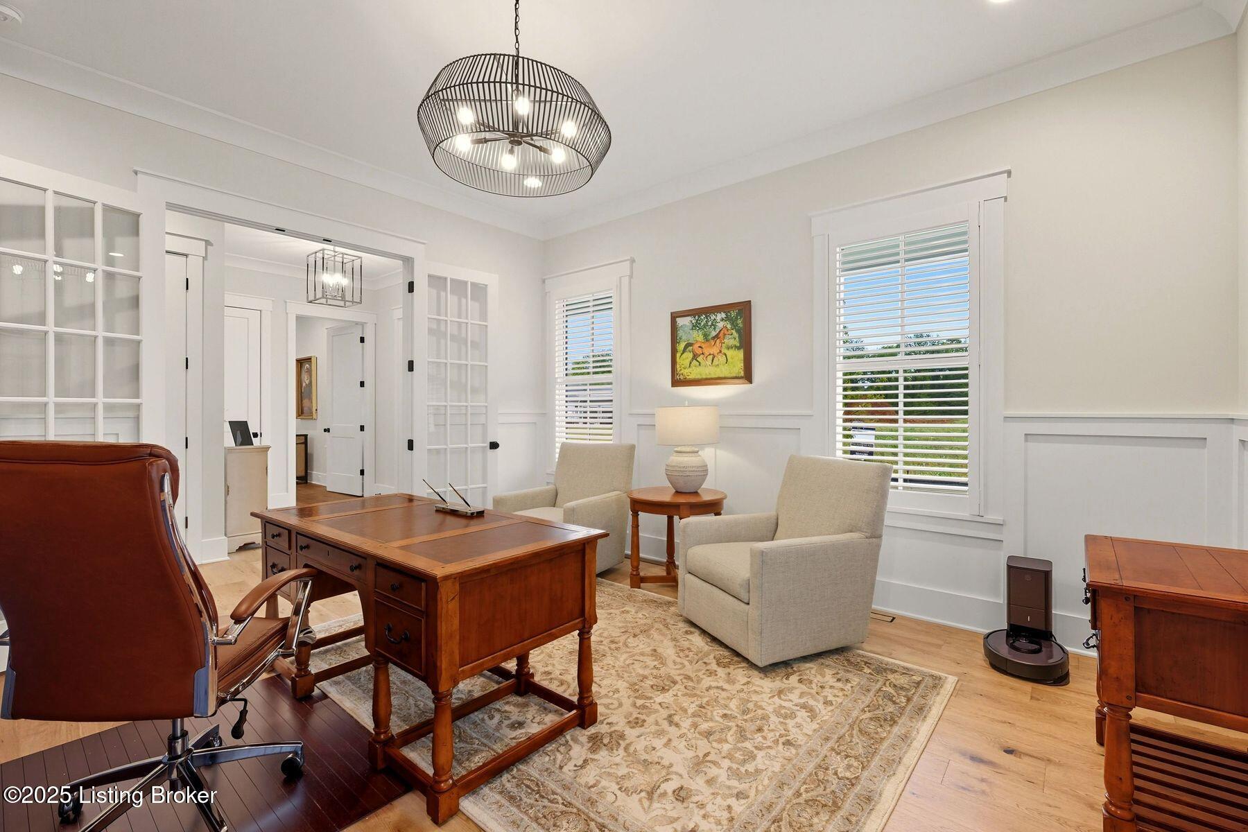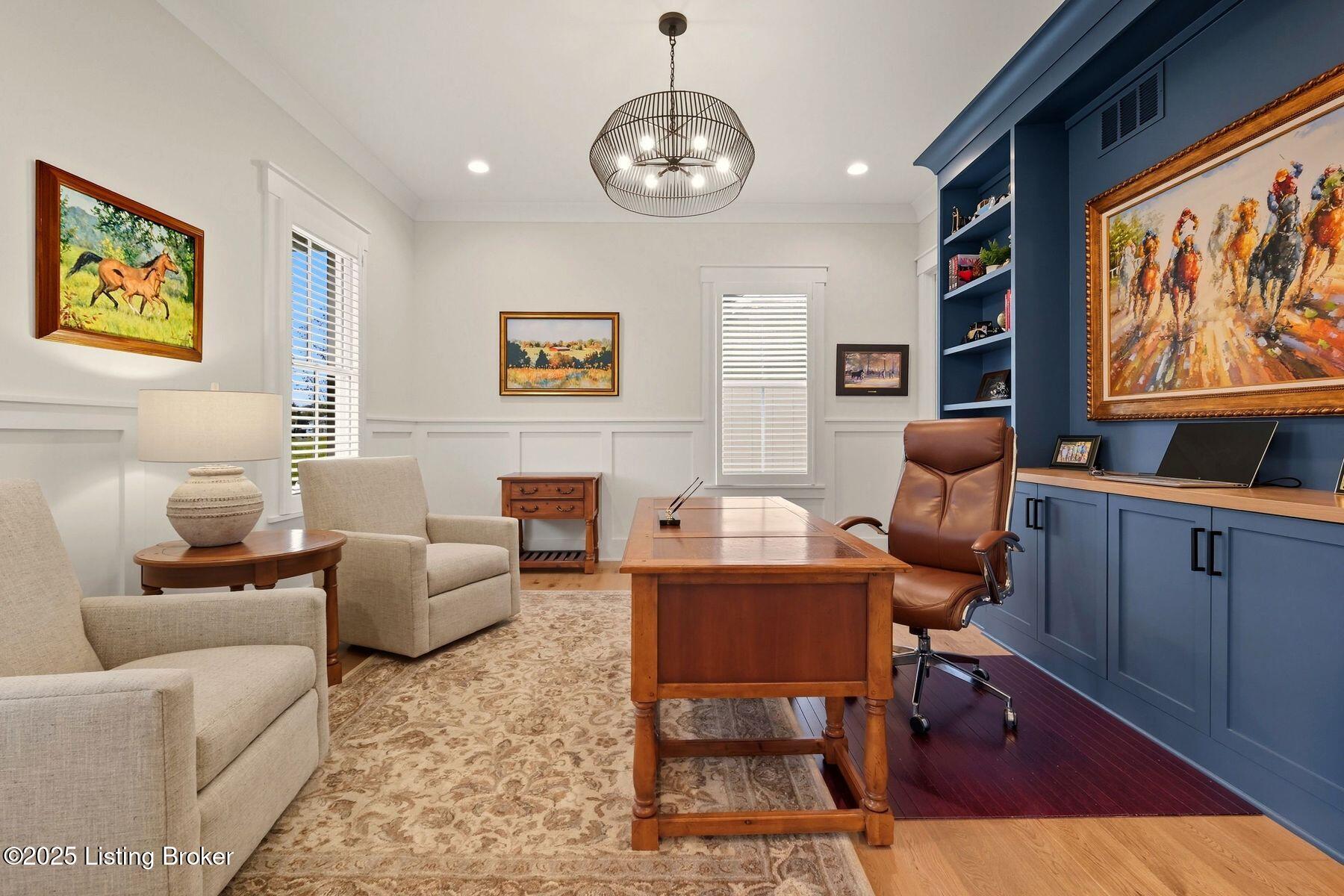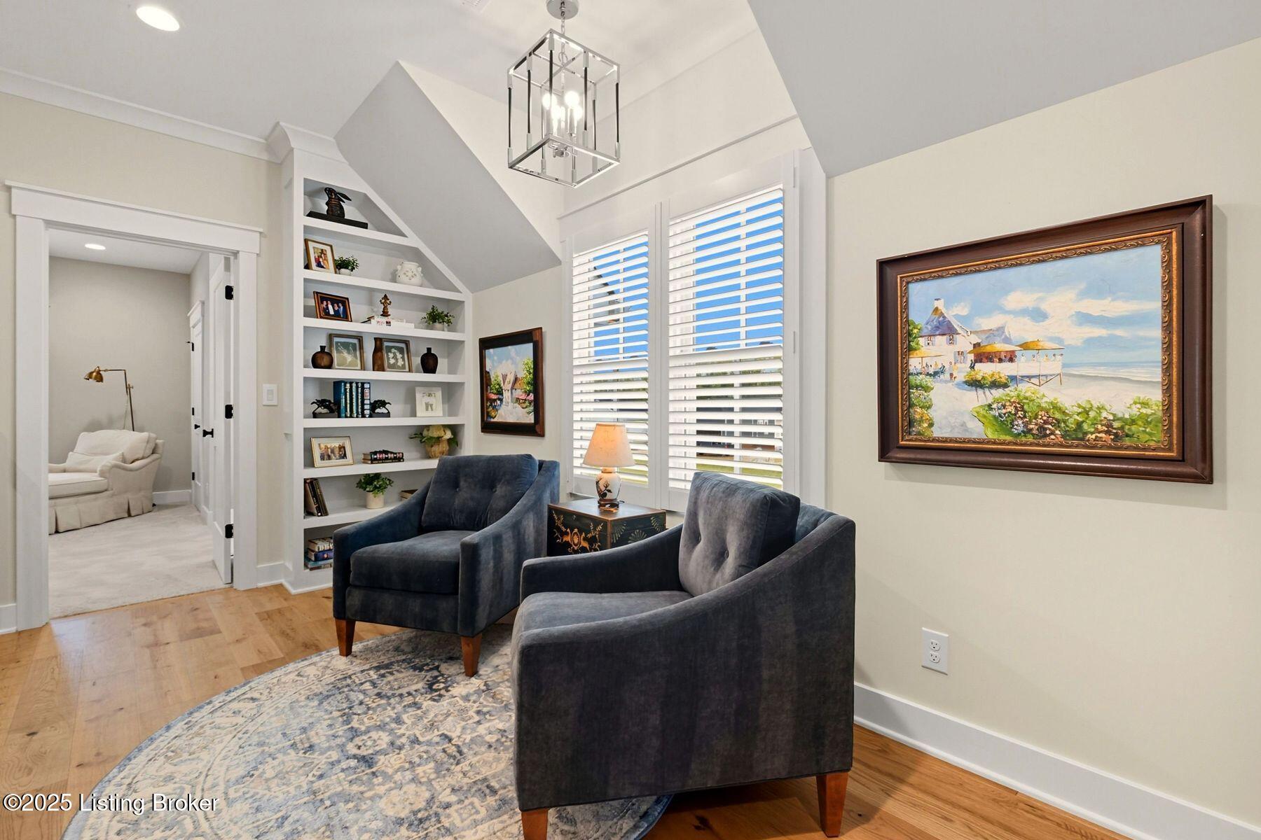 Introducing this thoughtfully crafted residence in the coveted Hamlet section of Norton Commons. A charming front porch framed by fresh landscaping sets a welcoming tone before stepping inside. The foyer introduces light-filled, purposeful spaces. To one side, a private sitting room with a full bath offers an ideal retreat for guests, while the opposite side features a handsome home office with floor-to-ceiling built-ins and a custom credenza--perfect for working or studying from home. A stylish powder room is tucked nearby for convenience. At the heart of the home, the gourmet kitchen boasts a large island, stainless steel appliances, and a spacious walk-in pantry. Flowing seamlessly into the dining area and gathering room, this open layout is designed for effortless entertaining. Extend gatherings outdoors to the screened-in porch with fireplace, creating a cozy haven for year-round enjoyment. The first-floor primary suite provides a luxurious retreat, complete with dual vanities, a generous walk-in closet, and spa like finishes. Conveniently connected, the laundry room offers direct access to the expansive three-car garage. Upstairs, two additional bedrooms and a full bath are joined by a landing highlighted with built-in bookshelvesand an inviting nook for reading or relaxation. The unfinished basement with egress window and full bath rough-in provides endless opportunities for future living space. Modern comfort is elevated with a geothermal system, ensuring both efficiency and sustainability. Blending elegance, comfort, and function in every detail, this home is ready to welcome its next owner. Schedule your private showing today.
