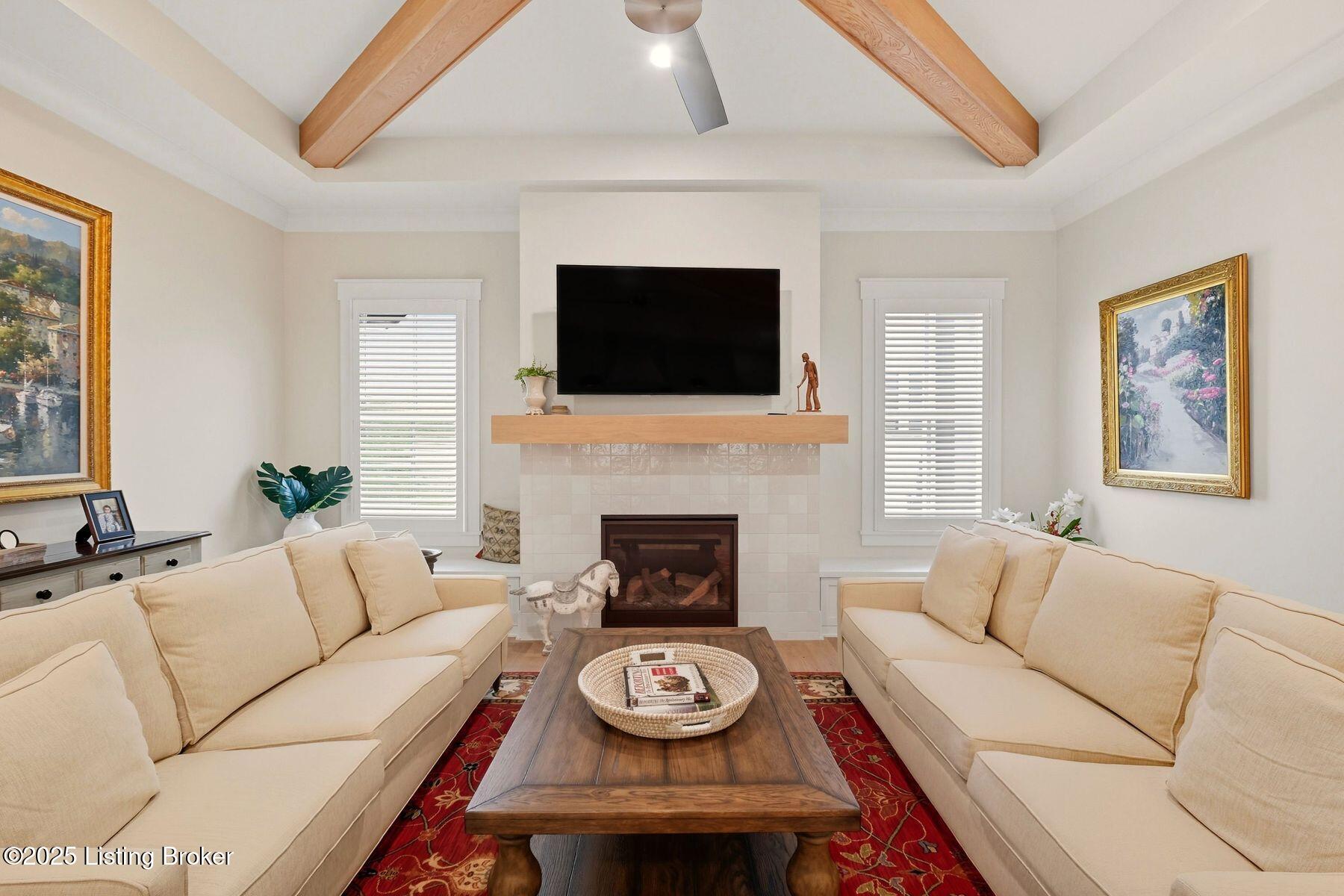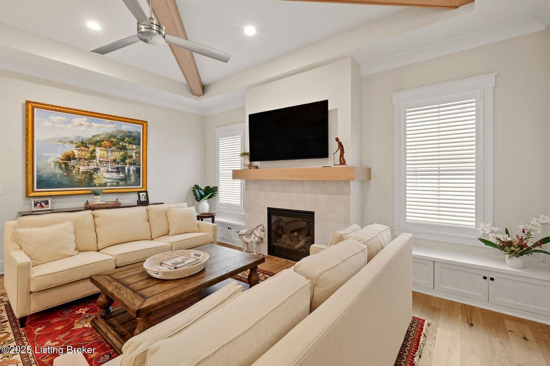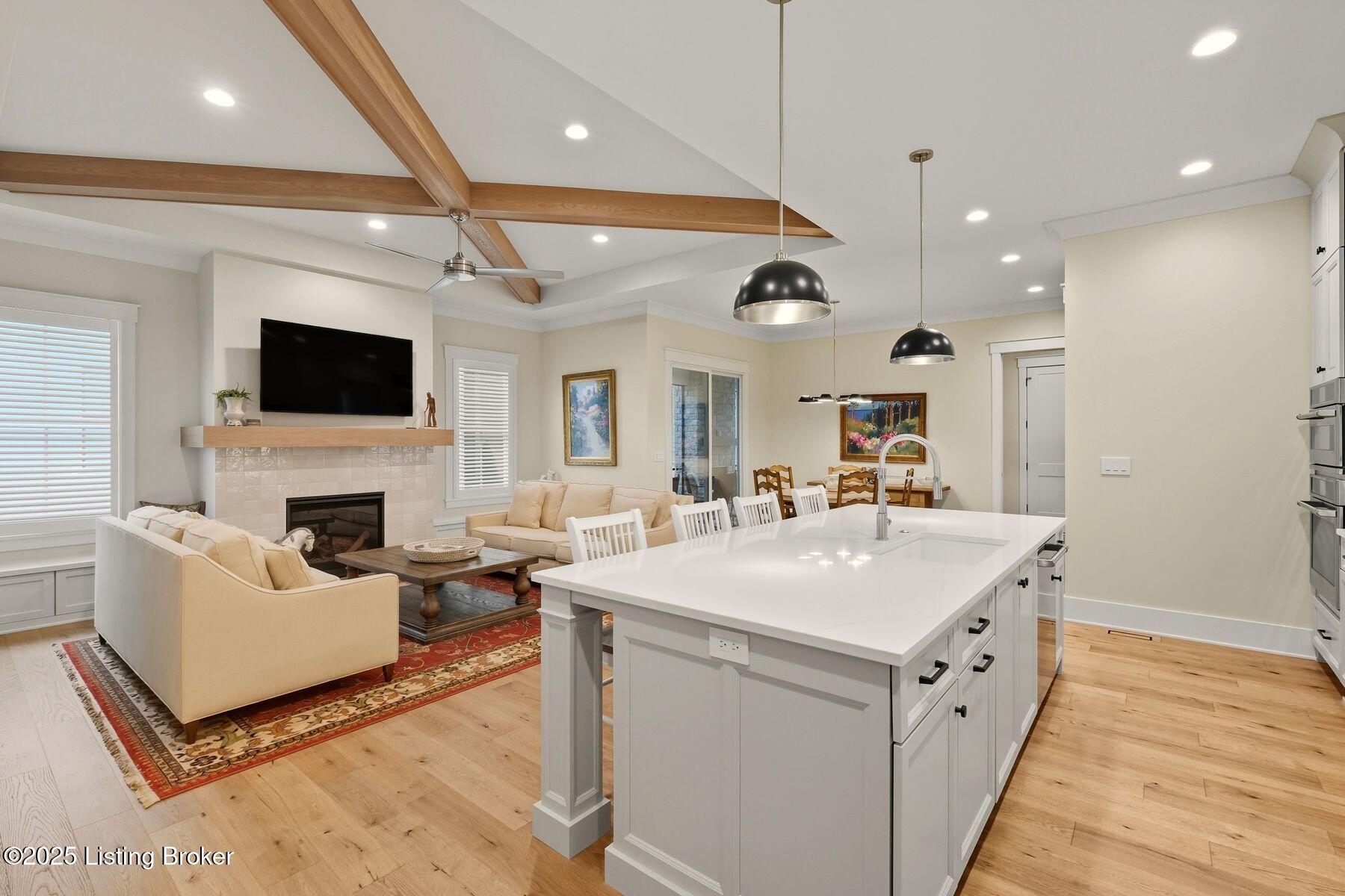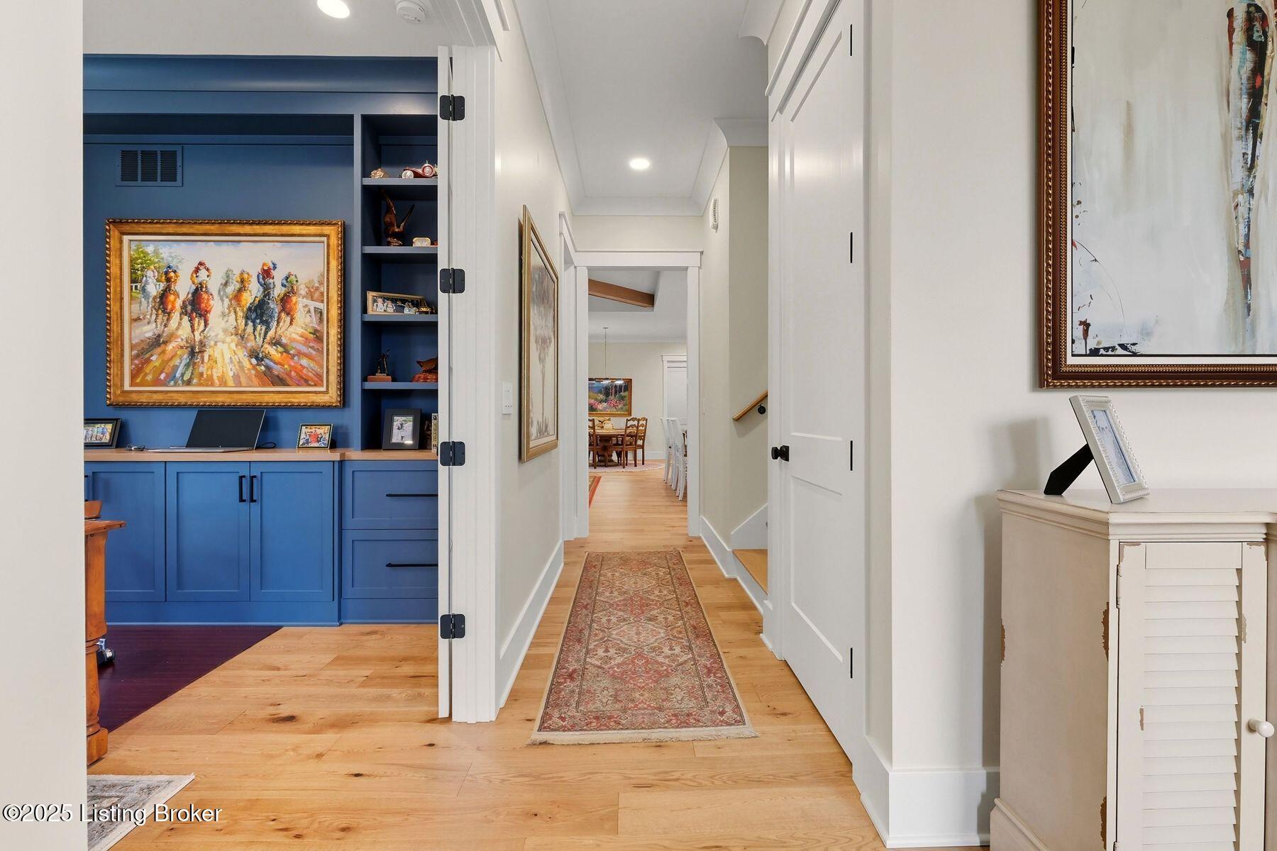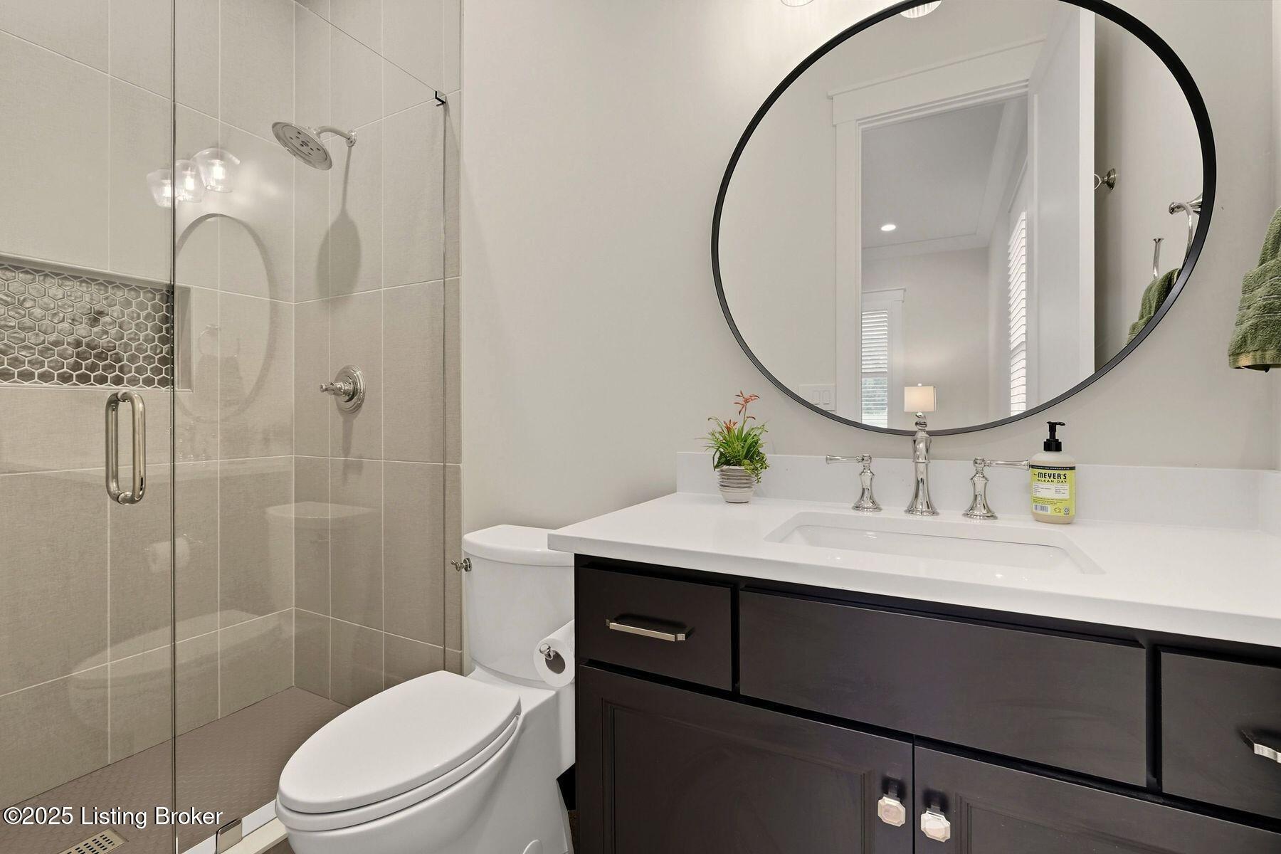 Introducing this thoughtfully crafted residence in the coveted Hamlet section of Norton Commons. A charming front porch framed by fresh landscaping sets a welcoming tone before stepping inside. The foyer introduces light-filled, purposeful spaces. To one side, a private sitting room with a full bath offers an ideal retreat for guests, while the opposite side features a handsome home office with floor-to-ceiling built-ins and a custom credenza--perfect for working or studying from home. A stylish powder room is tucked nearby for convenience. At the heart of the home, the gourmet kitchen boasts a large island, stainless steel appliances, and a spacious walk-in pantry. Flowing seamlessly into the dining area and gathering room, this open layout is designed for effortless entertaining. Extend gatherings outdoors to the screened-in porch with fireplace, creating a cozy haven for year-round enjoyment. The first-floor primary suite provides a luxurious retreat, complete with dual vanities, a generous walk-in closet, and spa like finishes. Conveniently connected, the laundry room offers direct access to the expansive three-car garage. Upstairs, two additional bedrooms and a full bath are joined by a landing highlighted with built-in bookshelvesand an inviting nook for reading or relaxation. The unfinished basement with egress window and full bath rough-in provides endless opportunities for future living space. Modern comfort is elevated with a geothermal system, ensuring both efficiency and sustainability. Blending elegance, comfort, and function in every detail, this home is ready to welcome its next owner. Schedule your private showing today.