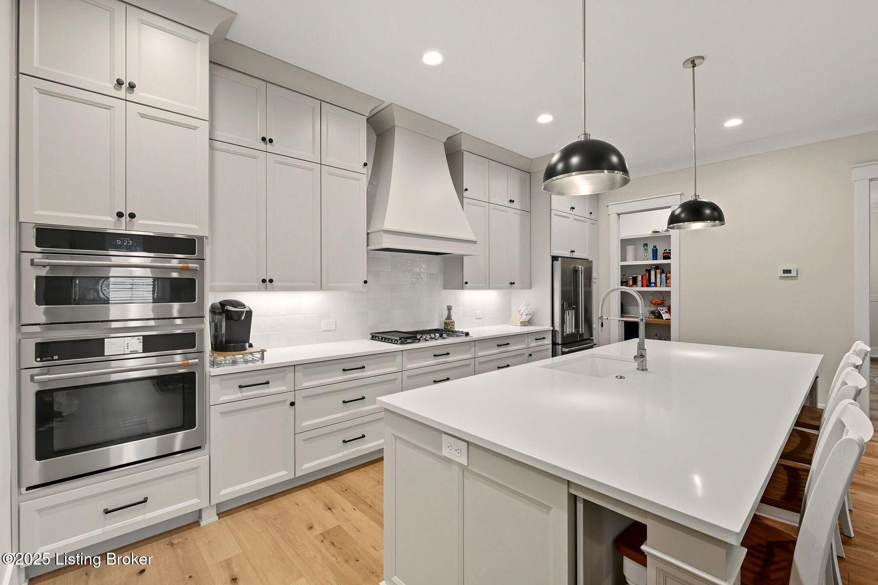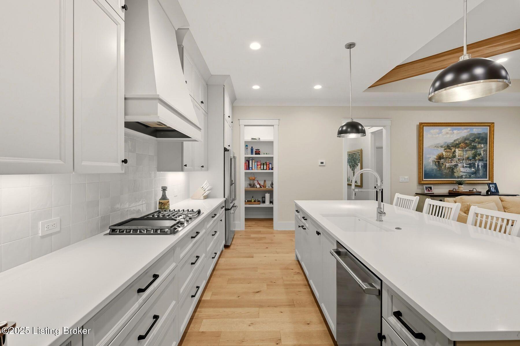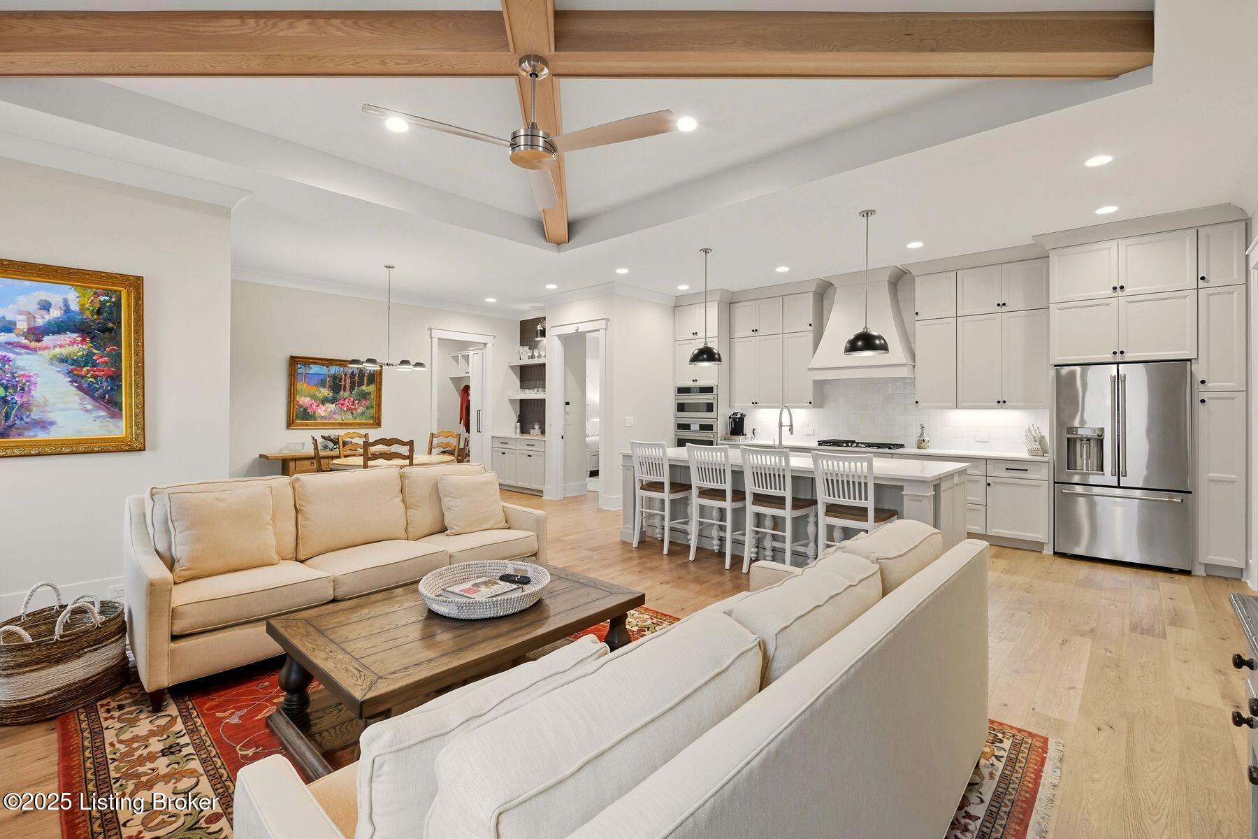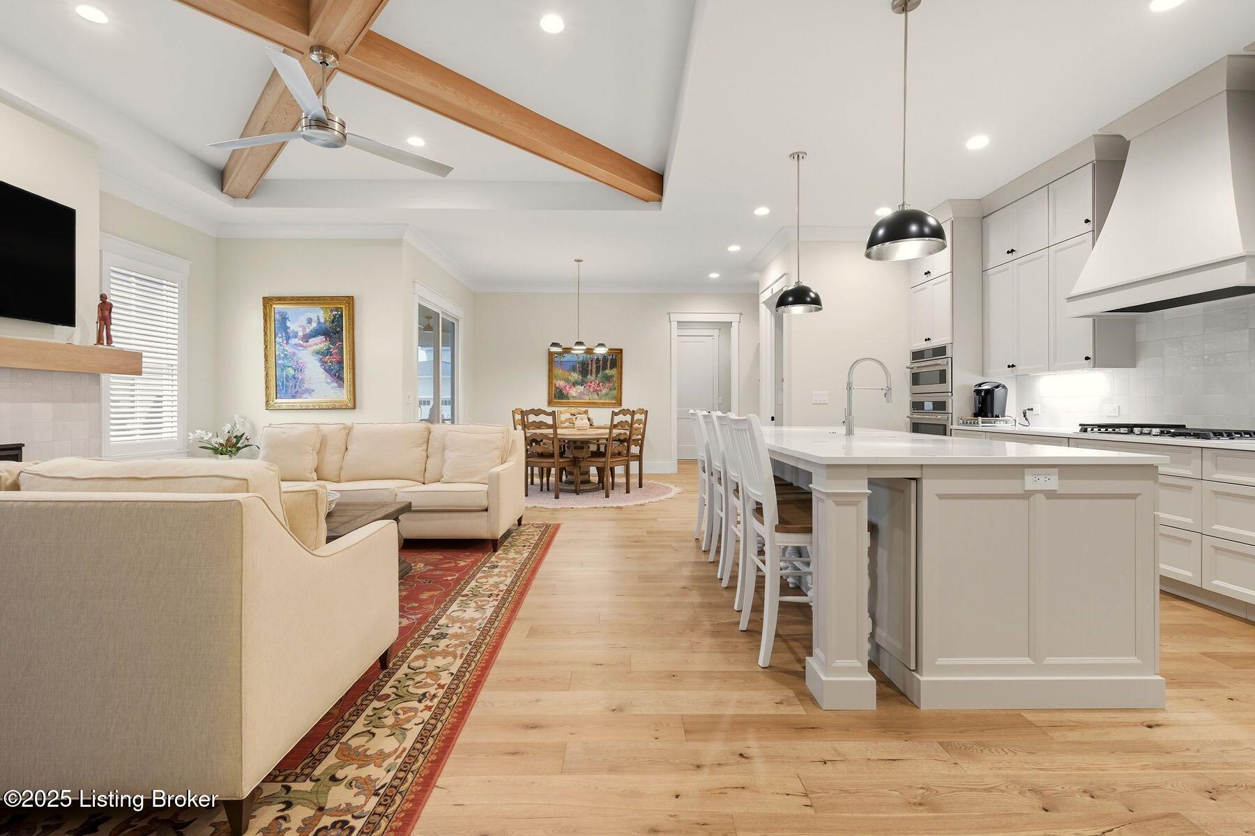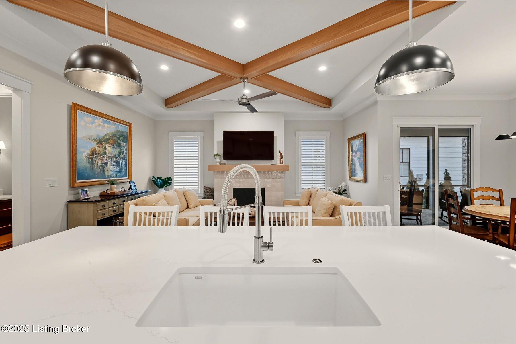 Introducing this thoughtfully crafted residence in the coveted Hamlet section of Norton Commons. A charming front porch framed by fresh landscaping sets a welcoming tone before stepping inside. The foyer introduces light-filled, purposeful spaces. To one side, a private sitting room with a full bath offers an ideal retreat for guests, while the opposite side features a handsome home office with floor-to-ceiling built-ins and a custom credenza--perfect for working or studying from home. A stylish powder room is tucked nearby for convenience. At the heart of the home, the gourmet kitchen boasts a large island, stainless steel appliances, and a spacious walk-in pantry. Flowing seamlessly into the dining area and gathering room, this open layout is designed for effortless entertaining. Extend gatherings outdoors to the screened-in porch with fireplace, creating a cozy haven for year-round enjoyment. The first-floor primary suite provides a luxurious retreat, complete with dual vanities, a generous walk-in closet, and spa like finishes. Conveniently connected, the laundry room offers direct access to the expansive three-car garage. Upstairs, two additional bedrooms and a full bath are joined by a landing highlighted with built-in bookshelvesand an inviting nook for reading or relaxation. The unfinished basement with egress window and full bath rough-in provides endless opportunities for future living space. Modern comfort is elevated with a geothermal system, ensuring both efficiency and sustainability. Blending elegance, comfort, and function in every detail, this home is ready to welcome its next owner. Schedule your private showing today.