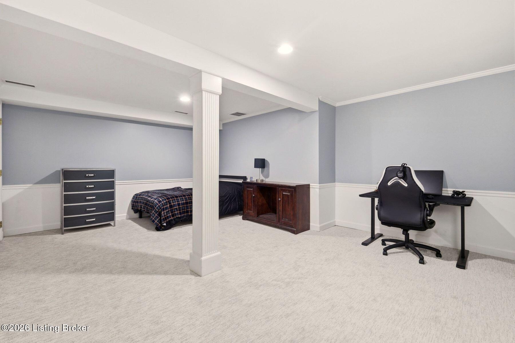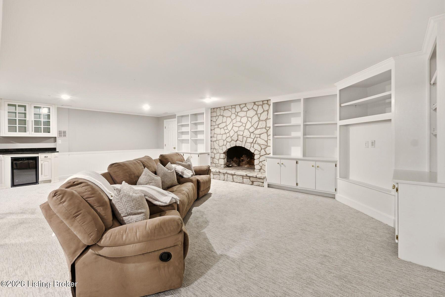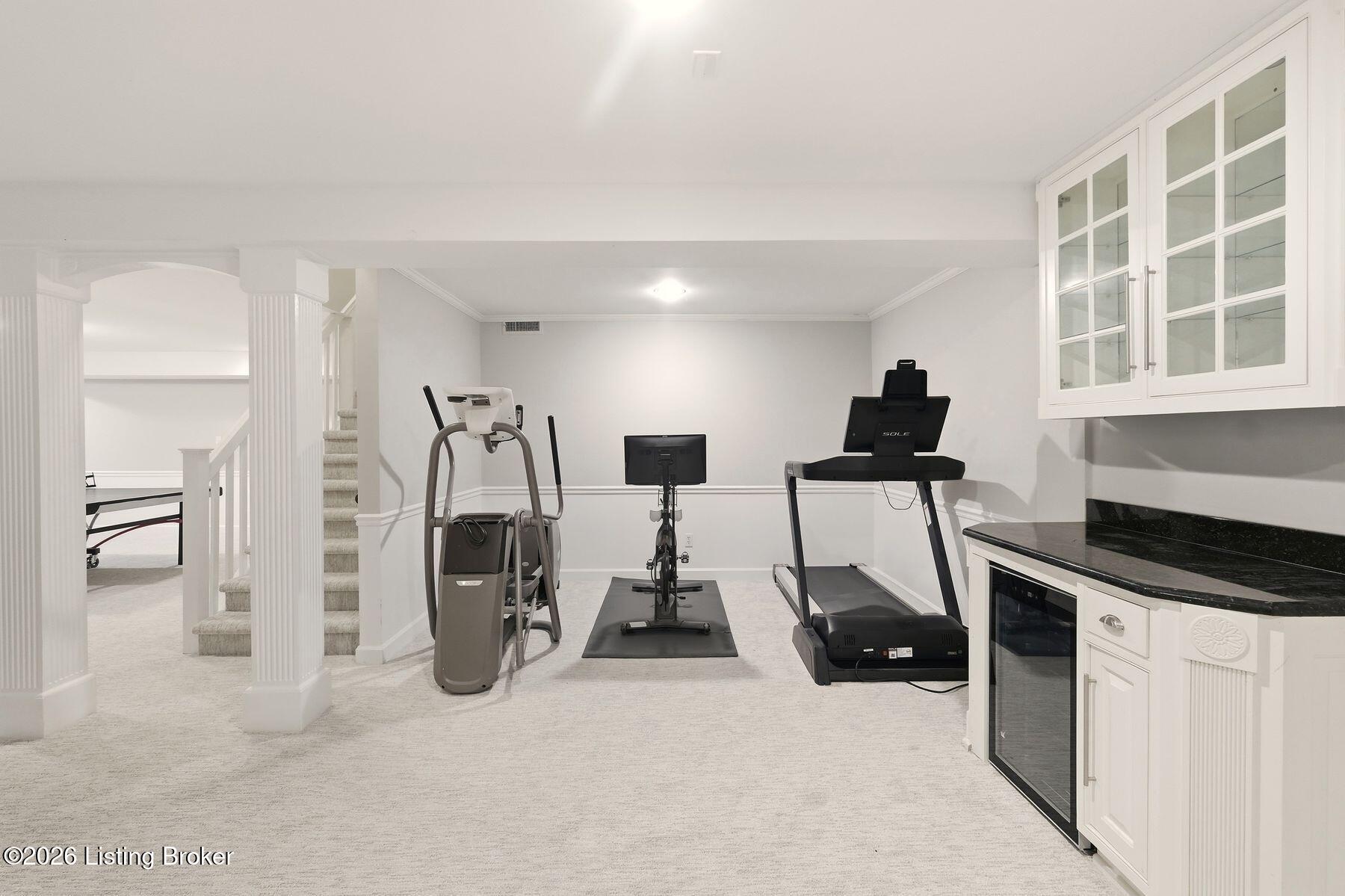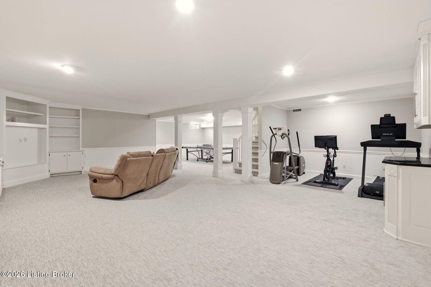 Overlooking the 15th green of the Harmony Landing Country Club, this timeless two-story estate home features southern colonial charm in a parklike setting. Sitting on 1 acre and surrounded by mature trees, homeowners will enjoy use of the home's incredible backyard with in-ground pool, brick terrace, columned porch, and large side yards for added privacy. Past a semicircular driveway and towering front porch, guest first arrive into the two-story foyer with classic black and white tile flooring, winding staircase, and two convenient coat closets. A large formal dining room sits to the right while the grand living room sits to the left. With a columned entrance and slate tile floors, the home's sun room addition features panoramic views of the green backyard and woods beyond. A soaring two-story great room anchored by a floor-to-ceiling stone fireplace centers the home and features bright picture windows, vaulted ceiling, and built-in bookshelves. From the great room, the open floor plan guides guests into the stunning eat-in kitchen with stainless steel appliances, floor-to-ceiling cabinetry, custom bench area, granite countertops, and large breakfast bar. Homeowners will appreciate the adjacent laundry room with custom shelving, second refrigerator, wet sink, and additional storage. A full bath and 3-car garage complete the first floor. The second floor features a unique primary suite wing with spacious primary bedroom, private balcony, luxurious primary bath, and impressive closet with individual sides and custom cabinetry. The opposite wing of the second floor features two bedrooms with shared full bath, cozy office or homework station, and guest suite with en-suite bath and walk-in closet. The lower level features spacious family room with fireplace and built-in bookshelves, exercise area, game room, full bath, and bonus room currently used as 5th bedroom.