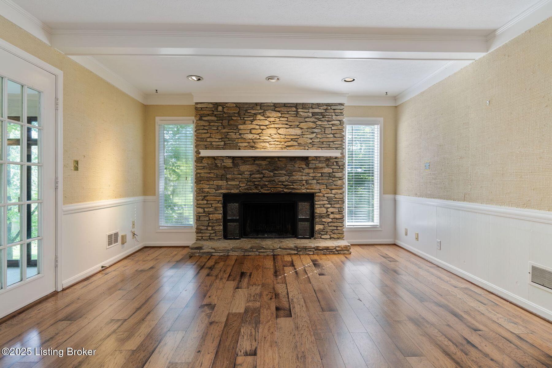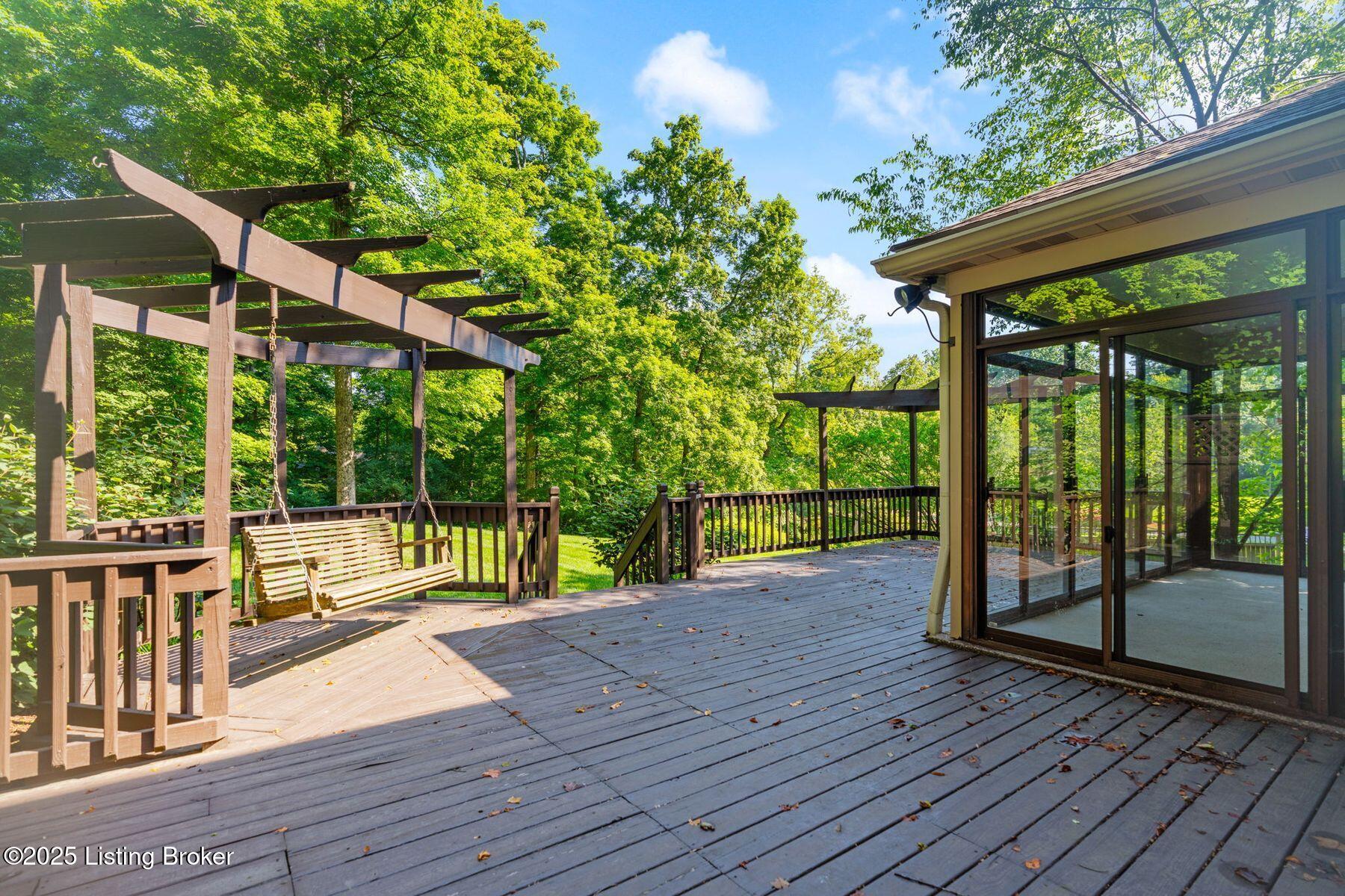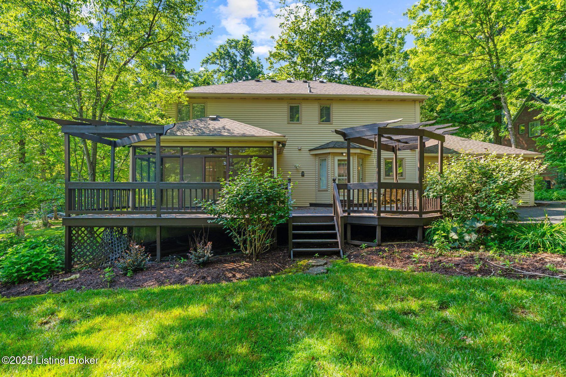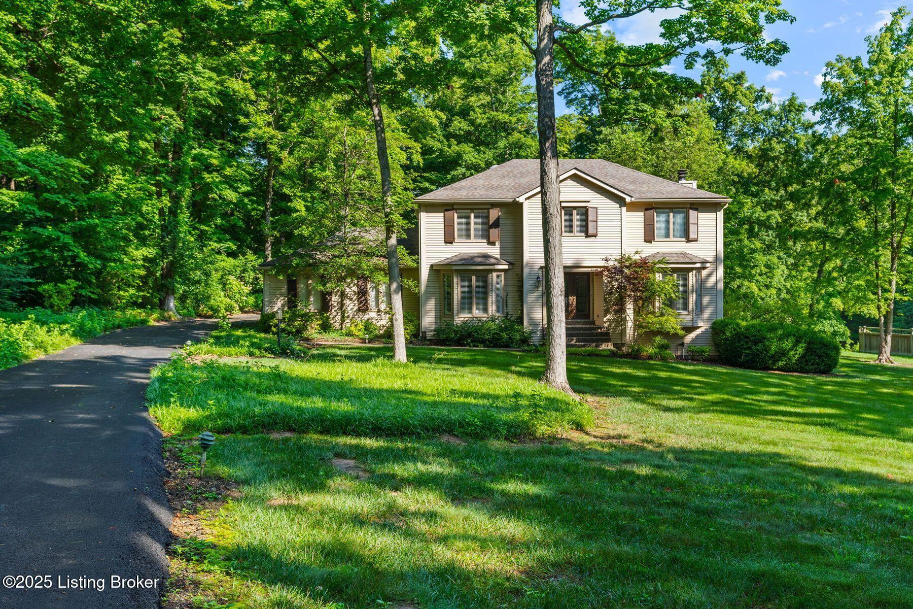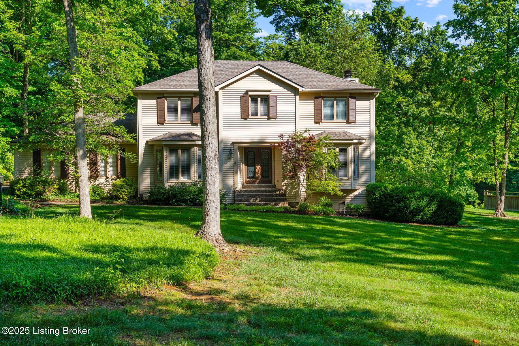 Nestled on a beautifully maintained 1.3-acre lot in the heart of desirable Oldham County, this classic two-story home offers timeless charm and exceptional potential. With four spacious bedrooms and a traditional layout, the home features generous living and dining areas on the main floor, perfect for both everyday living and entertaining. The inviting family room is anchored by a cozy fireplace, built-in shelving, and access to the screened-in porch and expansive deck, seamlessly blending indoor comfort with outdoor enjoyment. Upstairs, the spacious primary suite is complemented by three additional bedrooms and a second full bath, providing plenty of space for family or guests. The partially finished basement offers a flexible layout with room for a second family room, office, or gym, along with ample unfinished space for storage. Surrounded by mature trees and lush landscaping,
