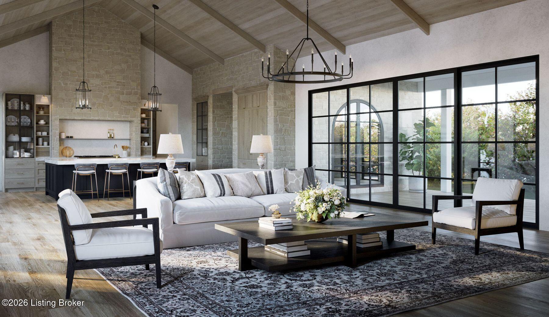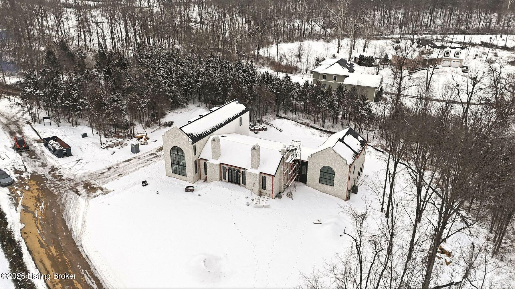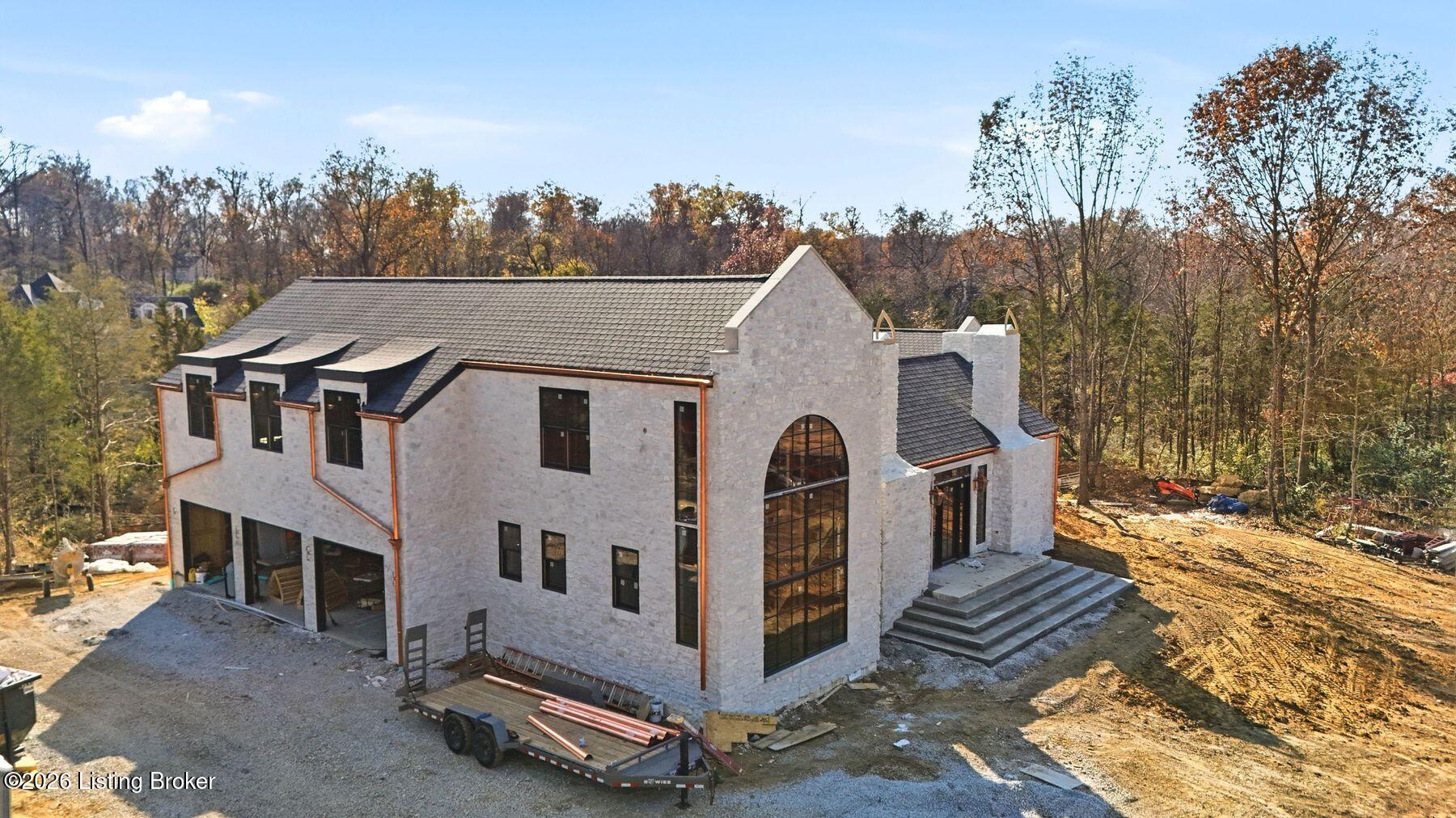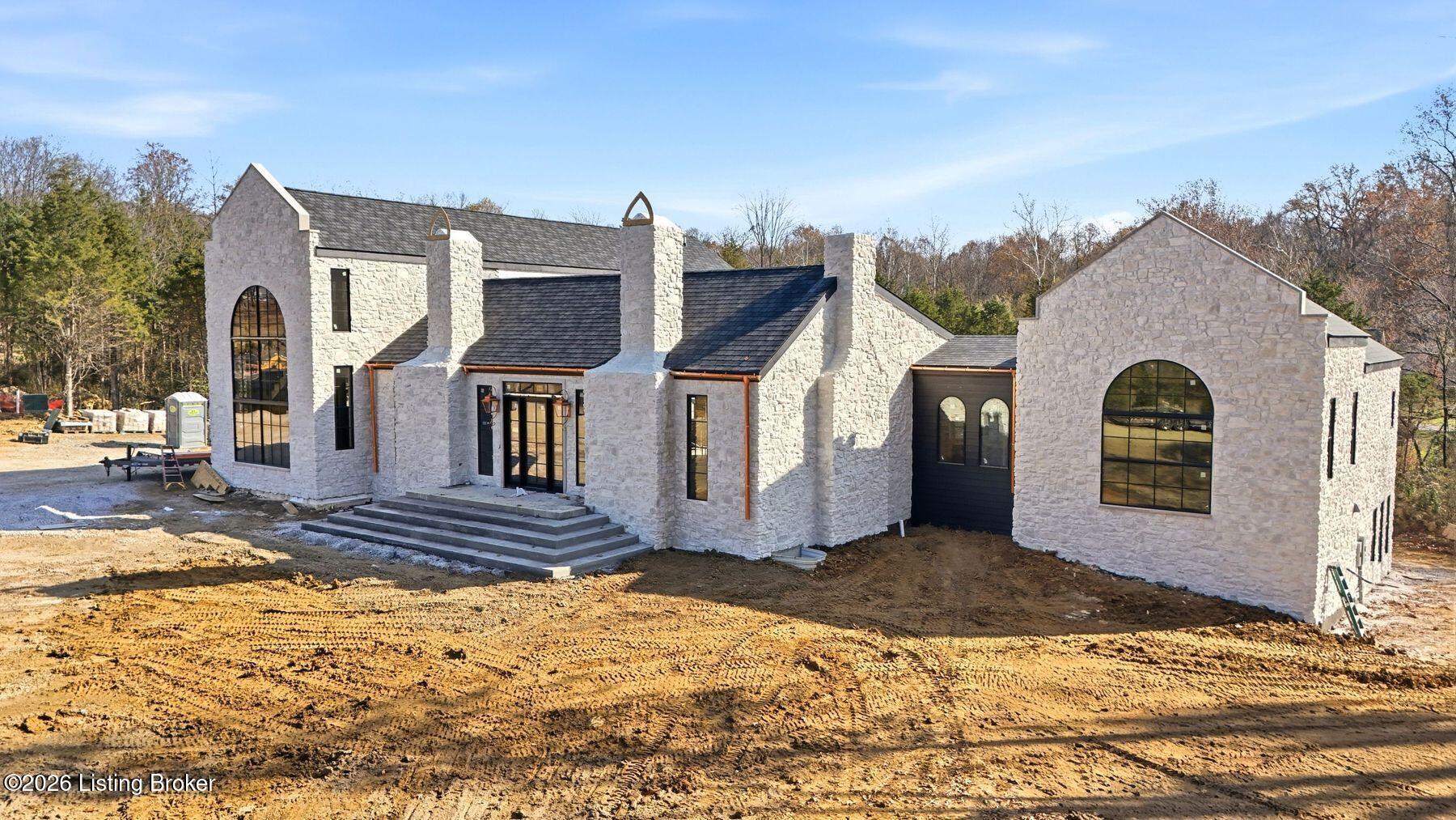 Introducing refined living in this exquisite new construction home by Haus Luxury Builders, where timeless European-inspired architecture meets modern luxury. Set in the highly sought-after Oldham County school district, this modern masterpiece offers a rare blend of elegance, functionality, and craftsmanship. From the moment you arrive, the striking stone facade, grand arched windows, and twin chimneys make a commanding impression. Inside, the thoughtfully designed main level features soaring ceilings, wide open living spaces, and walls of glass that flood the home with natural light. A dining area and chef's kitchen flow seamlessly into a sun-drenched family room, perfect for everyday living and effortless entertaining. The private first floor primary suite is a true retreat showcasing stones and tiles throughout, while the additional 4 second floor bedrooms are ideal for family and guests. Enjoy top-tier finishes, designer lighting, custom millwork, and attention to detail throughout while still having the opportunity for customization and personal touches. Perfectly situated on a generous 1.74 acre lot with a circular drive, lush landscaping, and room for a pool, this home is the ultimate blend of style, comfort, and convenience in one of Oldham County's most prestigious enclaves.