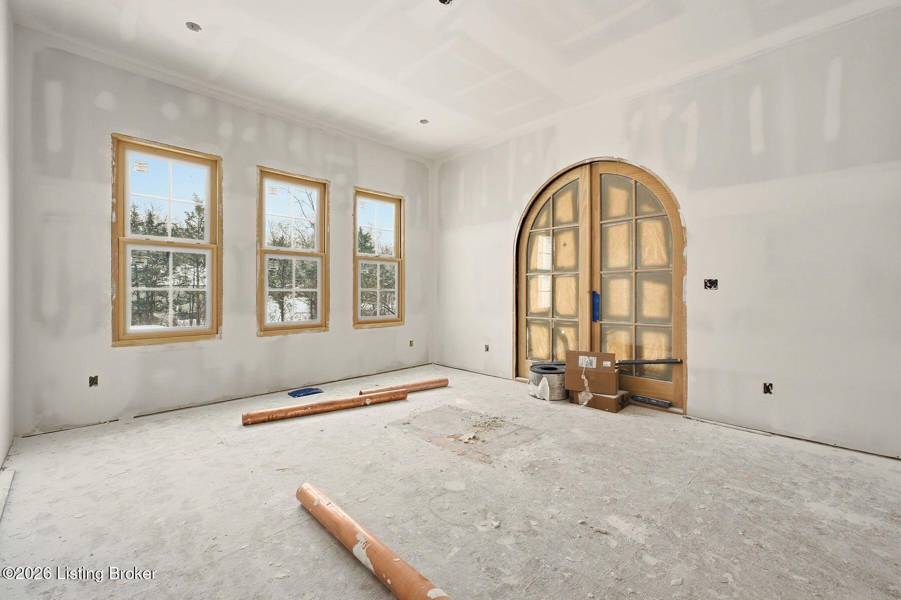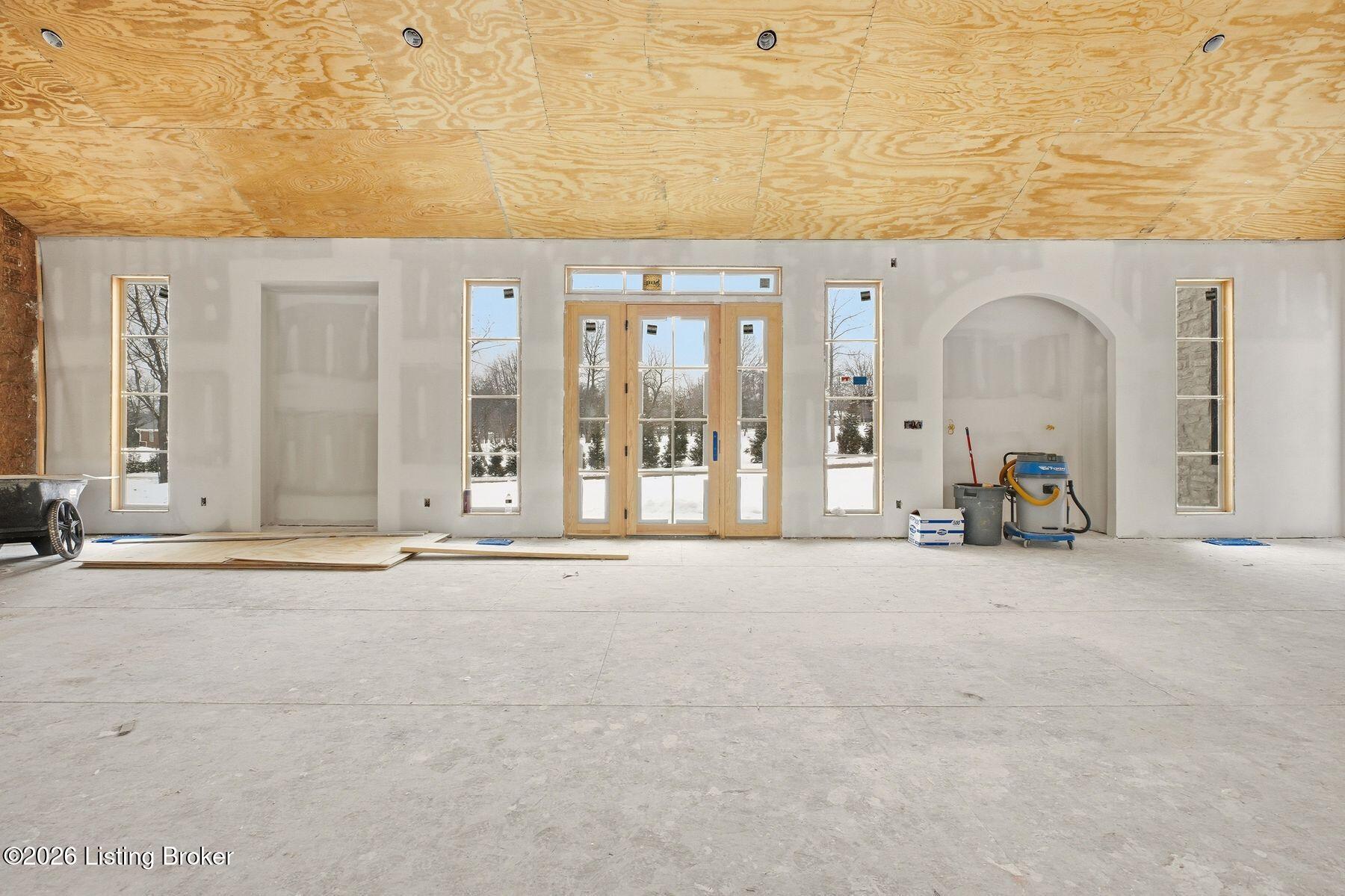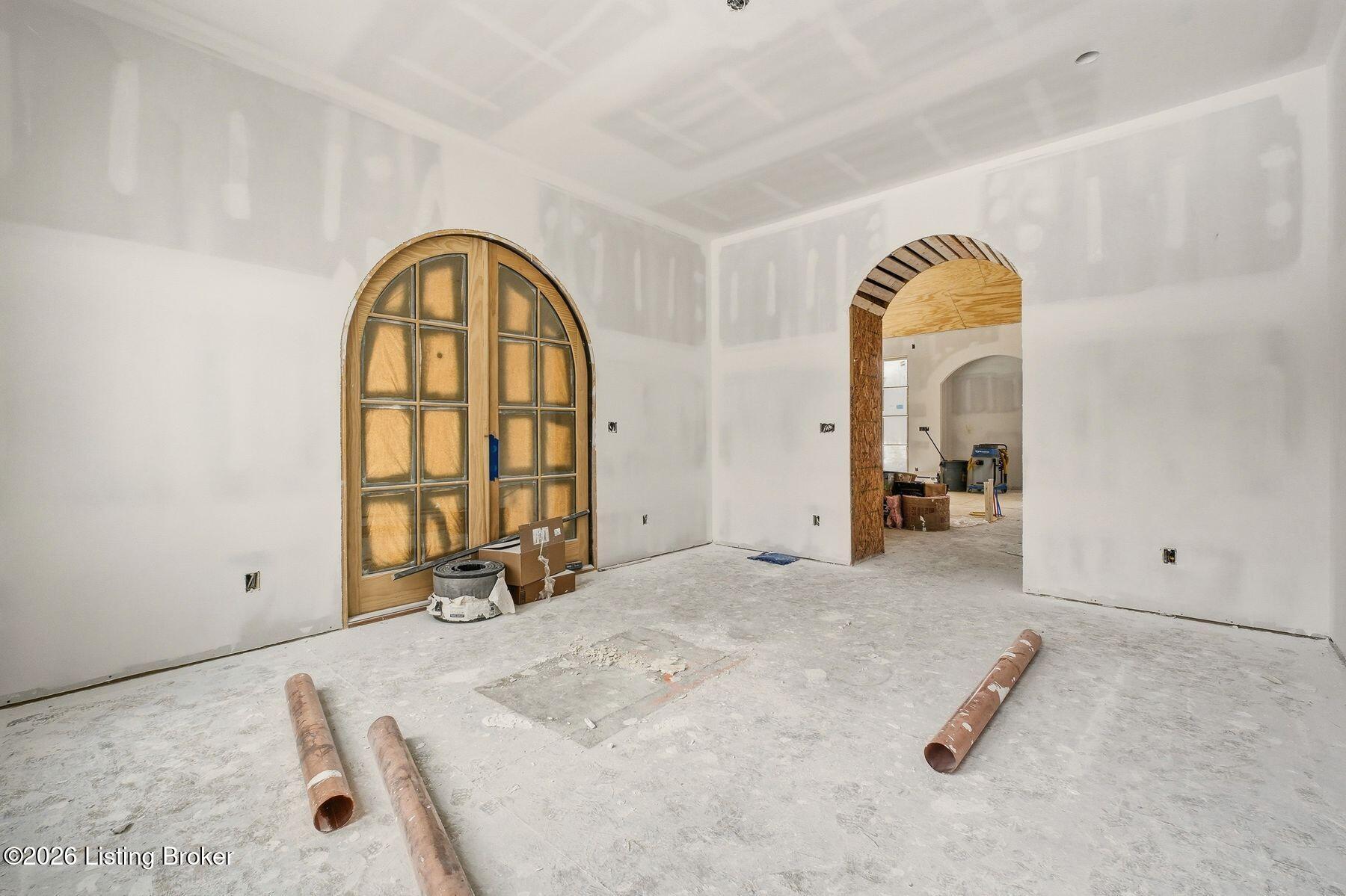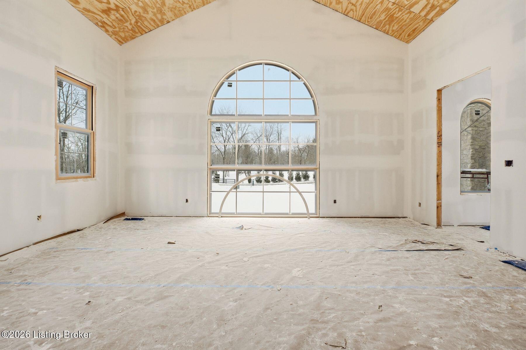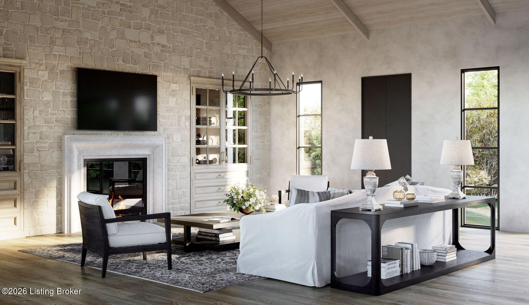Introducing refined living in this exquisite new construction home by Haus Luxury Builders, where timeless European-inspired architecture meets modern luxury. Set in the highly sought-after Oldham County school district, this modern masterpiece offers a rare blend of elegance, functionality, and craftsmanship. From the moment you arrive, the striking stone facade, grand arched windows, and twin chimneys make a commanding impression. Inside, the thoughtfully designed main level features soaring ceilings, wide open living spaces, and walls of glass that flood the home with natural light. A dining area and chef's kitchen flow seamlessly into a sun-drenched family room, perfect for everyday living and effortless entertaining. The private first floor primary suite is a true retreat showcasing stones and tiles throughout, while the additional 4 second floor bedrooms are ideal for family and guests. Enjoy top-tier finishes, designer lighting, custom millwork, and attention to detail throughout while still having the opportunity for customization and personal touches. Perfectly situated on a generous 1.74 acre lot with a circular drive, lush landscaping, and room for a pool, this home is the ultimate blend of style, comfort, and convenience in one of Oldham County's most prestigious enclaves.
