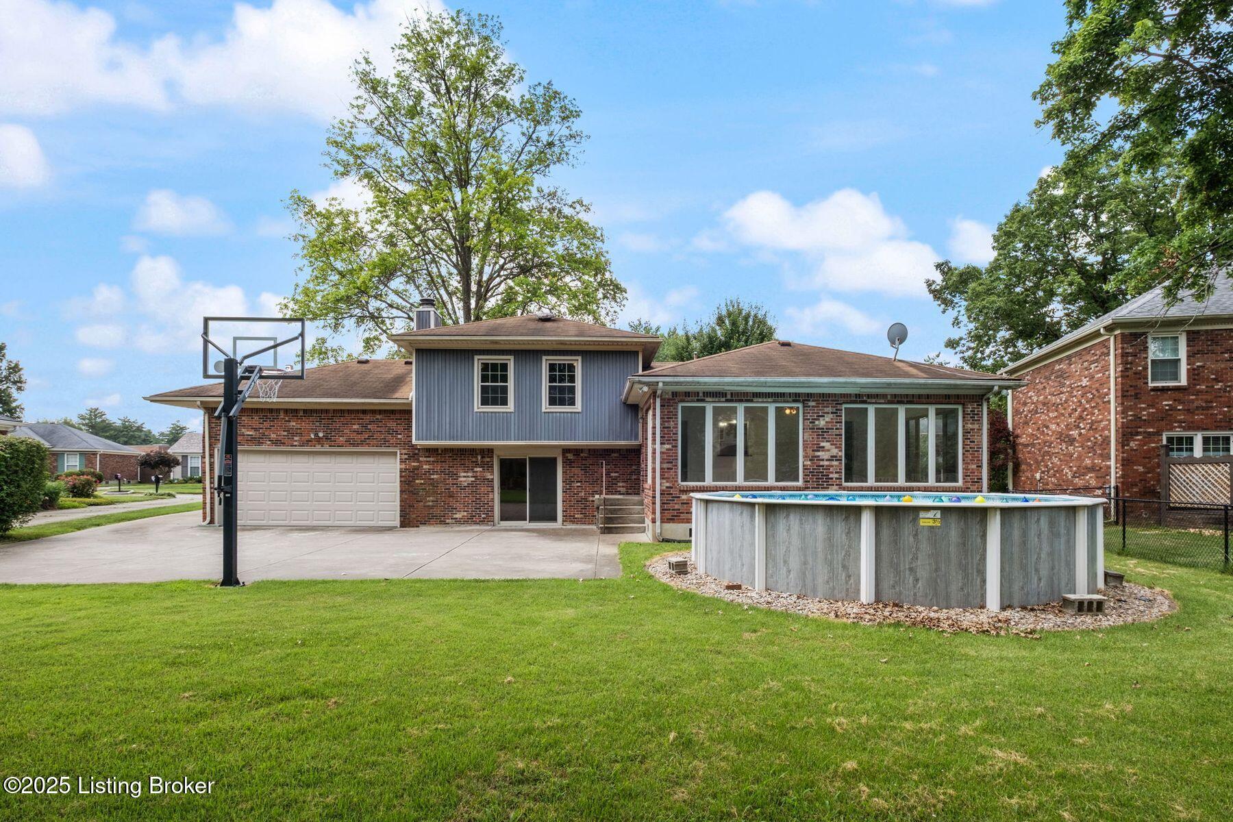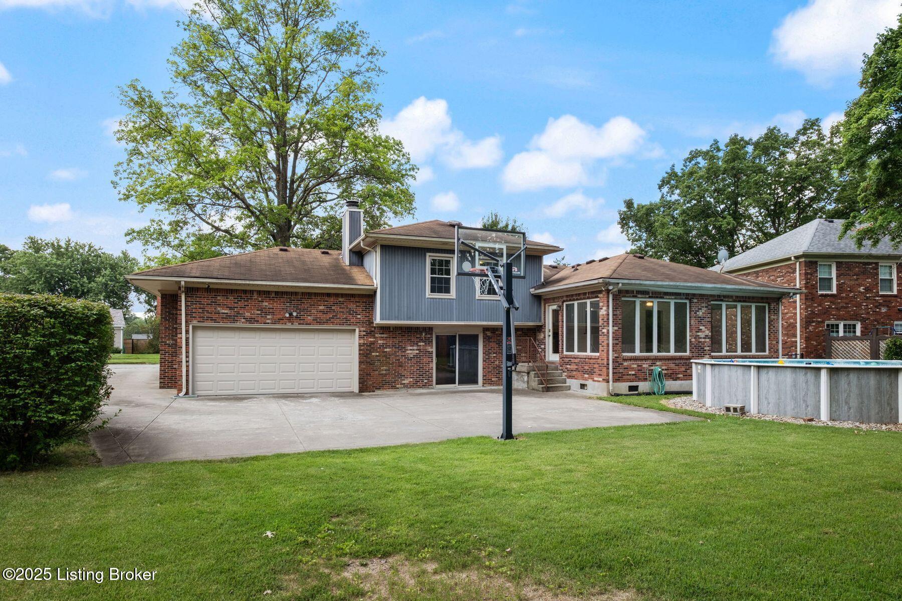 Conveniently situated off Brownsboro Rd, this traditional quad-level home is ready for the next owners to make their own, featuring 3 bedrooms (with optional 4th bedroom area available), brand new carpeting, and fresh paint throughout four accessible floors of living area. Just in time for summer, the home's above ground pool and spacious backyard will make the perfect place to enjoy the season.The first floor offers a large living room, dining room, and kitchen with granite countertops and stainless steel appliances. The level continues with an oversize sunroom addition offering a bright, flexible living area with access to the home's backyard. Off the kitchen, a cozy family room with stone fireplace and convenient bookshelves connects the home's full bath, laundry closet, and mud room with the first floor. The home's second floor features three bedrooms with sizable closets and a second full bath. Down a short flight of steps, the basement provides a second family room, perfect for a playroom or spacious workspace, along with additional storage closets. The home is complete with an attached 2-car garage and large parking pad with patio. Quietly nestled in a charming neighborhood yet located just minutes from the expressways, restaurants, and amenities of the Brownsboro and Westport corridors, this unique home offers a rare price point for the area.