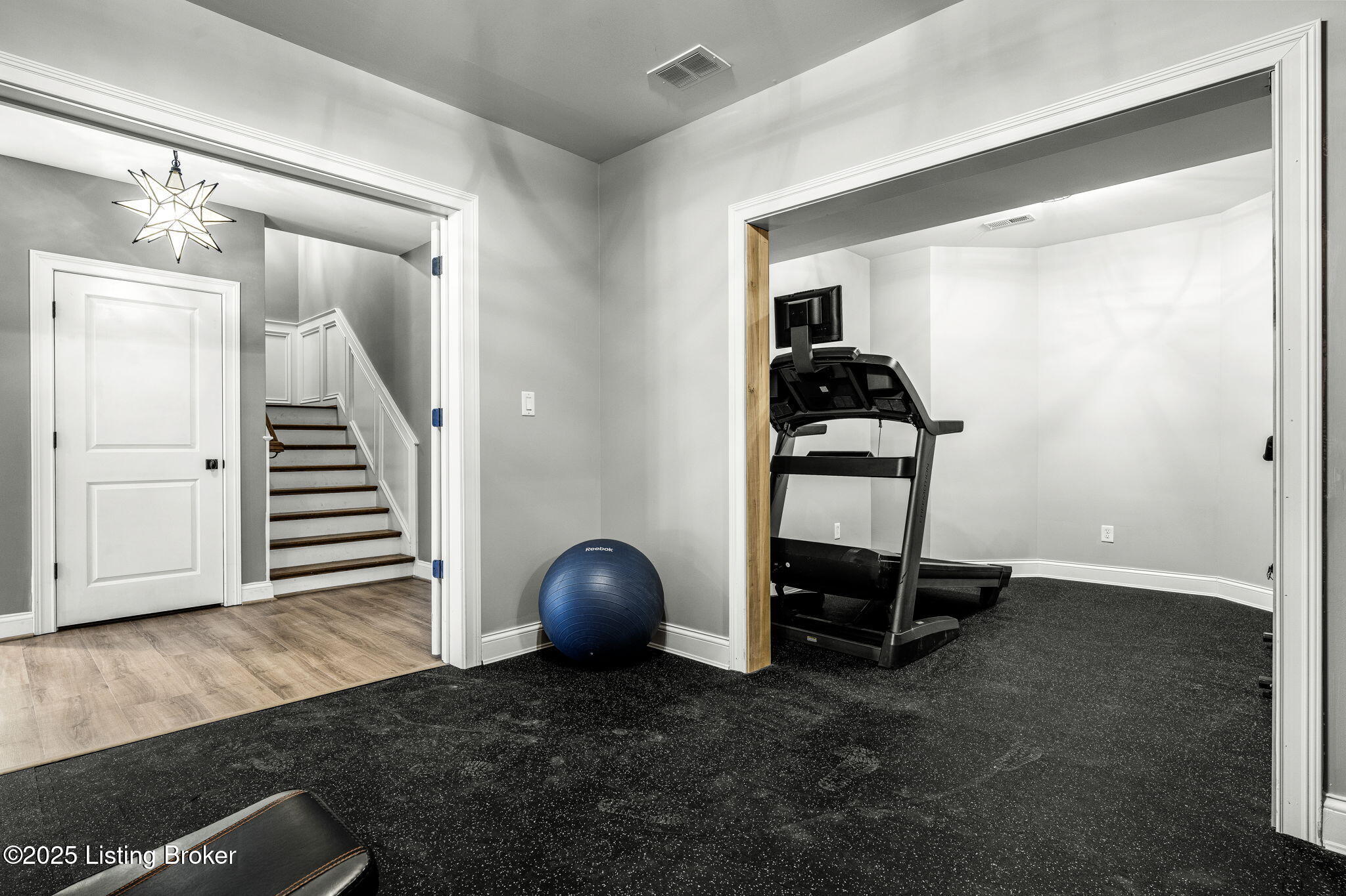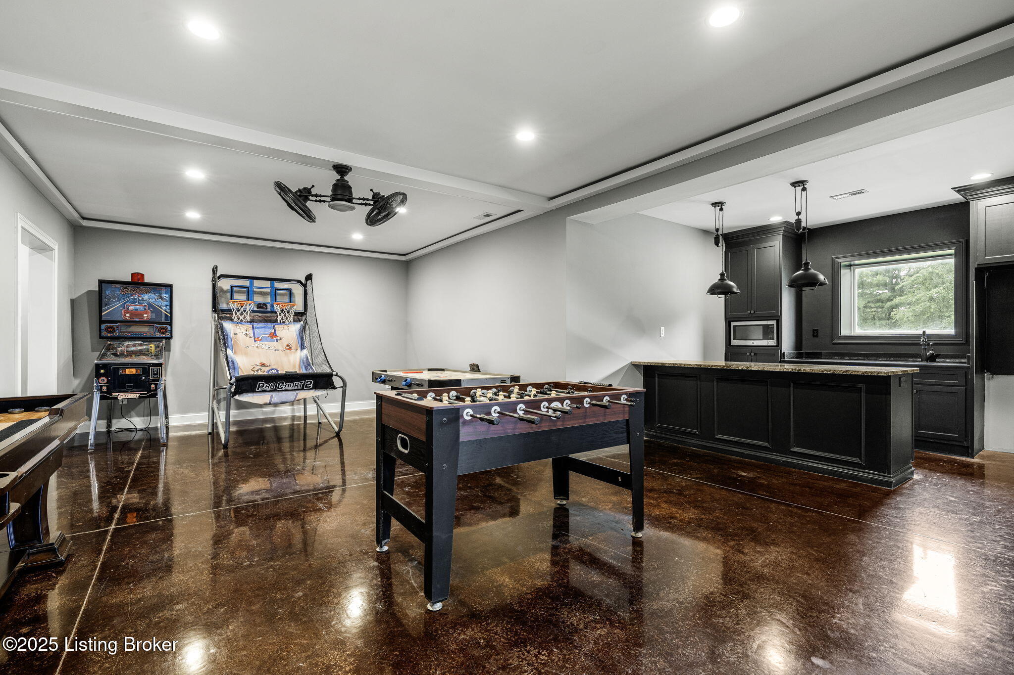 The main level features a spacious first-floor primary suite with a luxurious ensuite bathroom and custom walk-in closet; creating your own private haven at the end of the day. Upstairs, you'll find a spacious flex area currently used as an additional media and game room, along with several secondary bedrooms and a charming craft room; offering plenty of space for work, play, and relaxation. Downstairs, the fully finished walkout basement includes an additional bedroom, home gym, and full bathroom. The basement also includes a spacious game area, comfortable secondary living room, and a sleek wet bar. This creates a flexible lower-level retreat; ideal for entertaining, relaxing, or working from home.