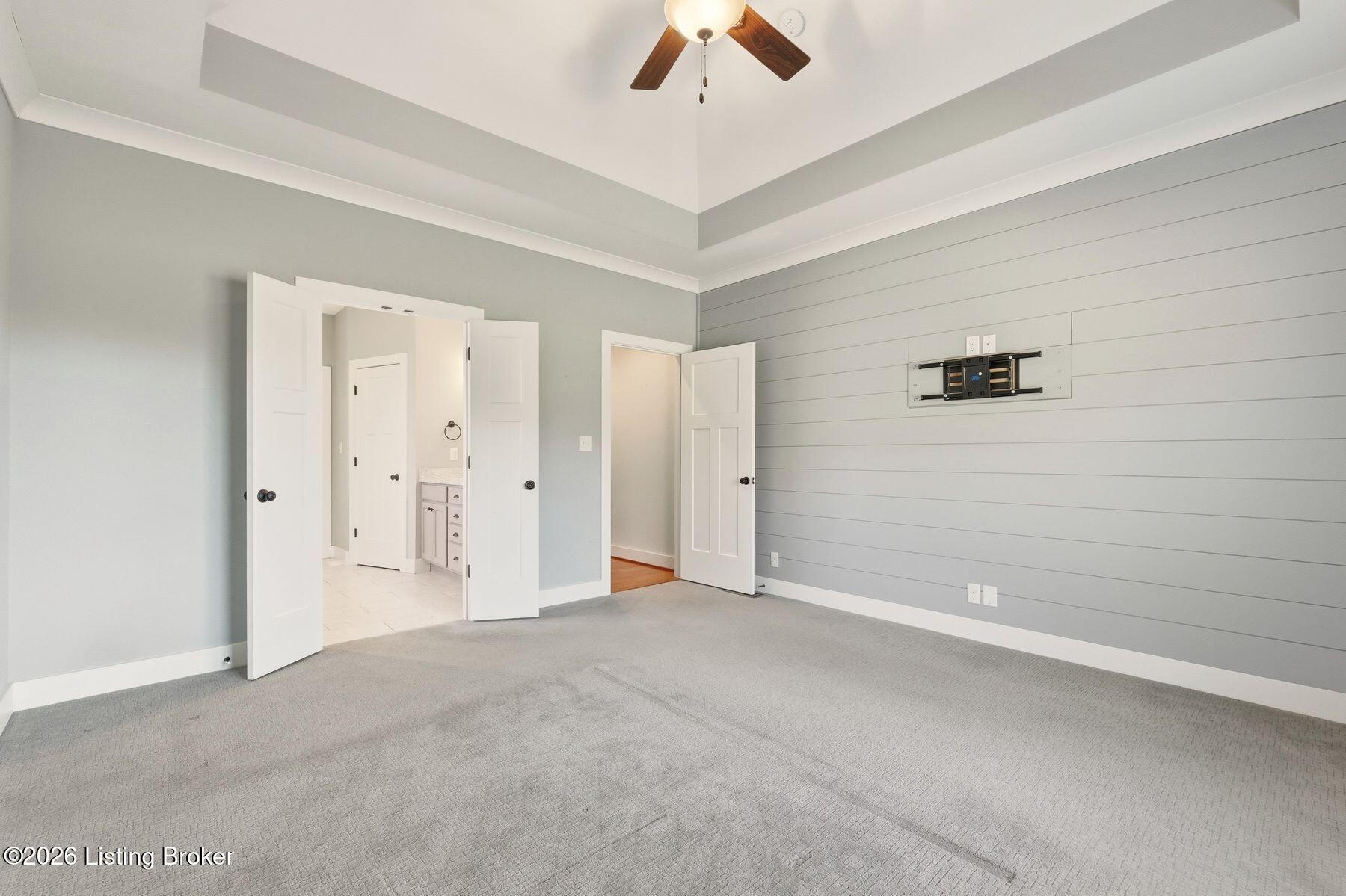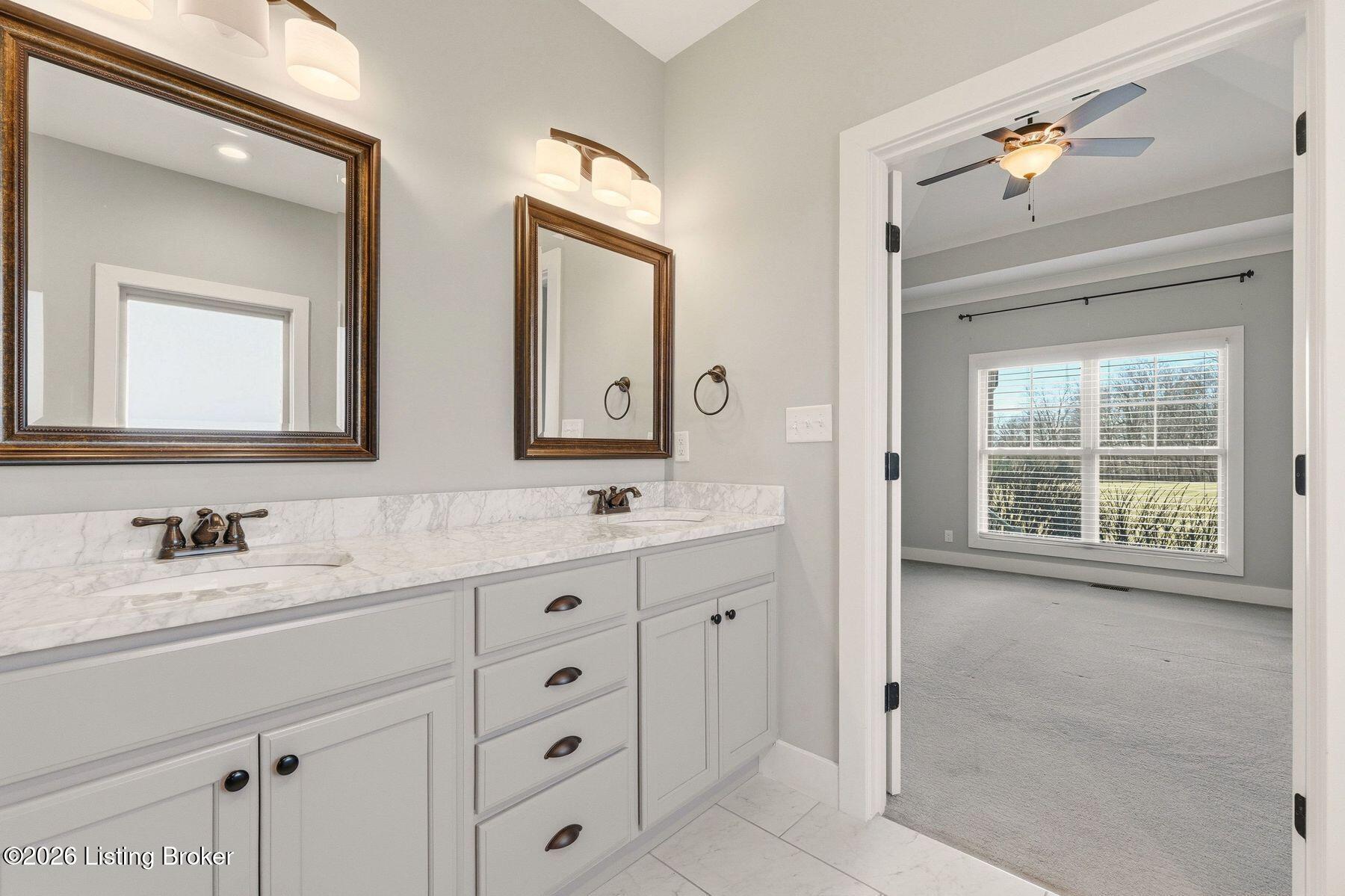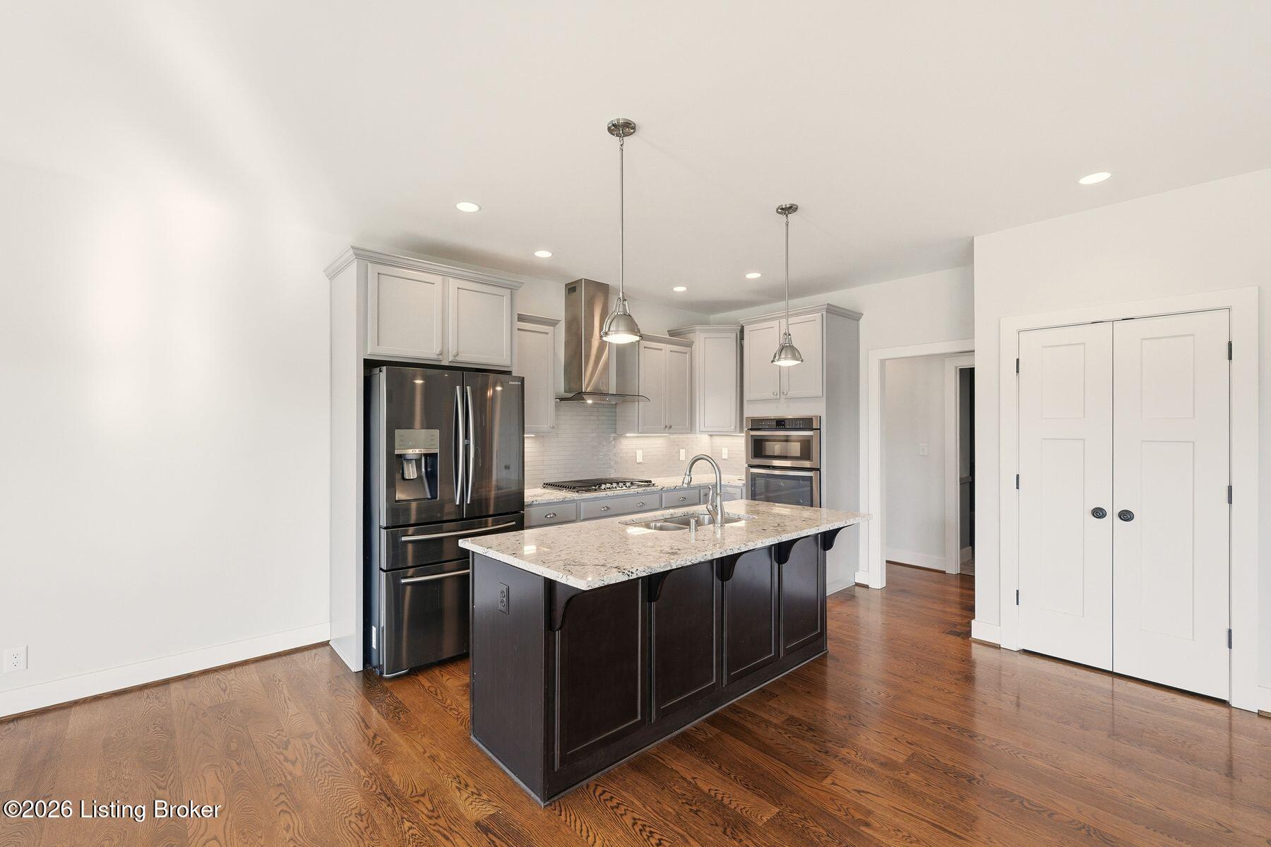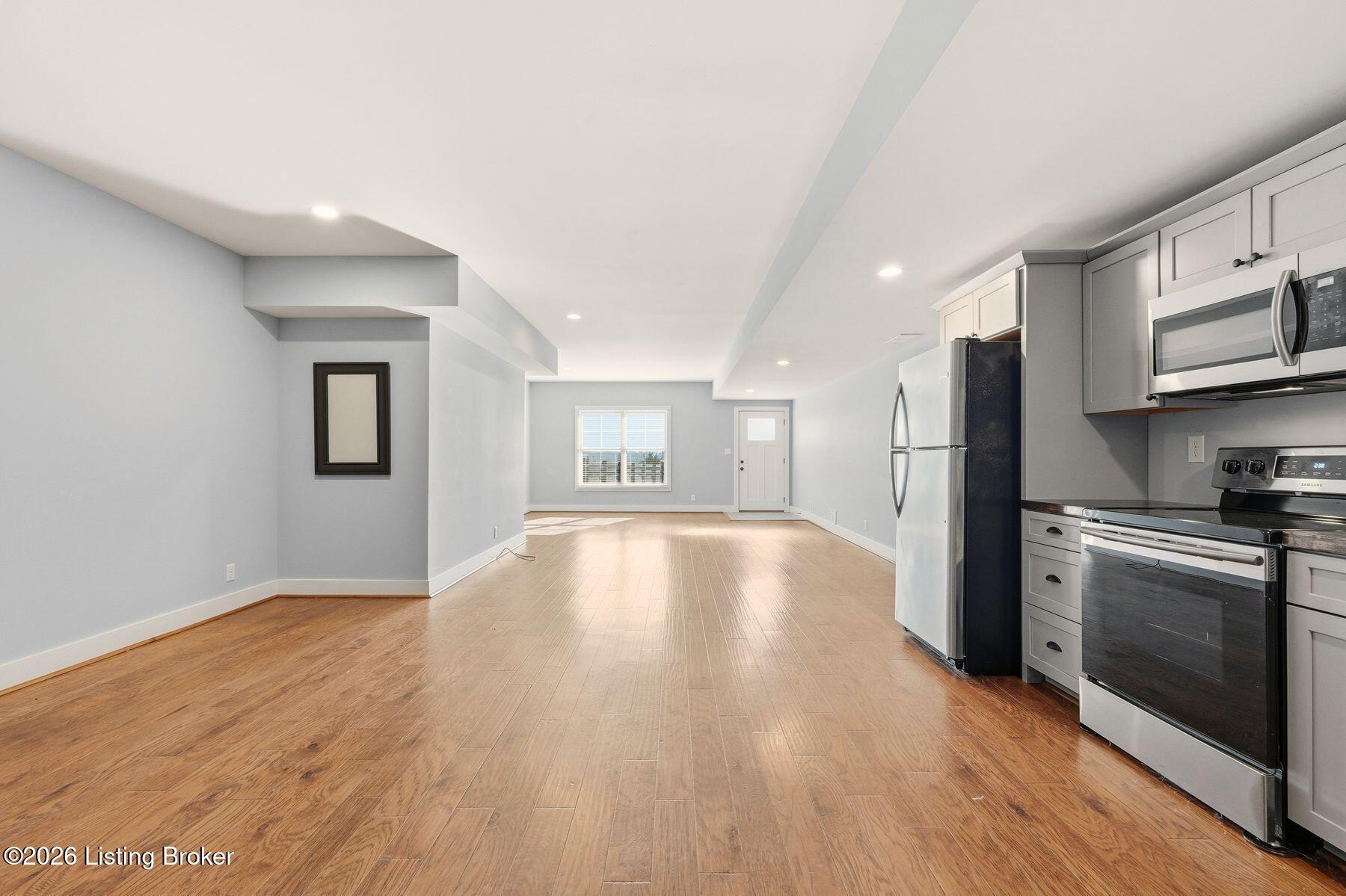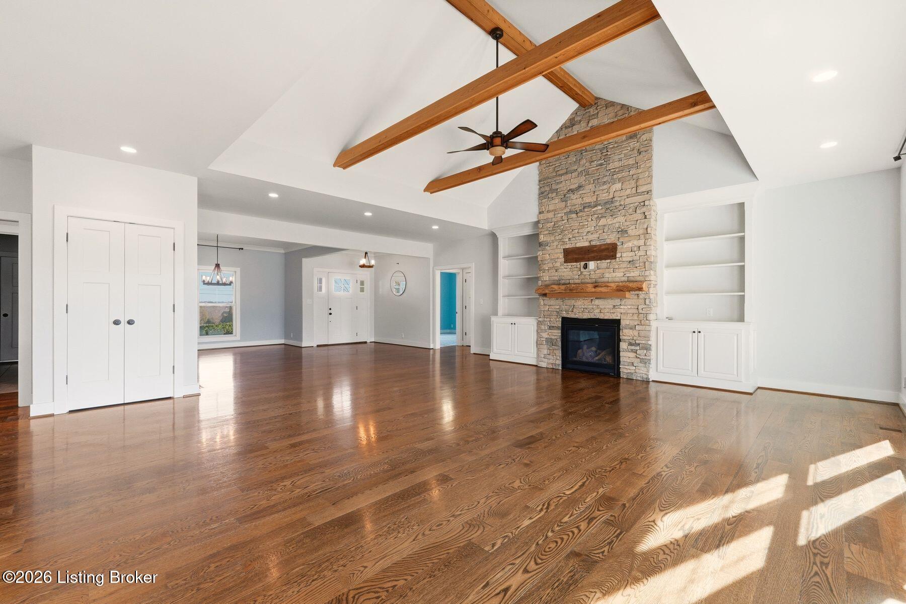 Presenting a quintessential Kentucky experience, this scenic estate offers the rare opportunity to own 3.24 acres of gently rolling Oldham County countryside, complete with newer construction 4+ bedroom ranch, 3+ car garage, scenic patio with hot tub & fire pit, and 24x30 metal barn. Whether looking to take advantage of Oldham County's sought after school system or simply looking for private land in a convenient location, this is the home to see! The 2017-built ranch offers a desirable open floor plan with bright windows, sleek hardwood floors, and soaring ceilings throughout the first floor, along with a separate walkout basement with second fully equipped kitchen, family room, and extra space for guests- perfect for separate living quarters or extended stays. An inviting covered front porch first welcomes guests into the foyer and formal dining room of the first floor before opening to the home's stunning great room with vaulted ceiling, exposed beams, towering fireplace, and built-in bookshelves. From the great room, guests are invited to enjoy the updated eat-in kitchen with stylish gray cabinetry, granite countertops, stainless steel appliances, breakfast bar, and pantry. The adjacent breakfast room offers a cozy space for sharing meals along with access to the home's rear covered deck with scenic countryside views. The first floor continues with a sizable primary suite with vaulted tray ceiling, walk-in closet, and luxurious primary bathroom with dual vanities, shower, and soaking tub. The opposite wing of the home features two spacious bedrooms and updated full bathroom. The first floor is complete with an oversize laundry/mud room and attached 3.5 car garage. Perfect for extended in-law stays or larger families, the walkout lower level features a second kitchen, dining area, family room, game area, bedroom, full bath, office (which could be used as a 5th bedroom), and additional room for storage with second laundry hookups. The home's incredible backyard offers an everyday getaway, featuring stunning views among mature trees and rolling acreage. Homeowners will enjoy use of the spacious deck, entertaining patio, and hot tub, while appreciating the investment of classic four-board fencing already in place. Perfect for additional storage, hobbies, or a large workshop, the home's newer metal barn is sure to impress. Located just minutes from I-71 and downtown La Grange, this home is not to be missed!