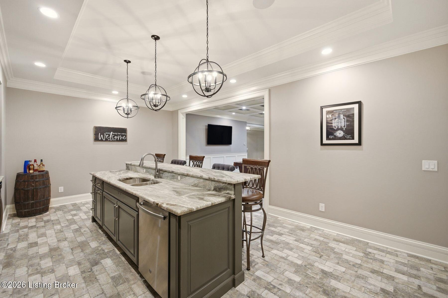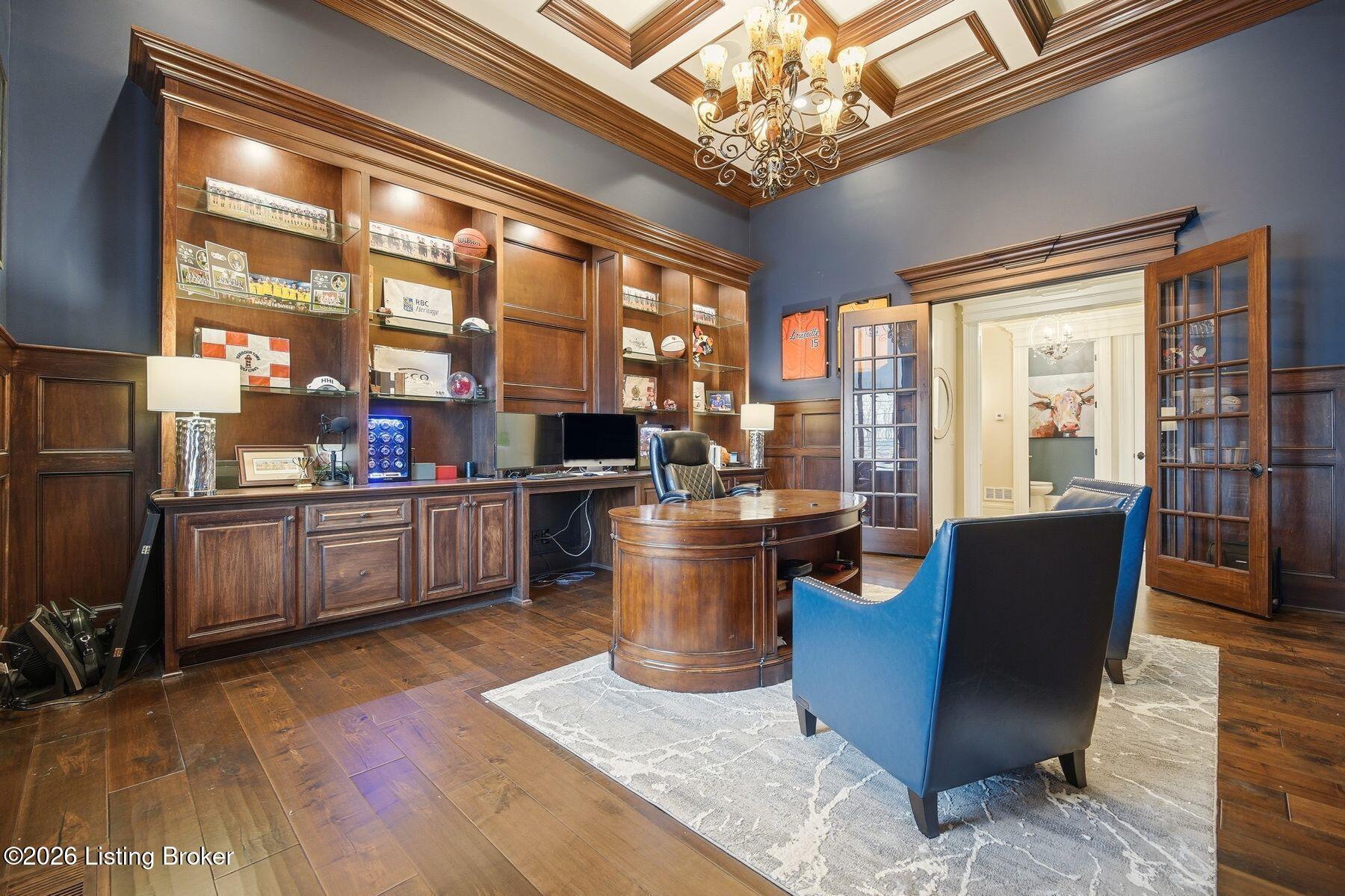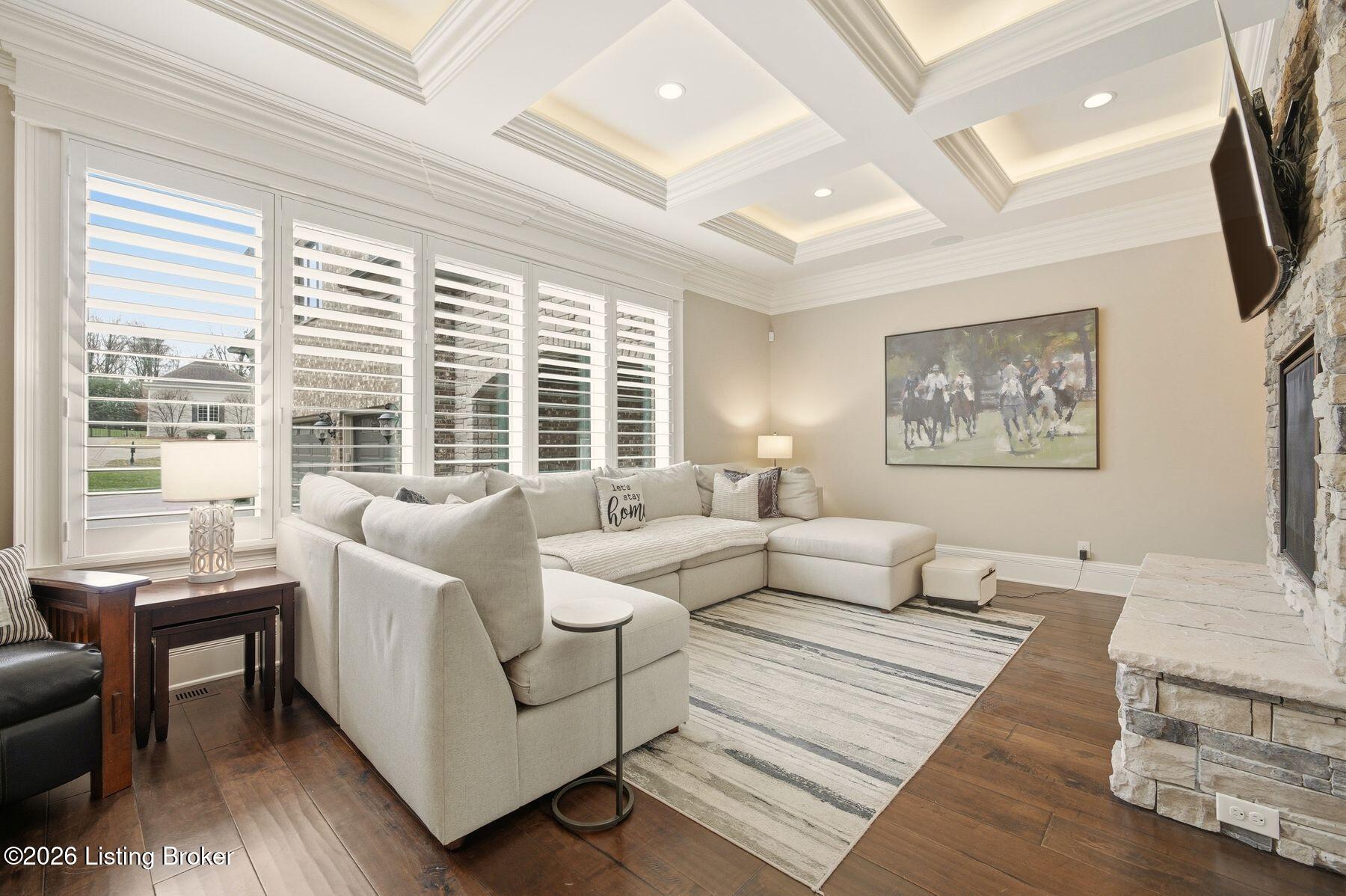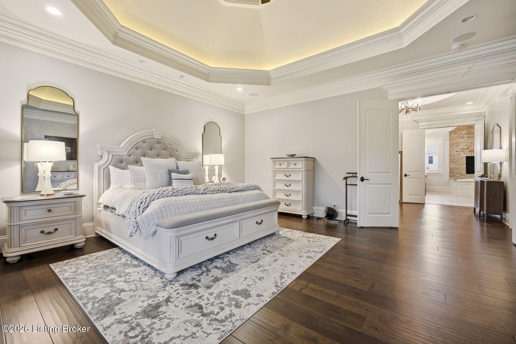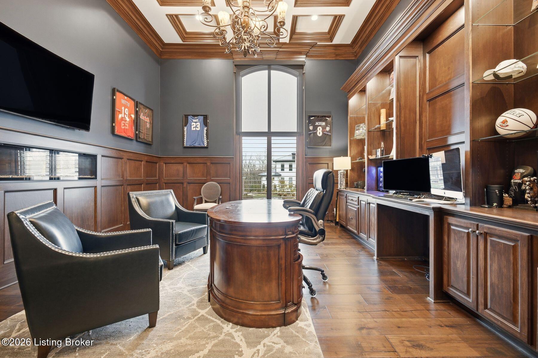 Tucked within one of Louisville's most coveted enclaves, this extraordinary custom estate redefines luxury at scale--offering more than 13,000 square feet of meticulously crafted living space. From the moment you approach along the circular drive, the property reveals its stature. A grand foyer unfolds with sightlines that capture the home's remarkable millwork, sweeping archways, and intricate ceiling treatments. Every detail has been curated to impress--from artisan inlays to master-crafted woodwork that elevates each space with a sense of bespoke artistry. At the heart of the home lies a culinary haven designed for both function and unforgettable gatherings. With double-layered granite surfaces, custom off-white cabinetry, a warm hearth-side ambiance, and professional-grade appliances this kitchen is truly in a league of its own. The flowing layout connects seamlessly to a vaulted hearth room with a floor-to-ceiling creek-stone fireplace and an additional family room framed by coffered ceilings perfect for effortless entertaining. The primary suite is an ode to luxury living. Romantic arched ceilings, a fireplace-lit soaking tub, a spa-inspired steam shower, and dual boutique-style closets create a private world of indulgence. The bedroom itself features elegant tray ceilings with ambient shadow-box lighting, a fireside sitting area, and direct access to the resort-style pool terrace blurring the line between indoor comfort and outdoor serenity. A graceful staircase leads to three spacious bedroom suites, an airy loft, and a cozy sitting area. Ample unfinished space provides flexibility for storage or future customization. Created for hosting and leisure, the lower level is nothing short of spectacular. A state-of-the-art theater, expansive entertainment bar, and an immersive golf simulator room make it the ultimate retreat. A dedicated fitness room and two additional bedrooms with daylight windows add comfort and convenience for guests. The outdoor living experience rivals luxury vacation destinations. The gunite saltwater pool with waterfall, hot tub, and surrounding lounging terraces sets the tone. Beyond the pool, manicured putting greens and a full-scale, multi-sport court with three basketball goals offer tennis, volleyball, pickleball, and basketball perfect for both family fun and serious athletes. An outdoor pavilion featuring a fireplace, grill, and refrigerator connects directly to the kitchen, creating an effortless indoor-outdoor flow ideal for hosting at any scale. More than a magnificent residence, this estate delivers a lifestyle one that balances privacy, comfort, grandeur, and recreation. It is a rare opportunity to live within a personal resort crafted for unforgettable moments and everyday ease.