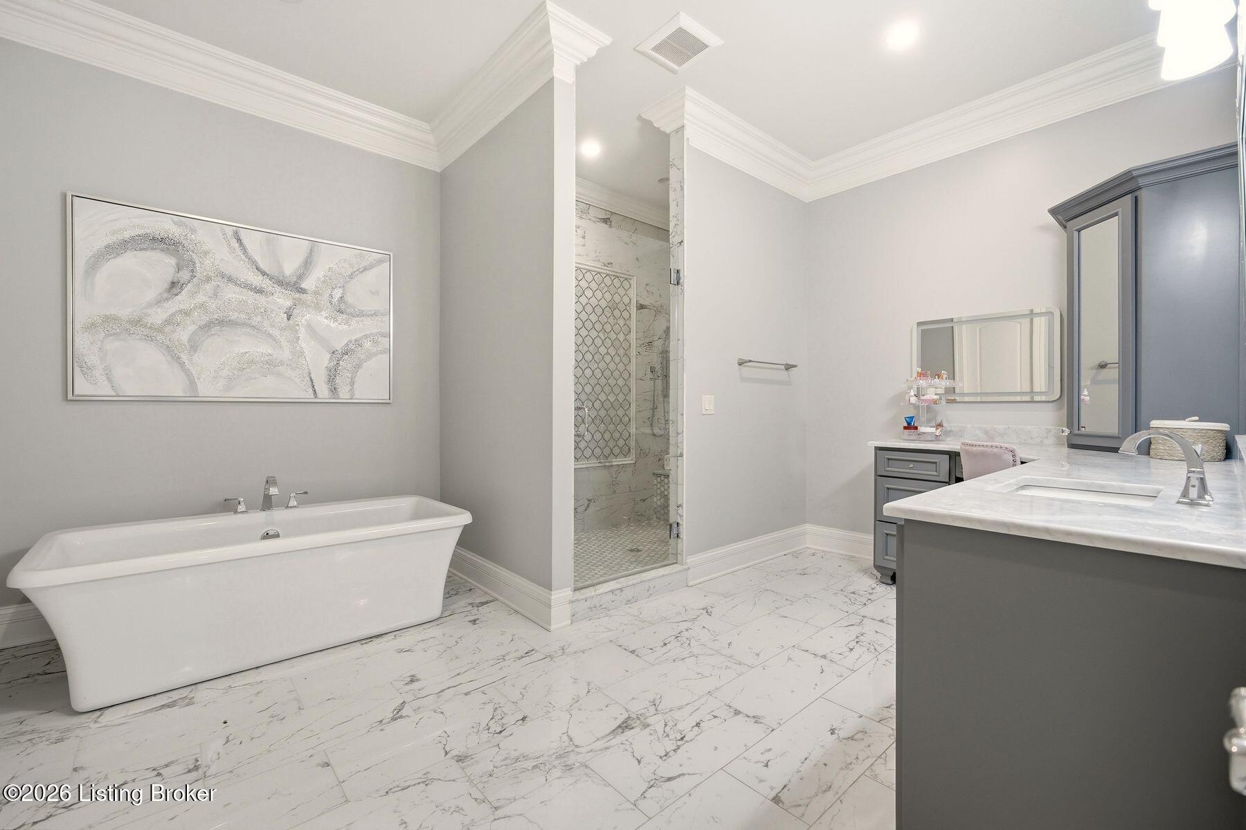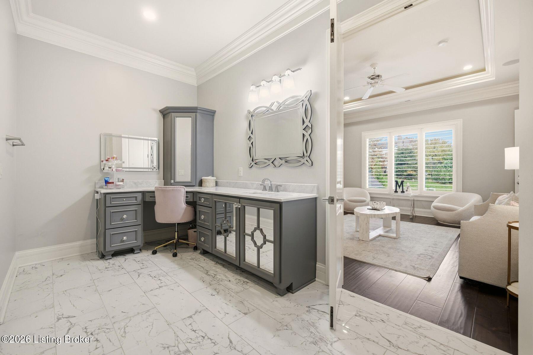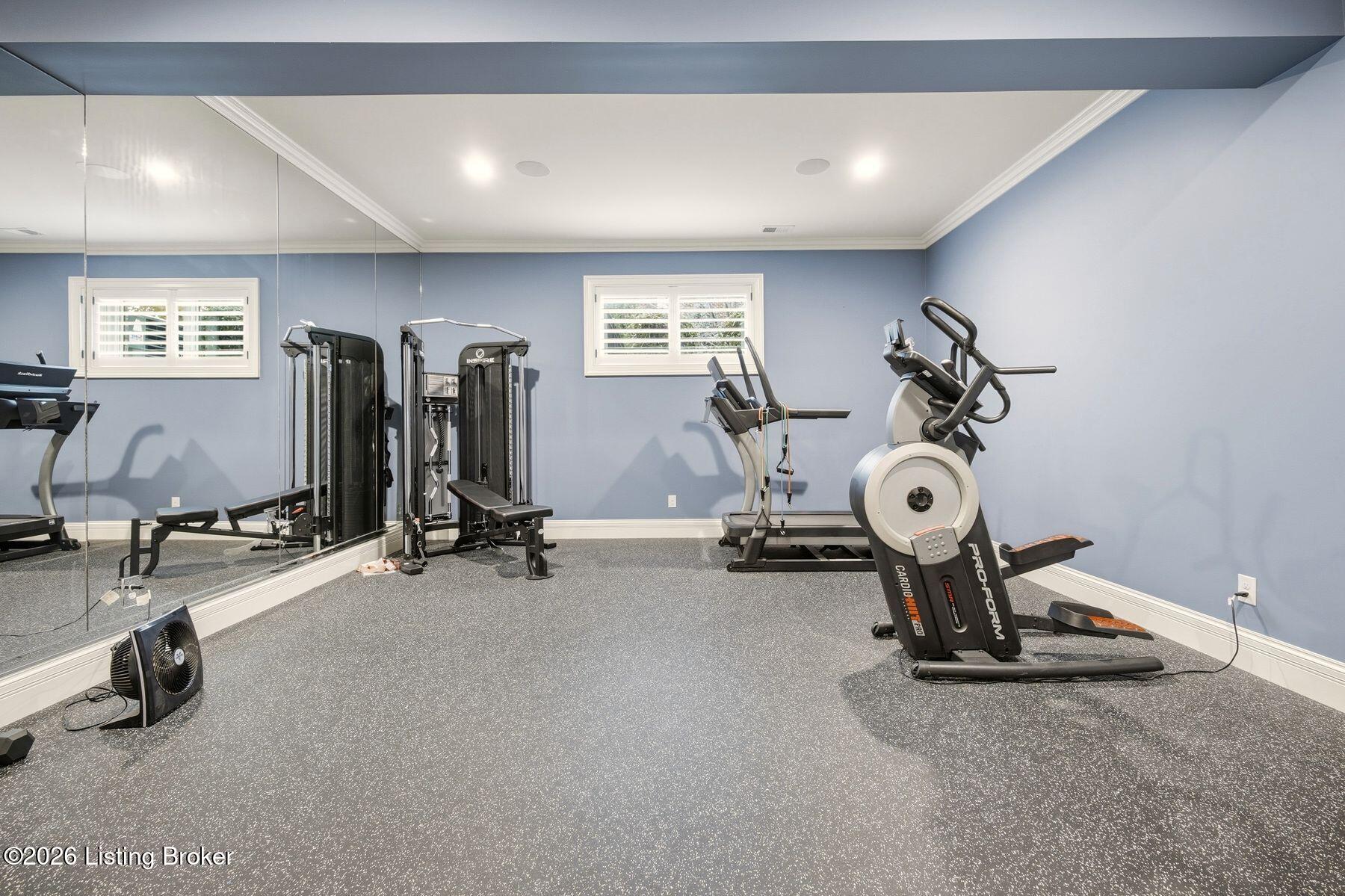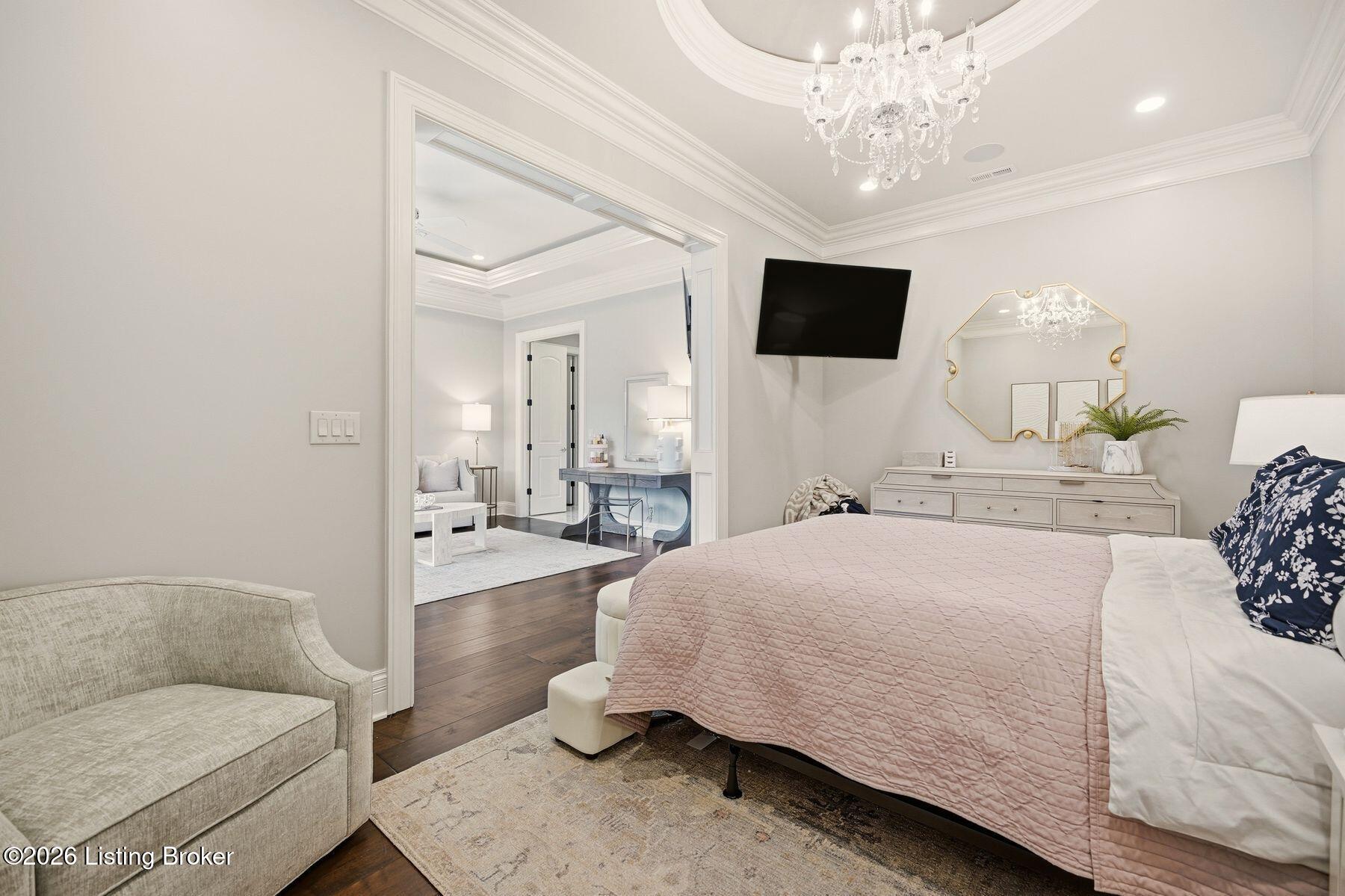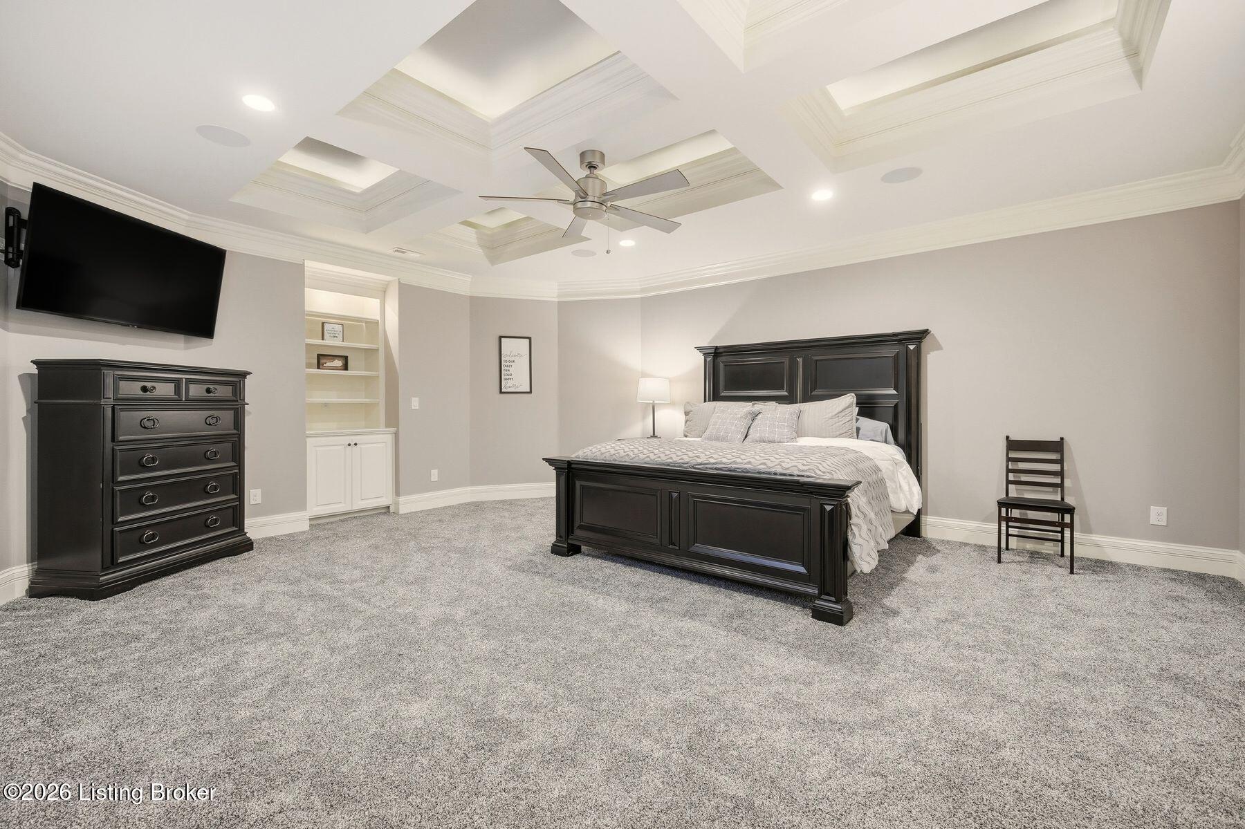 Tucked within one of Louisville's most coveted enclaves, this extraordinary custom estate redefines luxury at scale--offering more than 13,000 square feet of meticulously crafted living space. From the moment you approach along the circular drive, the property reveals its stature. A grand foyer unfolds with sightlines that capture the home's remarkable millwork, sweeping archways, and intricate ceiling treatments. Every detail has been curated to impress--from artisan inlays to master-crafted woodwork that elevates each space with a sense of bespoke artistry. At the heart of the home lies a culinary haven designed for both function and unforgettable gatherings. With double-layered granite surfaces, custom off-white cabinetry, a warm hearth-side ambiance, and professional-grade appliances this kitchen is truly in a league of its own. The flowing layout connects seamlessly to a vaulted hearth room with a floor-to-ceiling creek-stone fireplace and an additional family room framed by coffered ceilings perfect for effortless entertaining. The primary suite is an ode to luxury living. Romantic arched ceilings, a fireplace-lit soaking tub, a spa-inspired steam shower, and dual boutique-style closets create a private world of indulgence. The bedroom itself features elegant tray ceilings with ambient shadow-box lighting, a fireside sitting area, and direct access to the resort-style pool terrace blurring the line between indoor comfort and outdoor serenity. A graceful staircase leads to three spacious bedroom suites, an airy loft, and a cozy sitting area. Ample unfinished space provides flexibility for storage or future customization. Created for hosting and leisure, the lower level is nothing short of spectacular. A state-of-the-art theater, expansive entertainment bar, and an immersive golf simulator room make it the ultimate retreat. A dedicated fitness room and two additional bedrooms with daylight windows add comfort and convenience for guests. The outdoor living experience rivals luxury vacation destinations. The gunite saltwater pool with waterfall, hot tub, and surrounding lounging terraces sets the tone. Beyond the pool, manicured putting greens and a full-scale, multi-sport court with three basketball goals offer tennis, volleyball, pickleball, and basketball perfect for both family fun and serious athletes. An outdoor pavilion featuring a fireplace, grill, and refrigerator connects directly to the kitchen, creating an effortless indoor-outdoor flow ideal for hosting at any scale. More than a magnificent residence, this estate delivers a lifestyle one that balances privacy, comfort, grandeur, and recreation. It is a rare opportunity to live within a personal resort crafted for unforgettable moments and everyday ease.