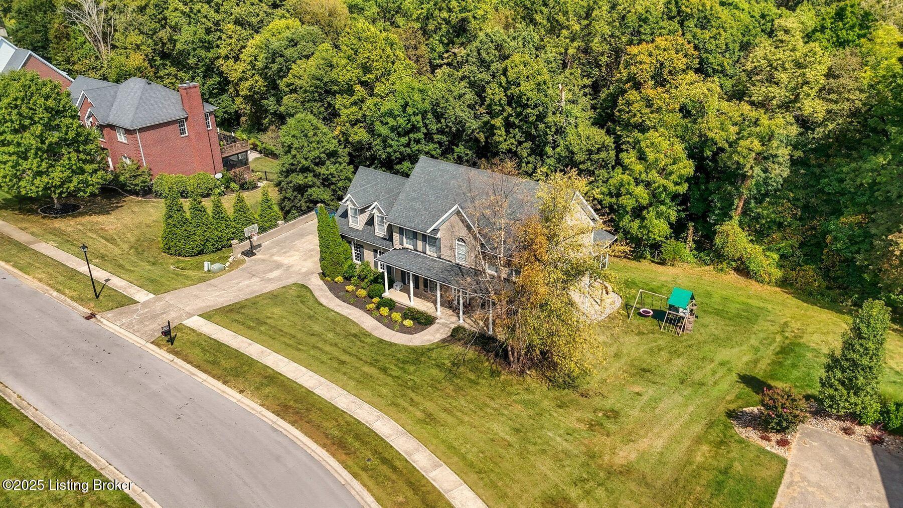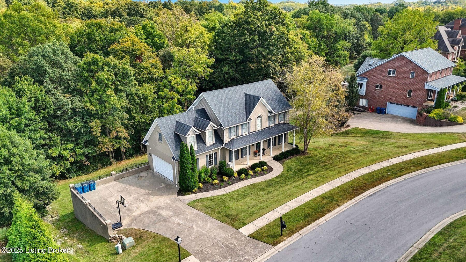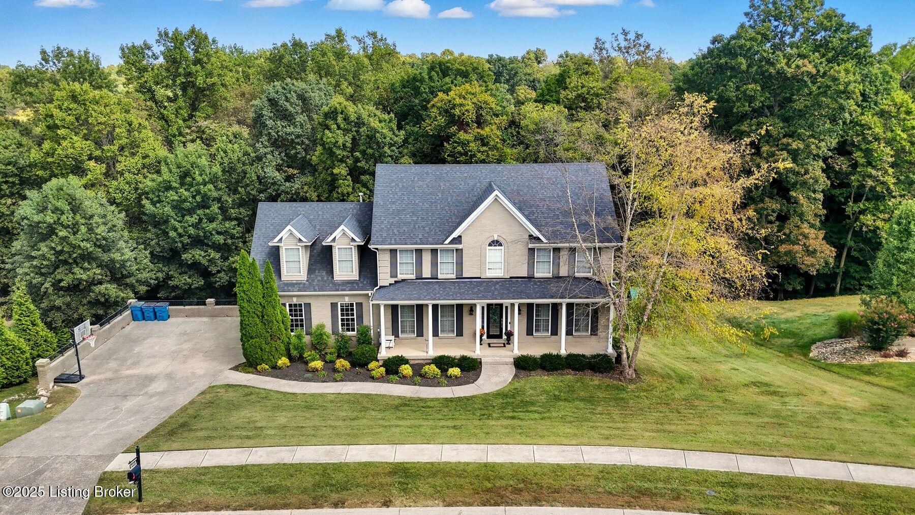 Situated on a scenic 1.3-acre lot in the sought-after Oldham County section of Moser Farms, this five-bedroom residence offers over 3,400 square feet of thoughtfully finished living space. Built in 2004 and enhanced with modern updates, the home blends timeless traditional design with today's conveniences. The main floor features formal living and dining rooms along with a spacious family room, complete with custom built-ins, just off the updated kitchen with refreshed cabinetry and countertops. From here, an elevated screened-in porch provides the perfect vantage point to enjoy the home's tranquil surroundings. Upstairs, four spacious bedrooms, including the primary suite, create a comfortable retreat for family and guests, while the finished walkout lower level adds versatility with a fifth bedroom, full bath, and access to the newly added patio and fire pit area. Offering a rare and desirable combination of space, condition, and location, this home stands out as an exceptional opportunity in today's marketideal for those seeking both lifestyle and value in one of Oldham County's most convenient neighborhoods.