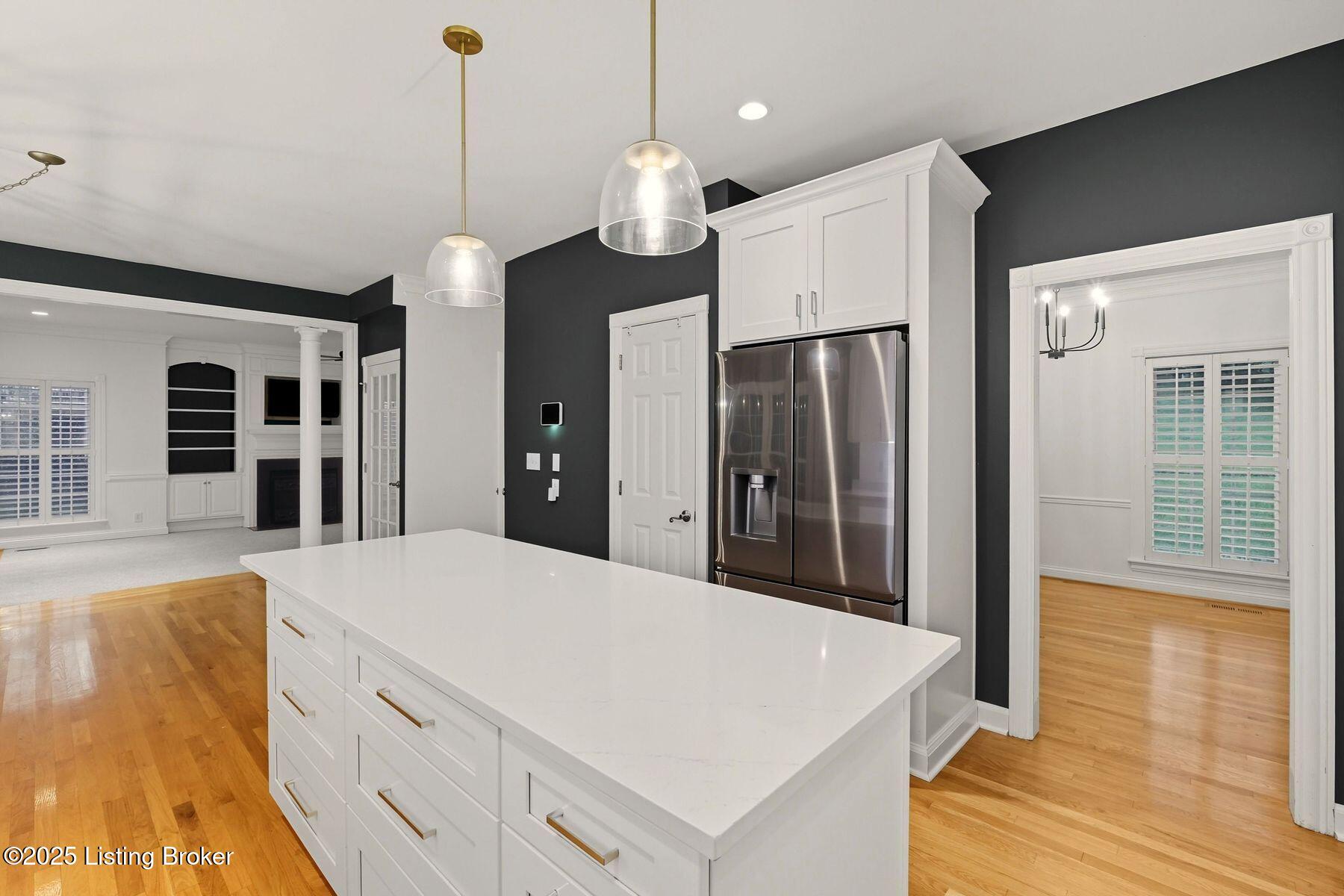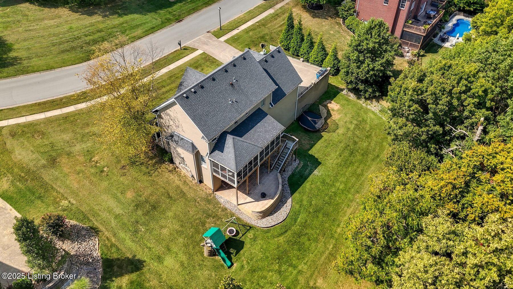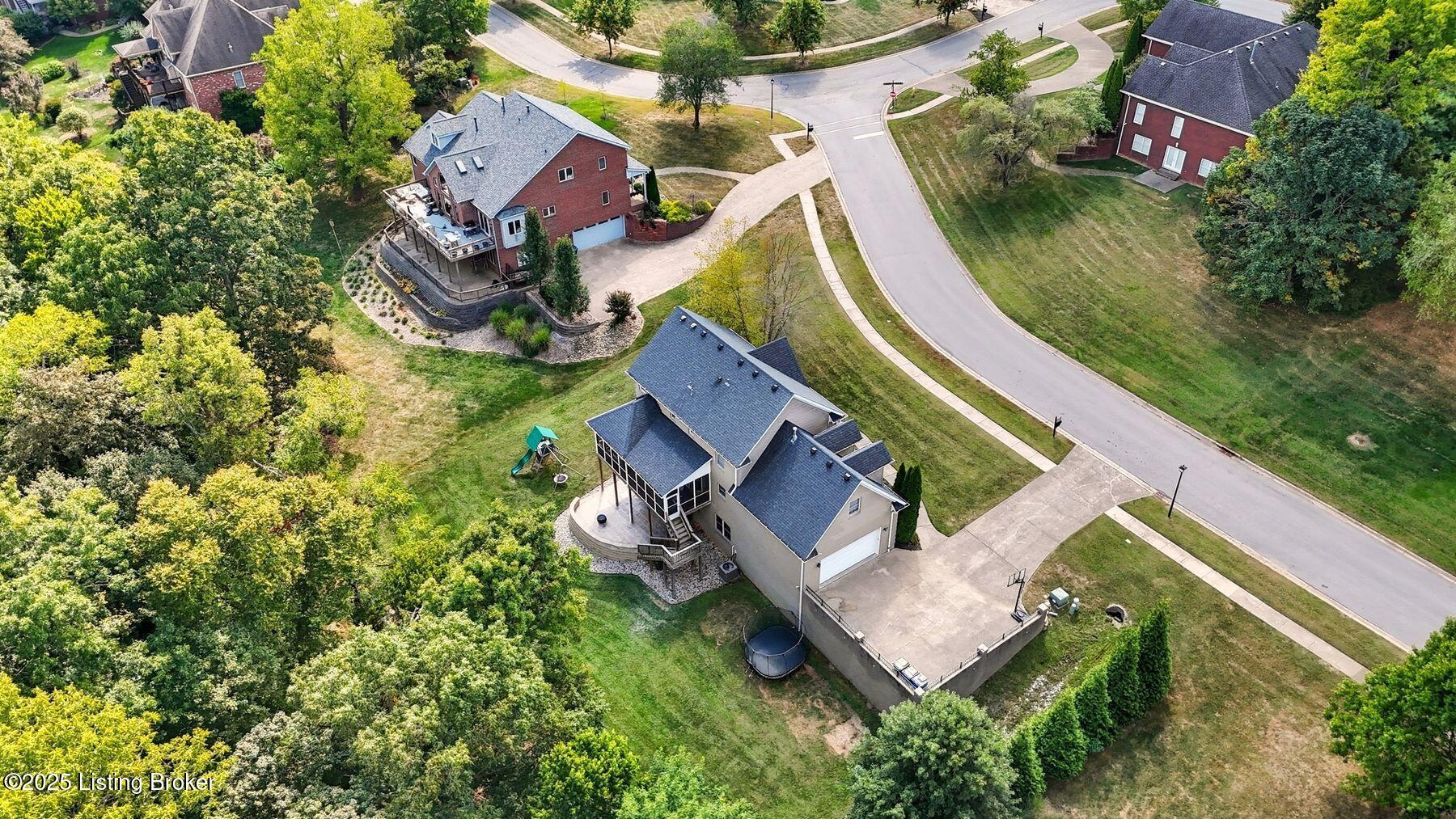 Situated on a scenic 1.3-acre lot in the sought-after Oldham County section of Moser Farms, this five-bedroom residence offers over 3,400 square feet of thoughtfully finished living space. Built in 2004 and enhanced with modern updates, the home blends timeless traditional design with today's conveniences. The main floor features formal living and dining rooms along with a spacious family room, complete with custom built-ins, just off the updated kitchen with refreshed cabinetry and countertops. From here, an elevated screened-in porch provides the perfect vantage point to enjoy the home's tranquil surroundings. Upstairs, four spacious bedrooms, including the primary suite, create a comfortable retreat for family and guests, while the finished walkout lower level adds versatility with a fifth bedroom, full bath, and access to the newly added patio and fire pit area. Offering a rare and desirable combination of space, condition, and location, this home stands out as an exceptional opportunity in today's marketideal for those seeking both lifestyle and value in one of Oldham County's most convenient neighborhoods.