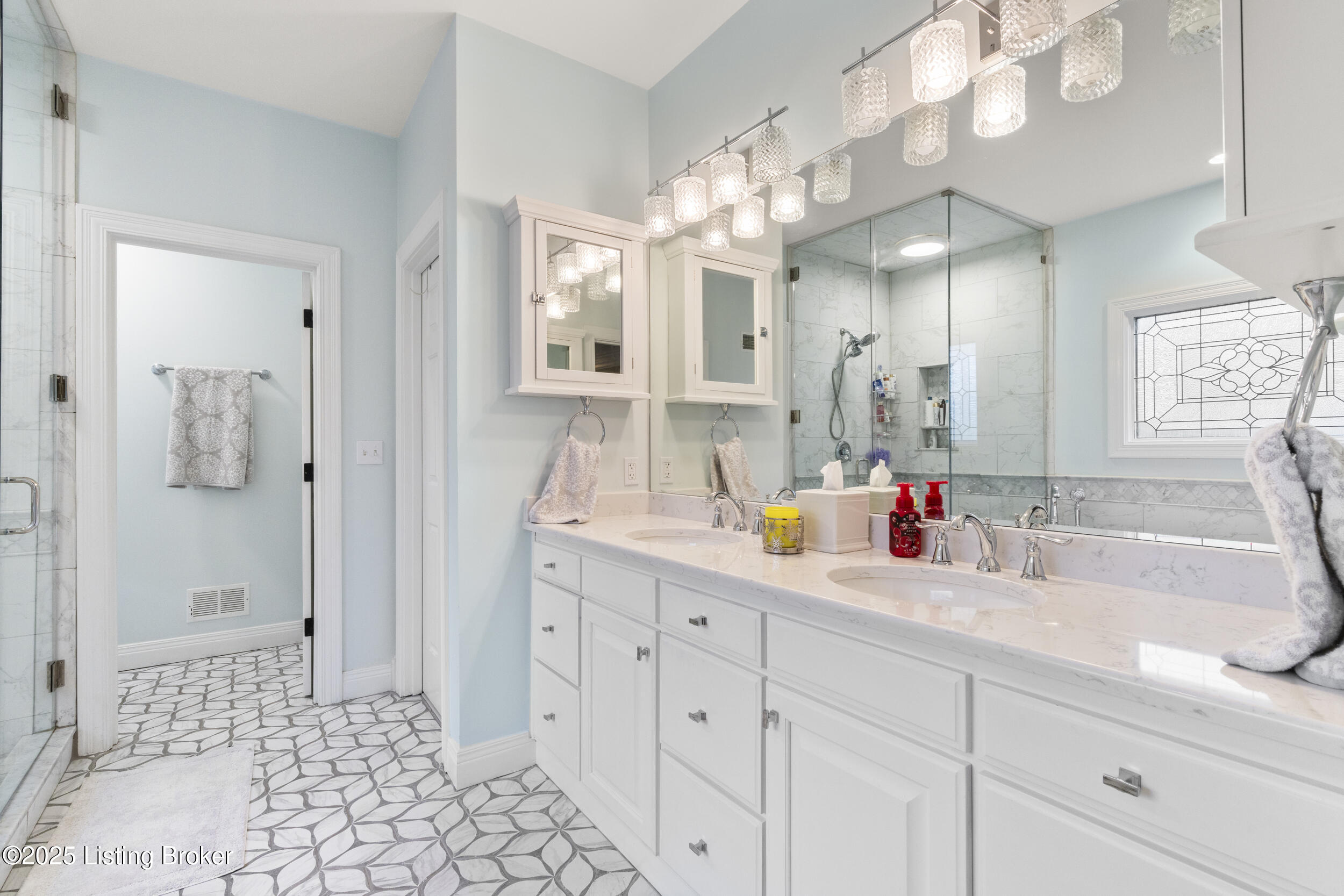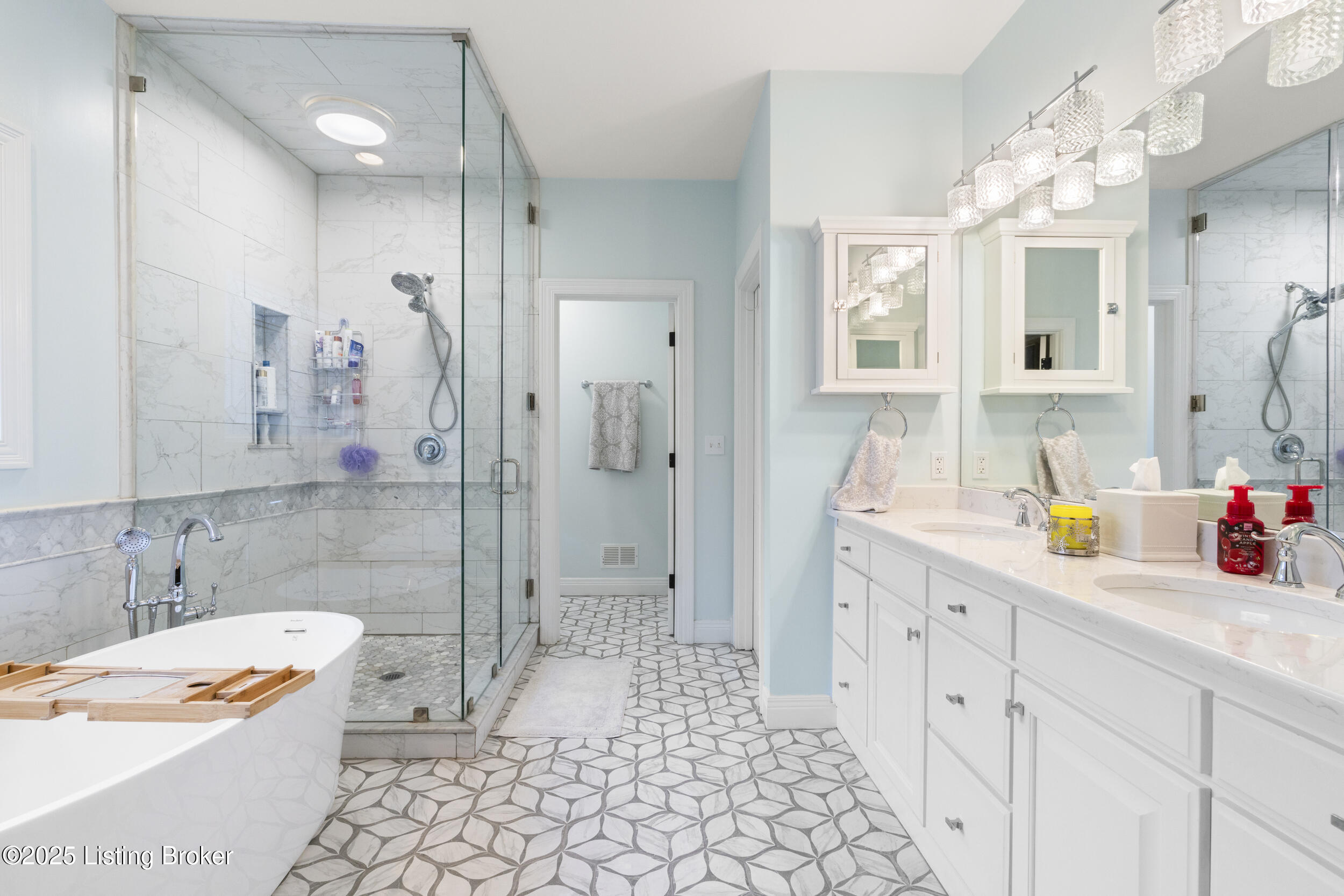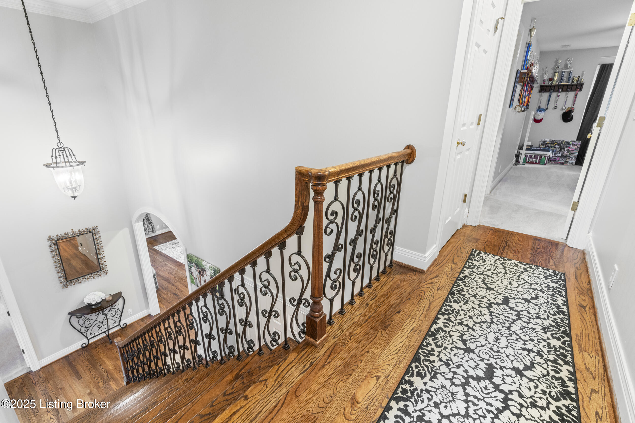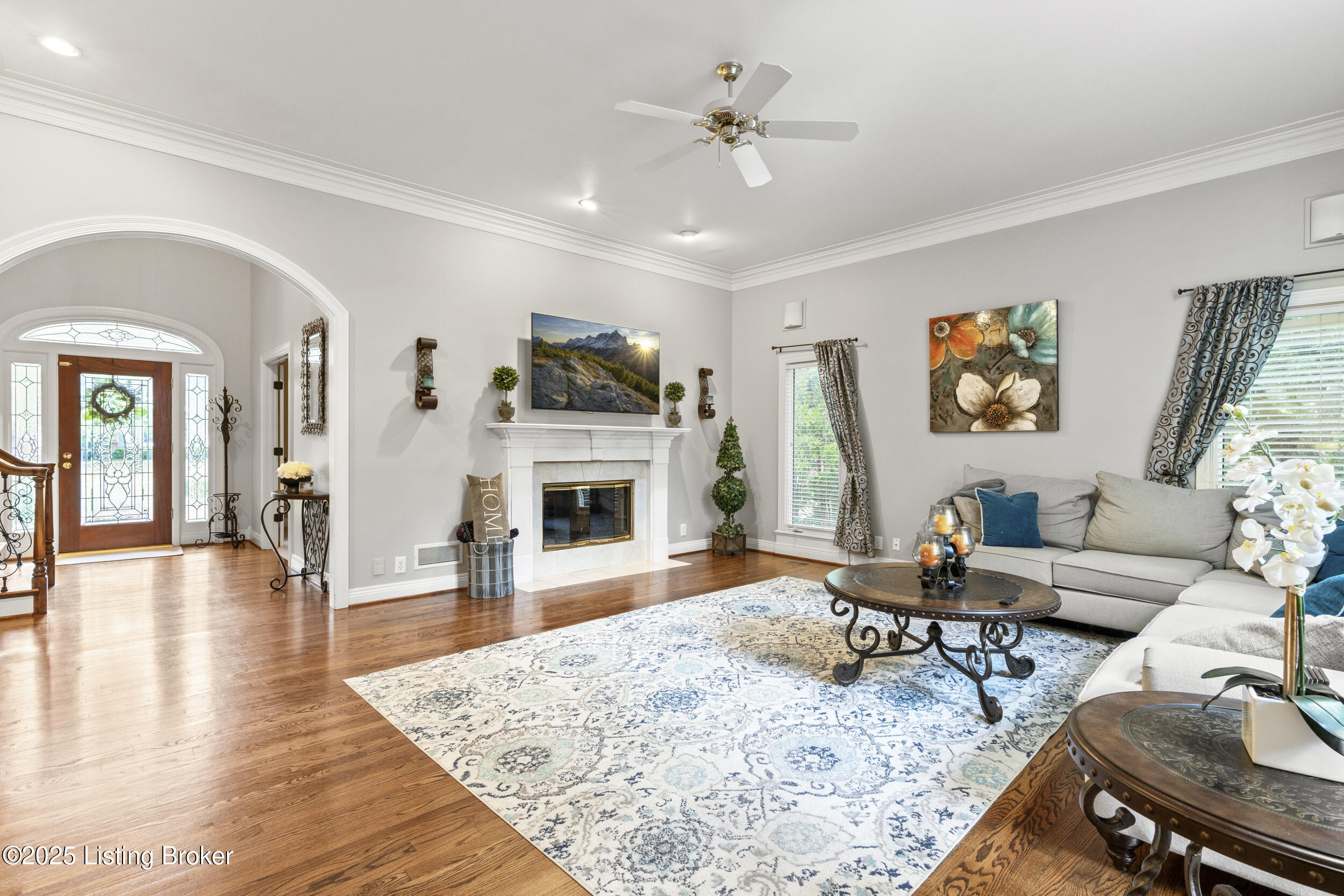 Stunning 5-bedroom, 4.5-bath home in the desirable Sutherland community with over 5,800 total finished sq. ft. The first floor features an updated primary suite bathroom, large kitchen, dining room, family room with 10' ceilings and built-ins, study/living room with see-through fireplace, and convenient laundry. Upstairs offers 3 spacious bedrooms (one with bonus room), Jack and Jill full bathroom, and an en suite full bathroom. The finished lower level provides nearly 2,000 sq. ft with recreation-billiards, theatre, exercise, and craft rooms, plus a wet bar and the fourth full bath. Additional highlights include hardwood floors, crown molding, irrigation, an electric fence system, EV-charger, and an oversized 3-car garage with extended-height doors (over 850 sq. ft). Key benefit's to living in Sutherland is access to the wonderful community amenities with a swimming pool, pickleball-tennis courts, playground and clubhouse. This is a wonderful opportunity in one of Louisville's premier neighborhoods, call to schedule your private tour!