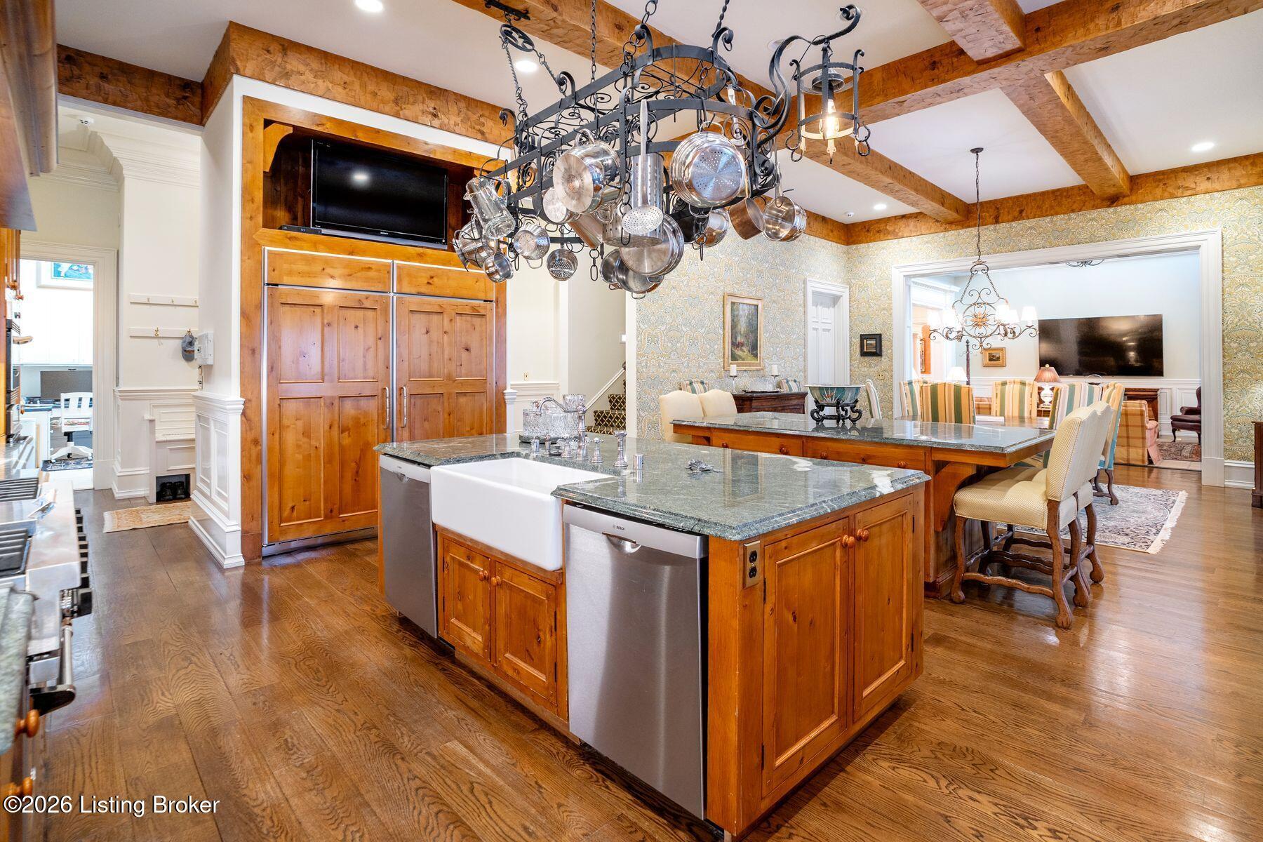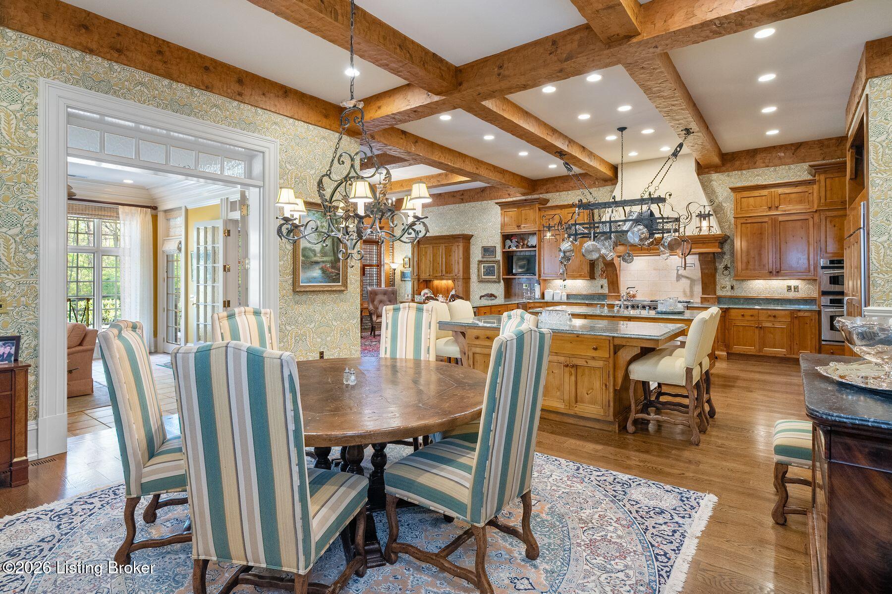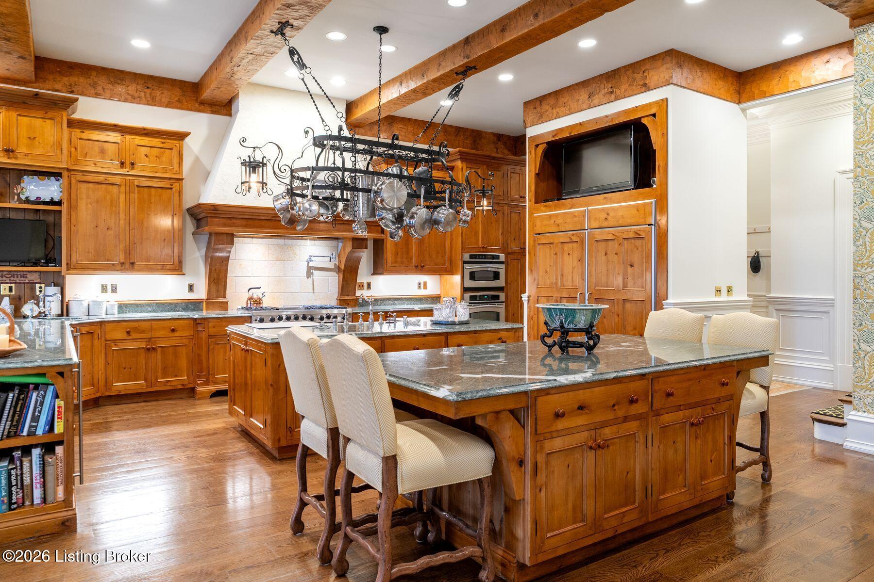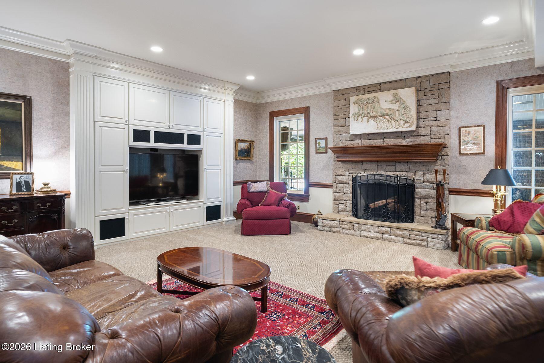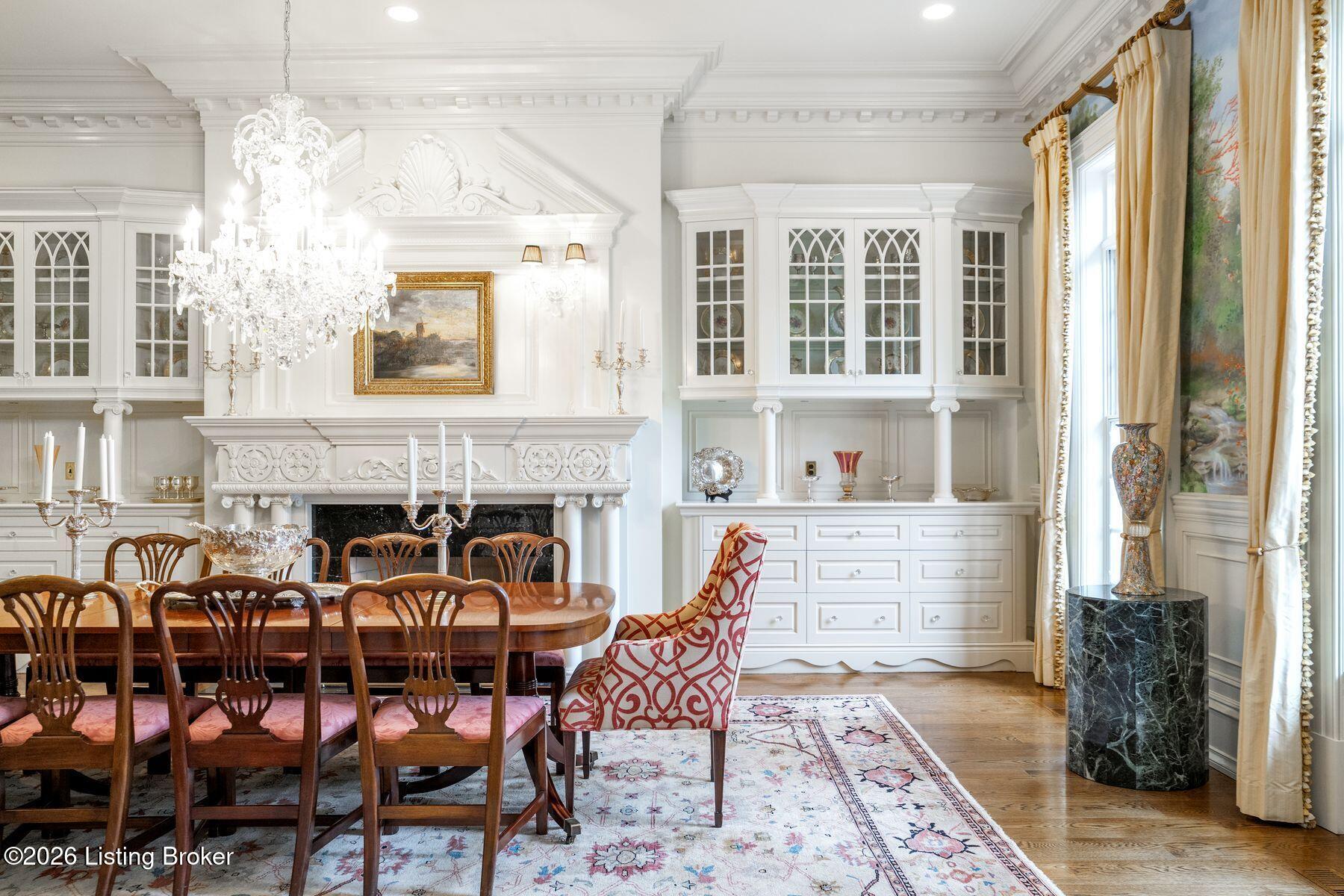 Designed for both elegant entertaining and everyday living, the formal dining room features exquisite custom woodwork and one of seven fireplaces throughout the home. The gourmet kitchen is a true showpiece for culinary enthusiasts, complete with premium appliances, abundant cabinetry, and a charming hearth room ideal for intimate gatherings.