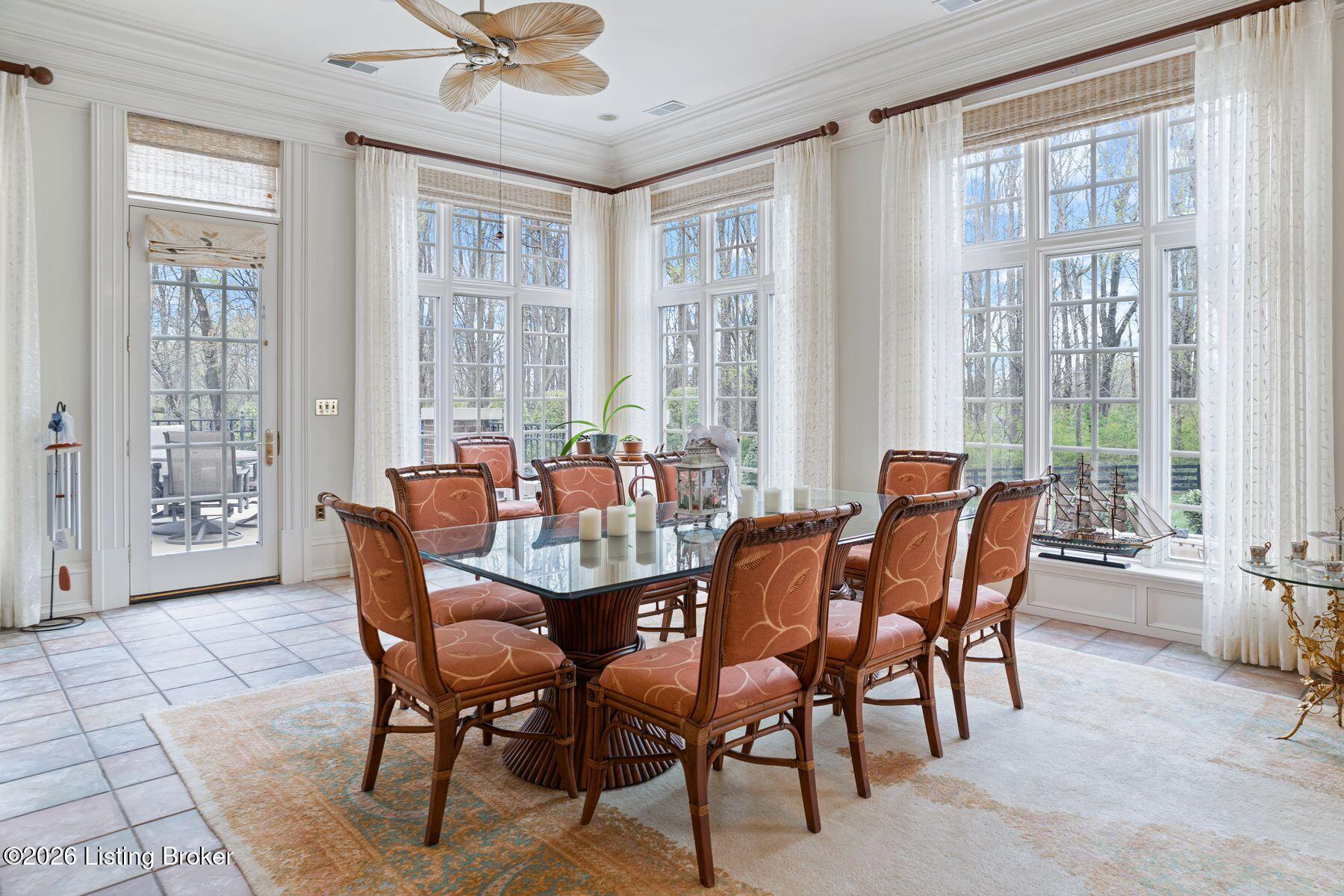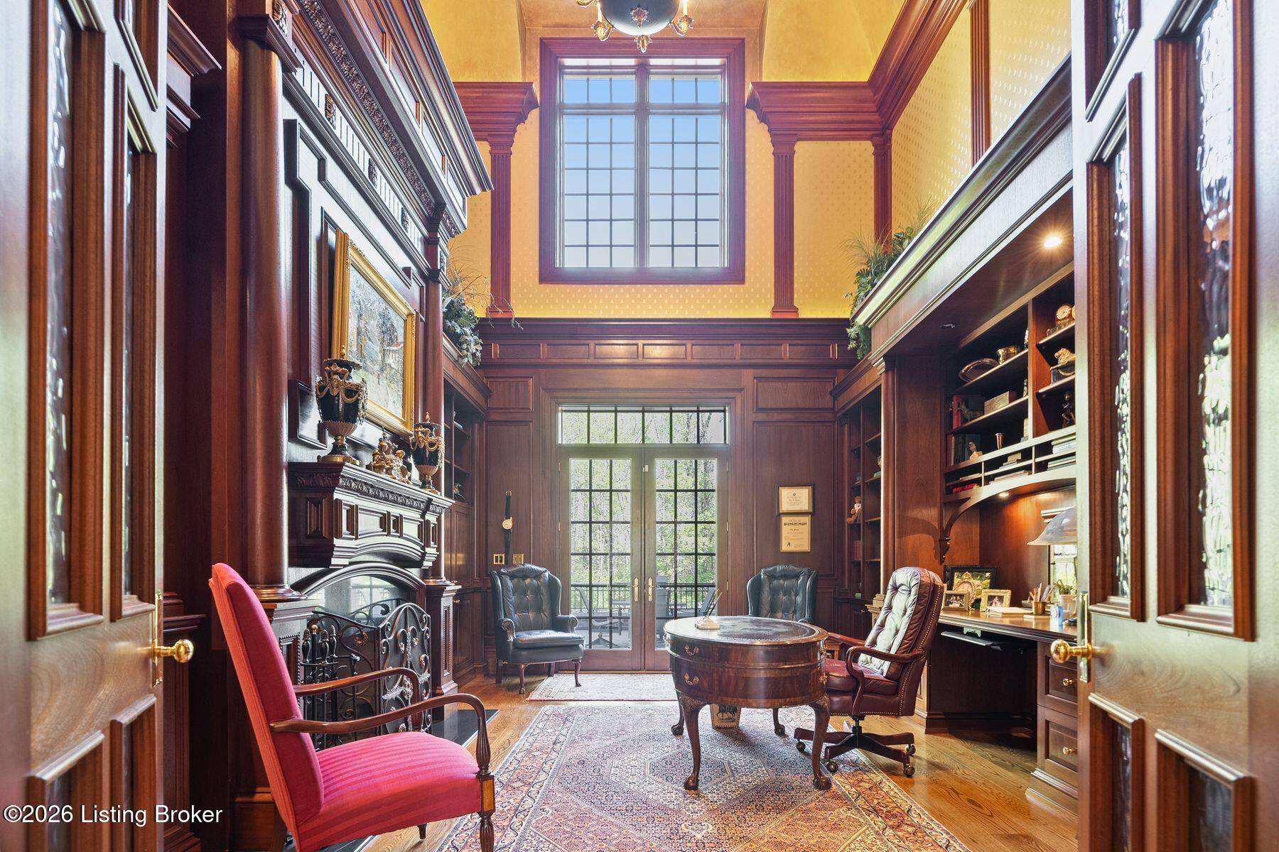 Relax in the sun-filled all season room offering tranquil views and direct access to a balcony overlooking the pool and outdoor entertaining areas. A large, richly paneled office provides an ideal setting for working or conducting business from home, while the expansive living room impresses with soaring ceilings and a welcoming fireplace.