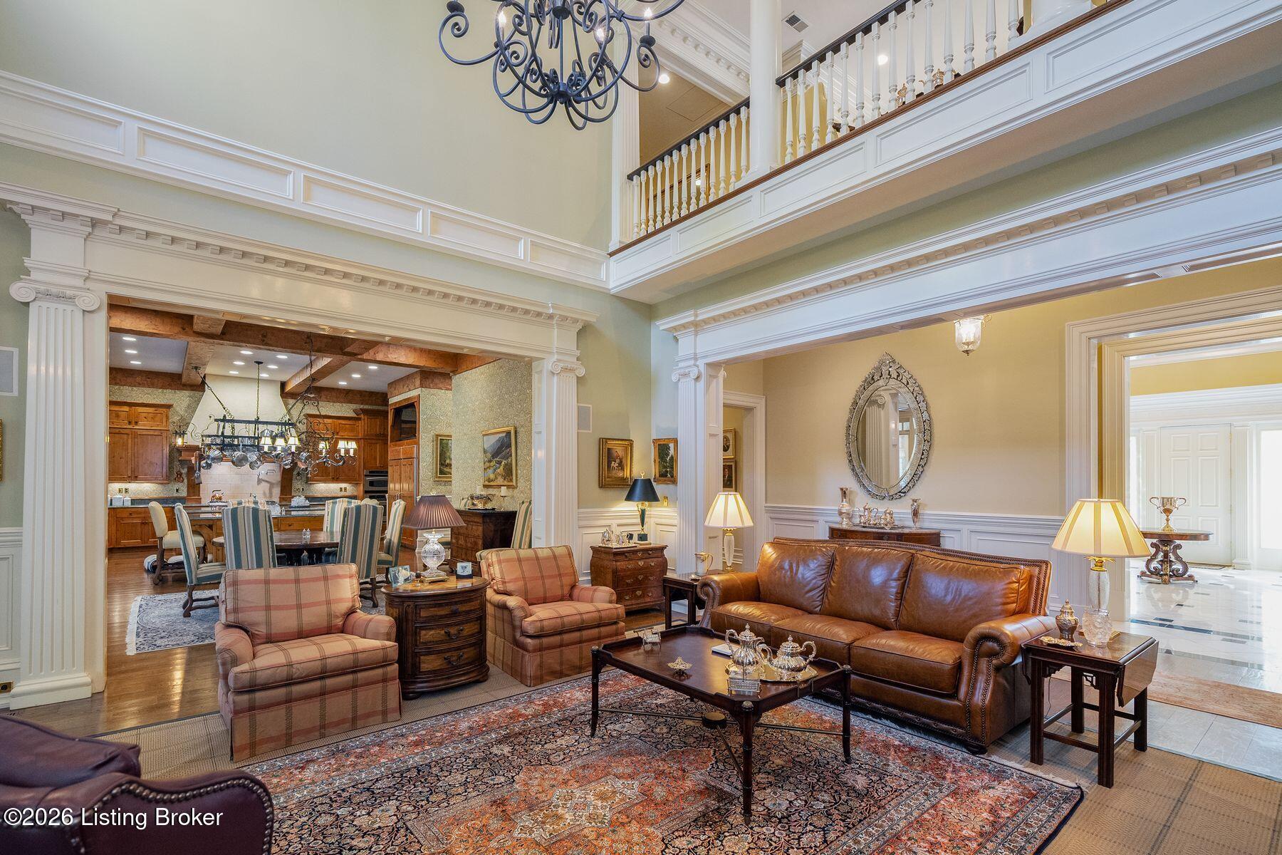 Welcome to this expansive traditional estate, a private sanctuary of luxury and refinement set on nearly three acres of meticulously landscaped grounds. A grand marble foyer with a sweeping curved staircase sets the tone for this remarkable residence.