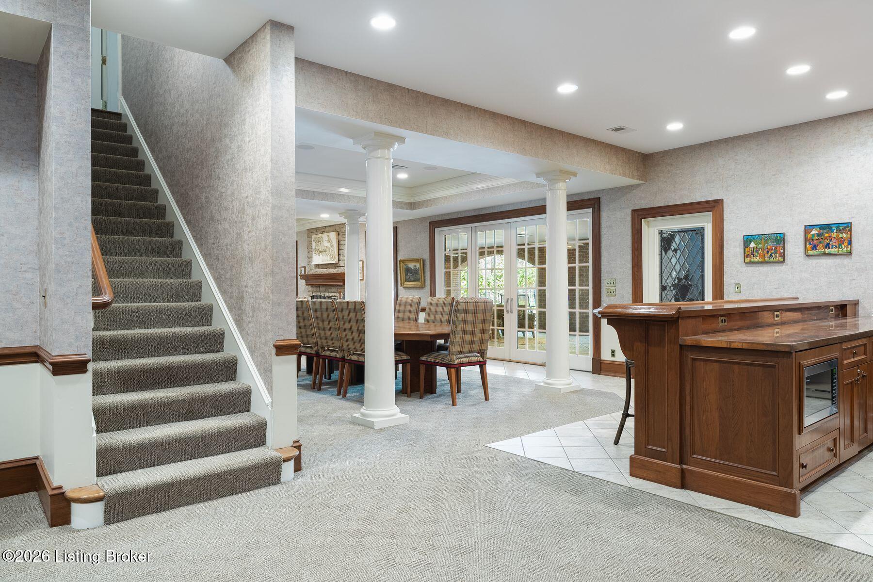 The lower level is an entertainer's dream, featuring a wine cellar, bar area, recreation spaces, and spa-like amenities including a sauna, workout room and private suite with connecting bathroom. Recent updates include a newly replaced roof with durable 50-year shingles, adding lasting value and peace of mind.
