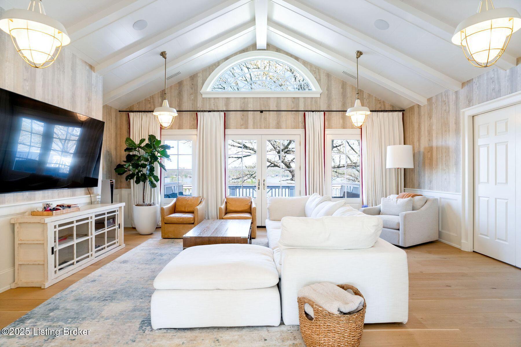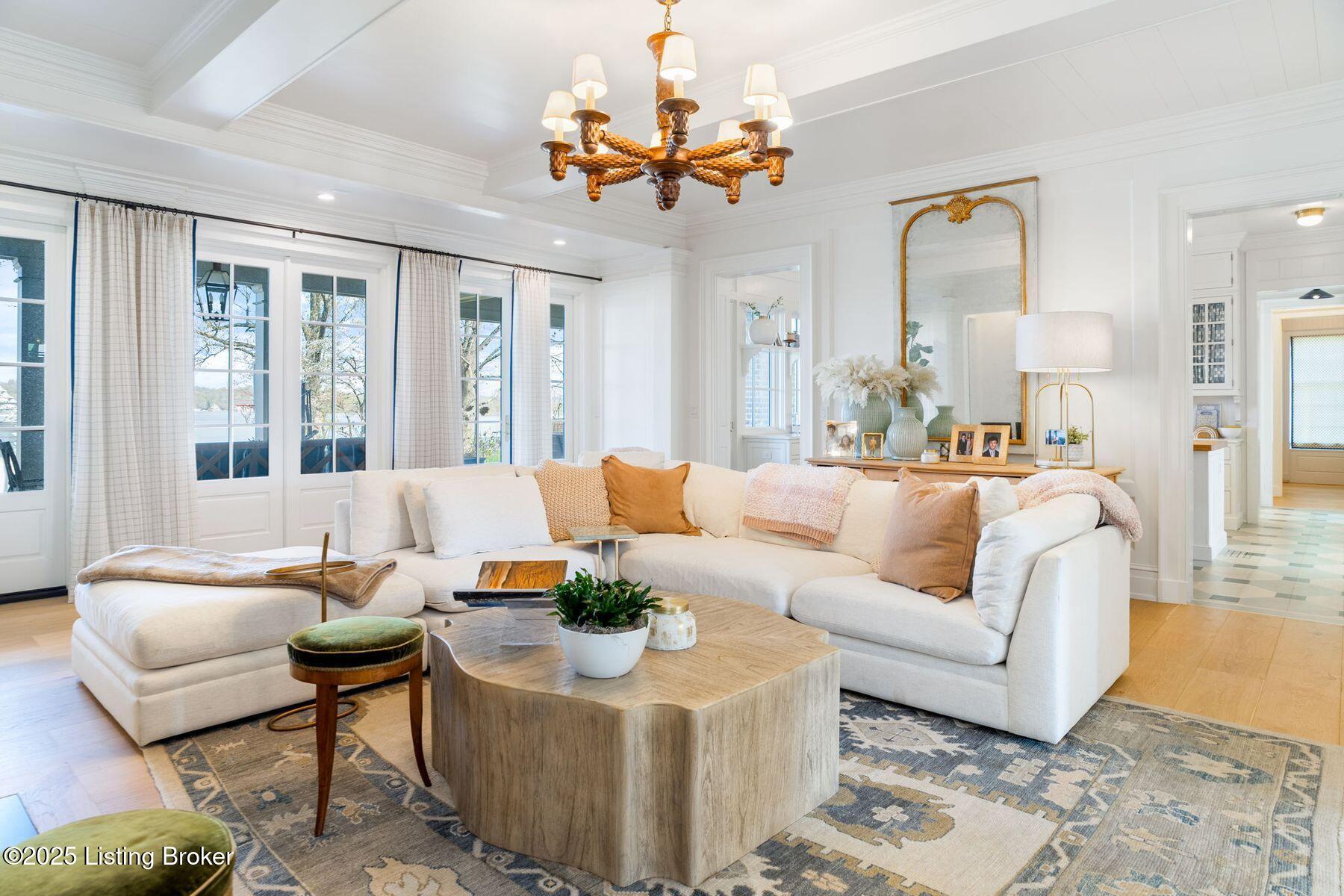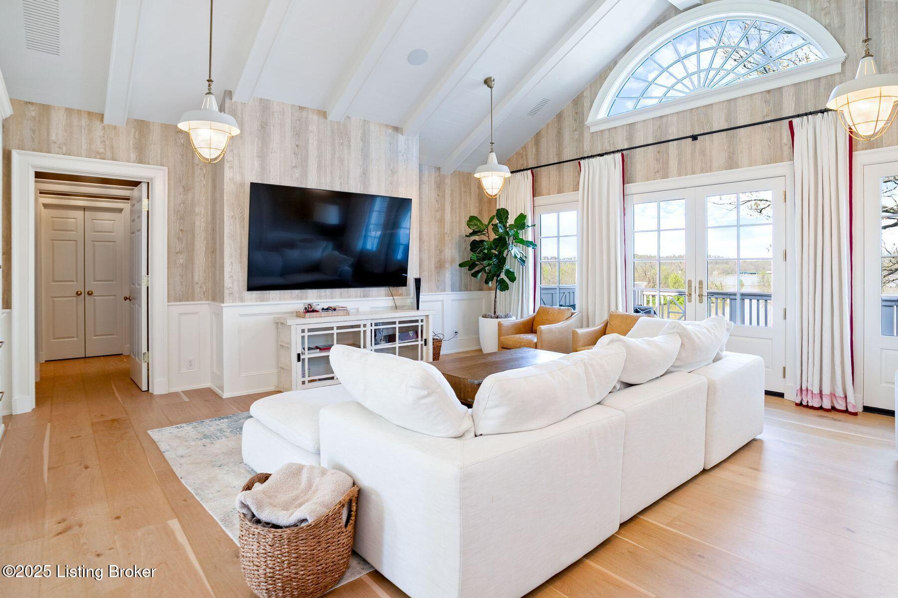 Nestled on the bluffs of the Ohio River, this inspiring waterfront retreat presents a once-in-a-lifetime opportunity to own a nationally recognized masterpiece: the 2021 Southern Living Idea House. A culmination of the industry's most luxurious designs and inspirations, this home truly celebrates the best of the Bluegrass; after welcoming over 12,000 guests from across the country to tour and covet as Southern Living's premier home, this breathtaking estate is ready for the next owner to make their own. The unprecedented Idea House is anchored in timeless architecture and design, tucked beneath cedar shake roof and dressed in Jeffersonian hues. With an easy elegance, each room has been custom designed for a one-of-a-kind experience, from hand painted hardwood floors to secret doors to impressive trim & molding- no detail has been overlooked. The dreamy home centers on showcasing the sweeping views of the Ohio River, with expansive windows and towering French doors running the rear of the home. Ready to accommodate a variety of needs, the main level offers a quiet library, private in-law suite, playful studio perfect for rainy days, and corner primary suite with lavish primary bathroom, with more to discover each day. A large great room with bright beams and fireplace opens to the show-stopping covered porch with living area, dining area, and fireplace. The eat-in kitchen features stylish breakfast bar, stainless-steel Monogram appliances, concealed refrigerators, and windowed prep space, alongside a rear kitchen and scullery connecting to the elegant formal dining room. Two powder rooms, laundry room, and attached 3-car garage complete the first floor. The second floor offers a vaulted family room with spacious deck overlooking the sweeping backyard and Ohio River beyond, three gracious bedroom suites with en-suite baths, and a convenient play/study area with built-in desks and cozy window seat. Accessible by hidden panel door, the lower level offers 2,000 sq.ft of additional custom living space, including oversize family room, billiards room, media room, and sixth bedroom with en-suite bath. The outdoor entertaining area offers an unforgettable experience unlike any other, from the brick and pea-gravel patio with outdoor kitchen and dining area to the bourbon pavilion with cozy fire pit and first-class views of the Ohio River. An exclusive opportunity to own a nationally acclaimed sensation, this home is not to be missed.