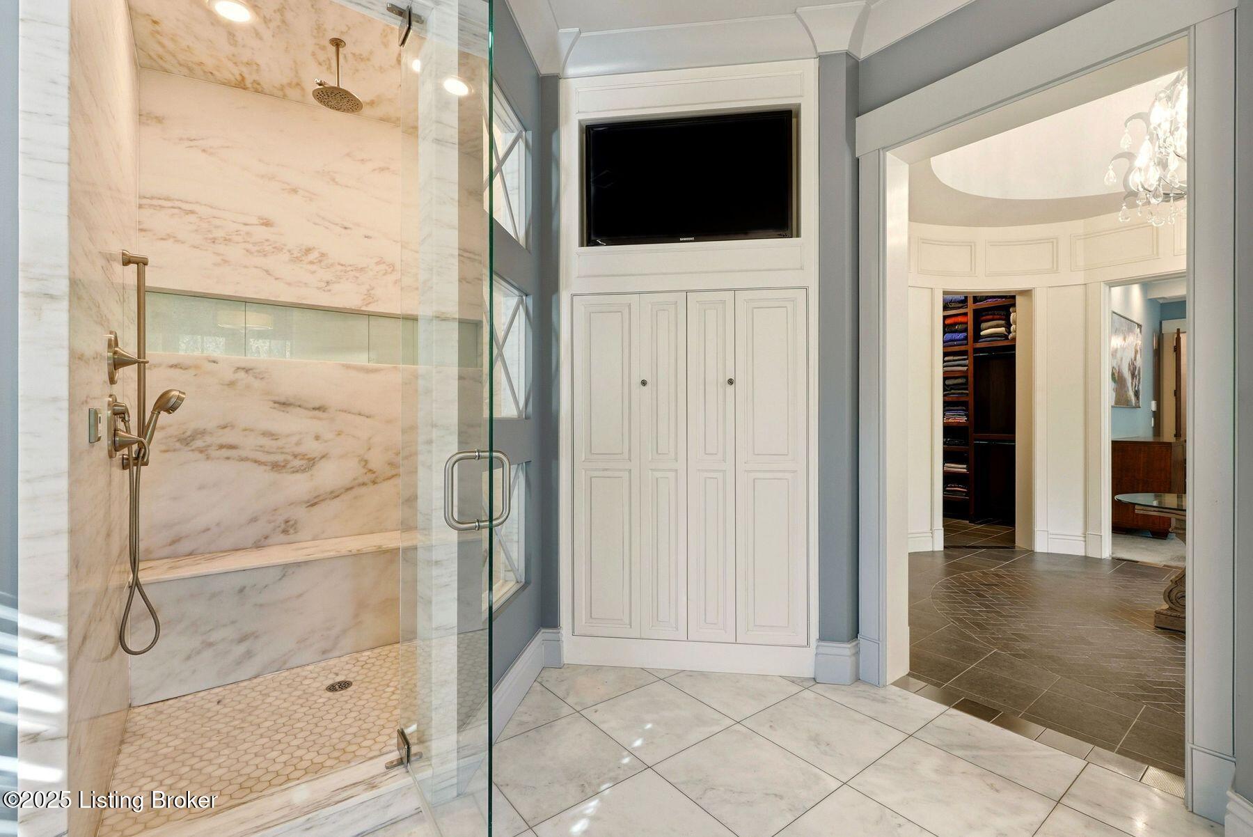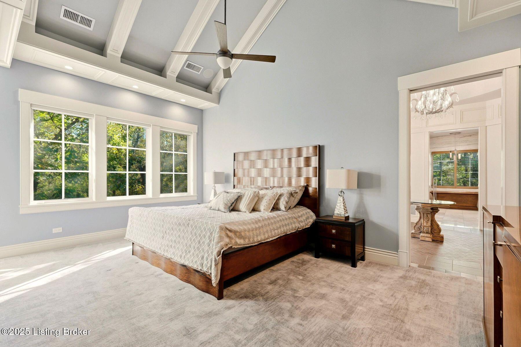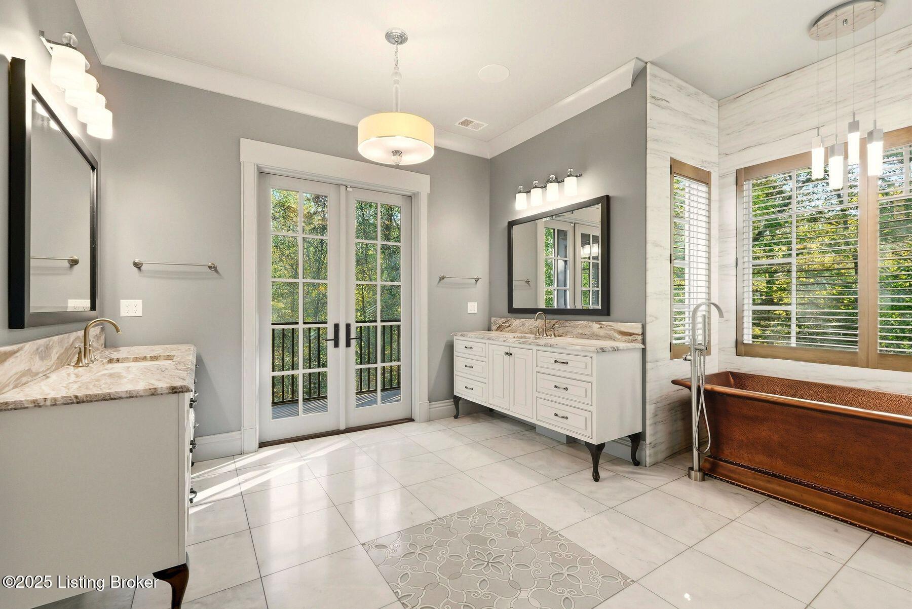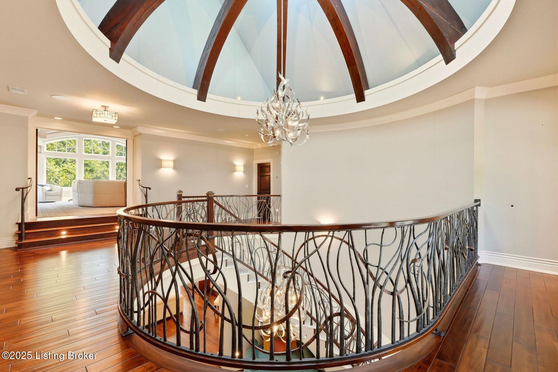 Nestled quietly within a canopy of trees, this natural timber home unfolds like a private sanctuary--part mountain retreat, part modern statement. The architecture feels rooted and intentional, blending organic materials with sleek lines and expansive glass that welcomes the outdoors in. Every space has been composed with balance and beauty in mind, creating a home that is as soulful as it is sophisticated. The entry hall sets the stage--dark wood floors, custom ironwork, and a graceful staircase that rises like sculpture. In the living room, floor-to-ceiling windows capture the forest beyond, while a coffered ceiling and stone fireplace add texture and warmth. Light spills across every surface, shifting gently throughout the day, creating an atmosphere that feels both expansive and intimately connected to nature. The kitchen is an exhibition of form and function: rich cabinetry, professional-grade appliances, and generous bar seating that encourages lingering conversation. Adjacent gathering spacesan inviting dining room and sitting areaoffer effortless flow, perfect for entertaining or quiet evenings spent among friends. A covered balcony hovers above the landscape, framing tree-top views and summer breezes. The primary suite occupies its own winga true retreat designed for rest and reflection. Vaulted ceilings and a fireplace set a tranquil tone, while a private office, dual walk-in closets, and a spa-inspired bath with marble surfaces, a copper soaking tub, and heated floors elevate every daily ritual. French doors open to the sounds of nature, blurring the line between indoors and out. Upstairs, a lofted family room and three bedroom suites continue the home's graceful design languageairy, bright, and welcoming. Below, a media and game room with a full bar invites easy entertaining, connecting to an expansive four-car garage that reflects the same attention to detail found throughout. Outdoors, the property reveals its most captivating moments. Five acres weave together manicured gardens and untamed woods, anchored by an infinity-edge pool that spills into a cascading waterfall. The pool housecomplete with kitchen and full bathroomoffers a quiet hideaway, equally suited for lively gatherings or peaceful solitude. A detached two-car garage with loft storage completes the setting, adding function to artistry. This is a home where architecture, nature, and craftsmanship exist in harmonya retreat designed not simply to be lived in, but to be felt.